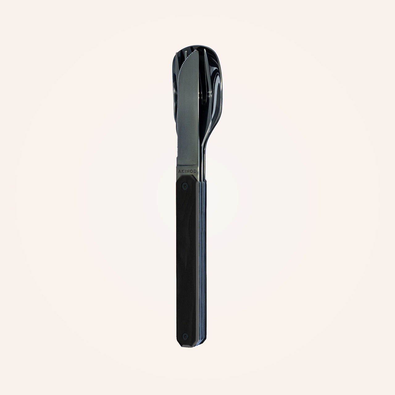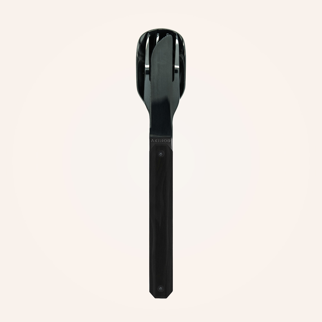 Akinod non ha sbagliato a scegliere questo tipo di legno sobrio e solido per i manici delle sue posate, i cui neri profondi saranno apprezzati tanto quanto le sue qualità naturali.