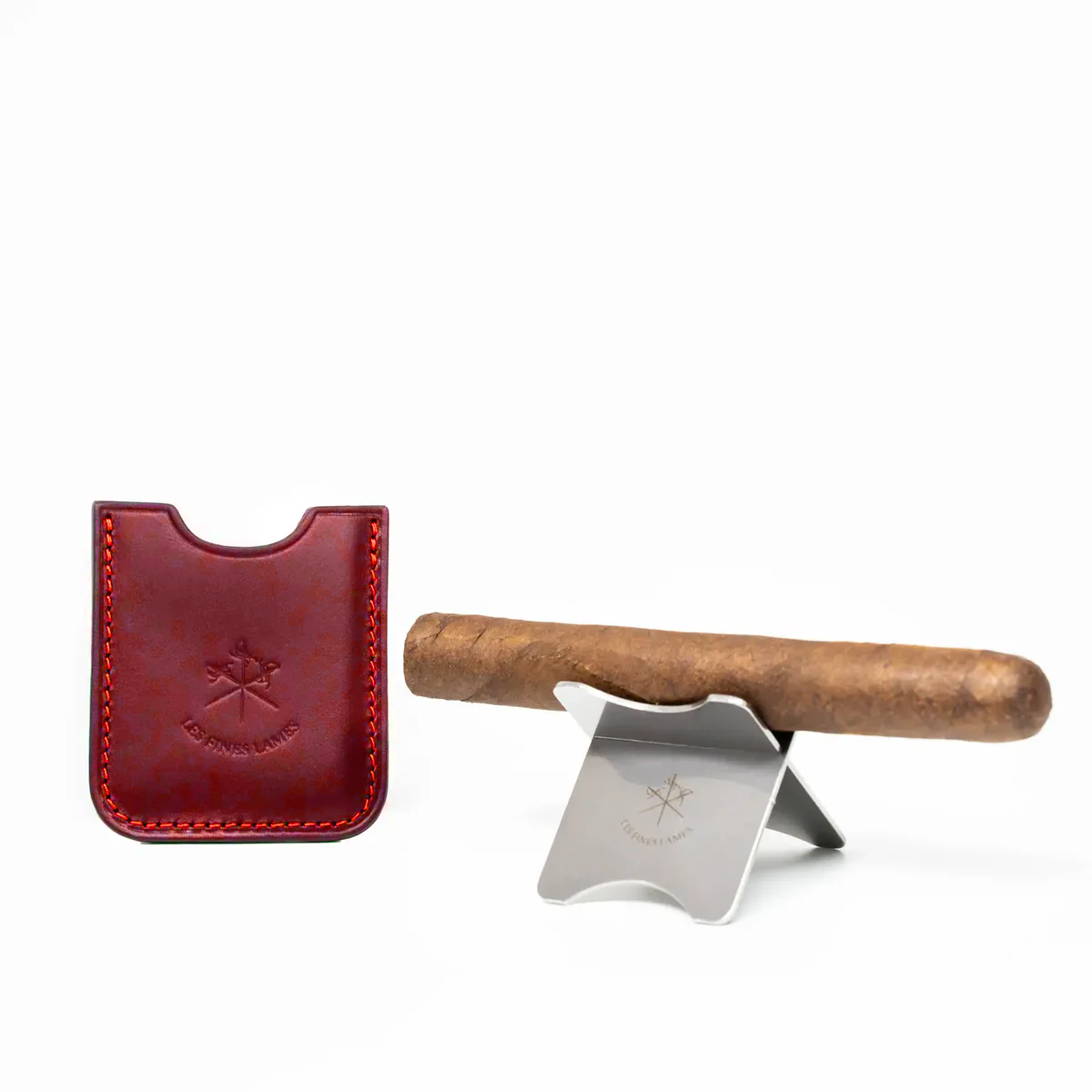 Mountable travel cigar holder, made of steel. With a simple gesture, assembling this essential stand for your cigar becomes an indispensable ritual. Comes with its own leather case, this compact travel companion will accompany you on your travels without taking up any unnecessary space.