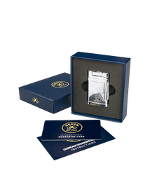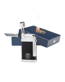 Small lighter for daily use. Mechanical flint. Adjustable flame. Lighting: mchanical flint. Refill: Butane GAS . Black fake leather gift box with customized Lubinski velvet interiors. Measures: (50mm x 30mm) Thickness (10mm). Weight: 55 grammes. Lubinski Warranty: 24 months. Instructions included in the box.