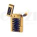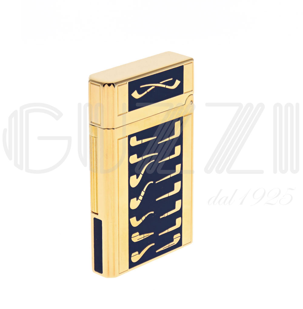 Enameled and gold finish with classic pipe shapes in subtle relief. Pleasant to the touch and stunning to look at. The flint mechanism is perfect for convenience and durability.