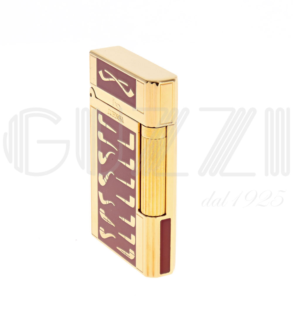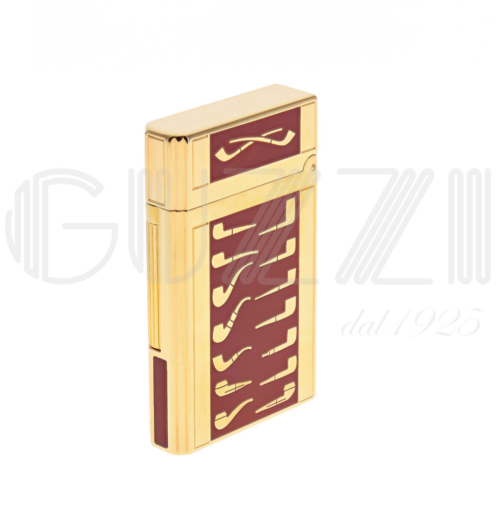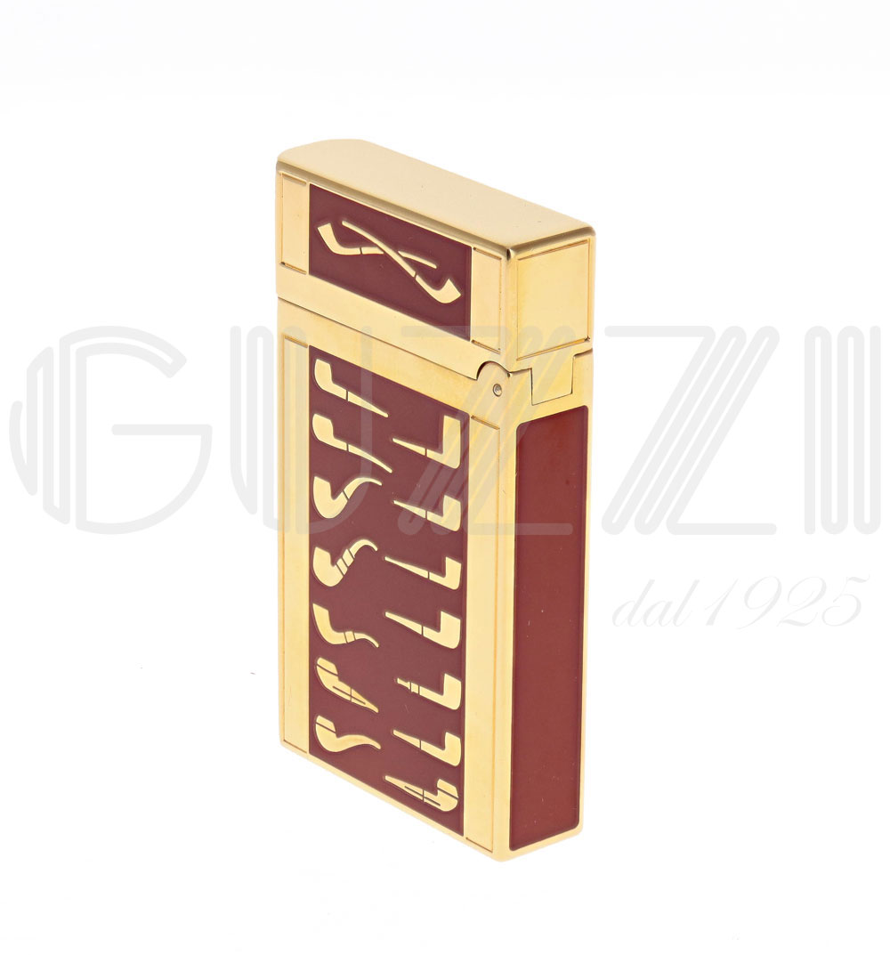 Enameled and gold finish with classic pipe shapes in subtle relief. Pleasant to the touch and stunning to look at. The flint mechanism is perfect for convenience and durability.