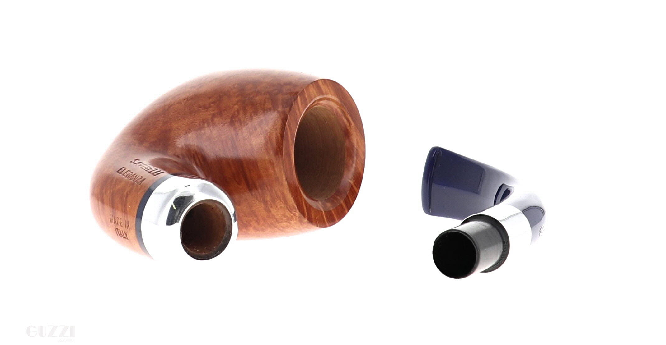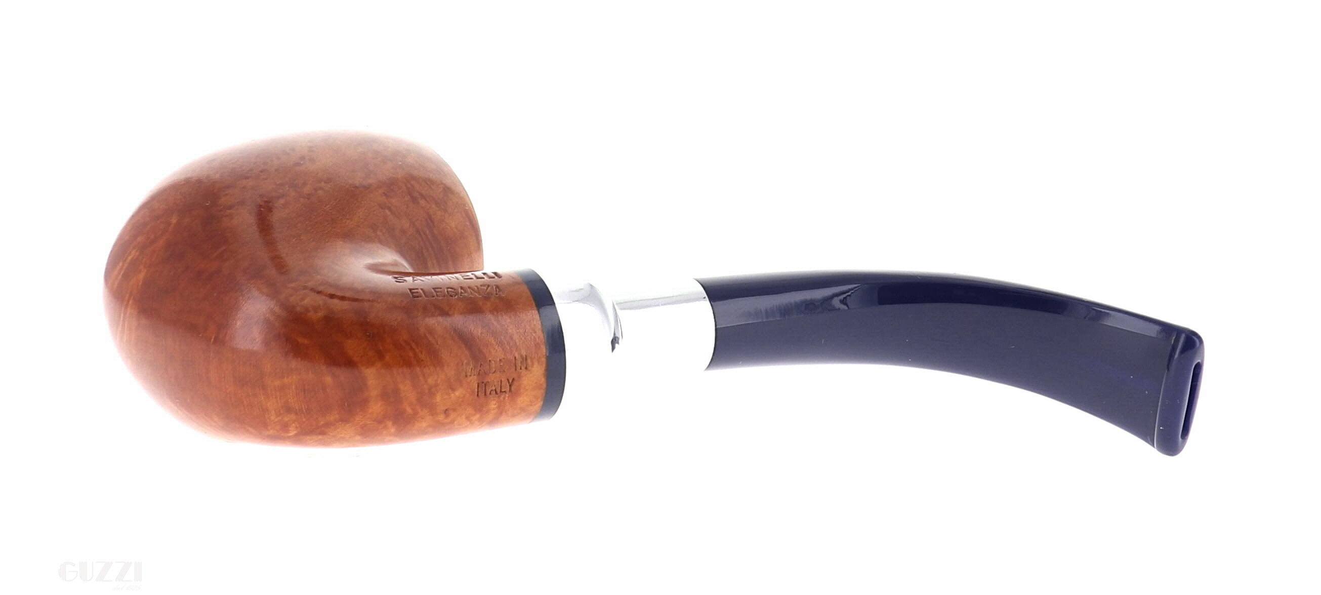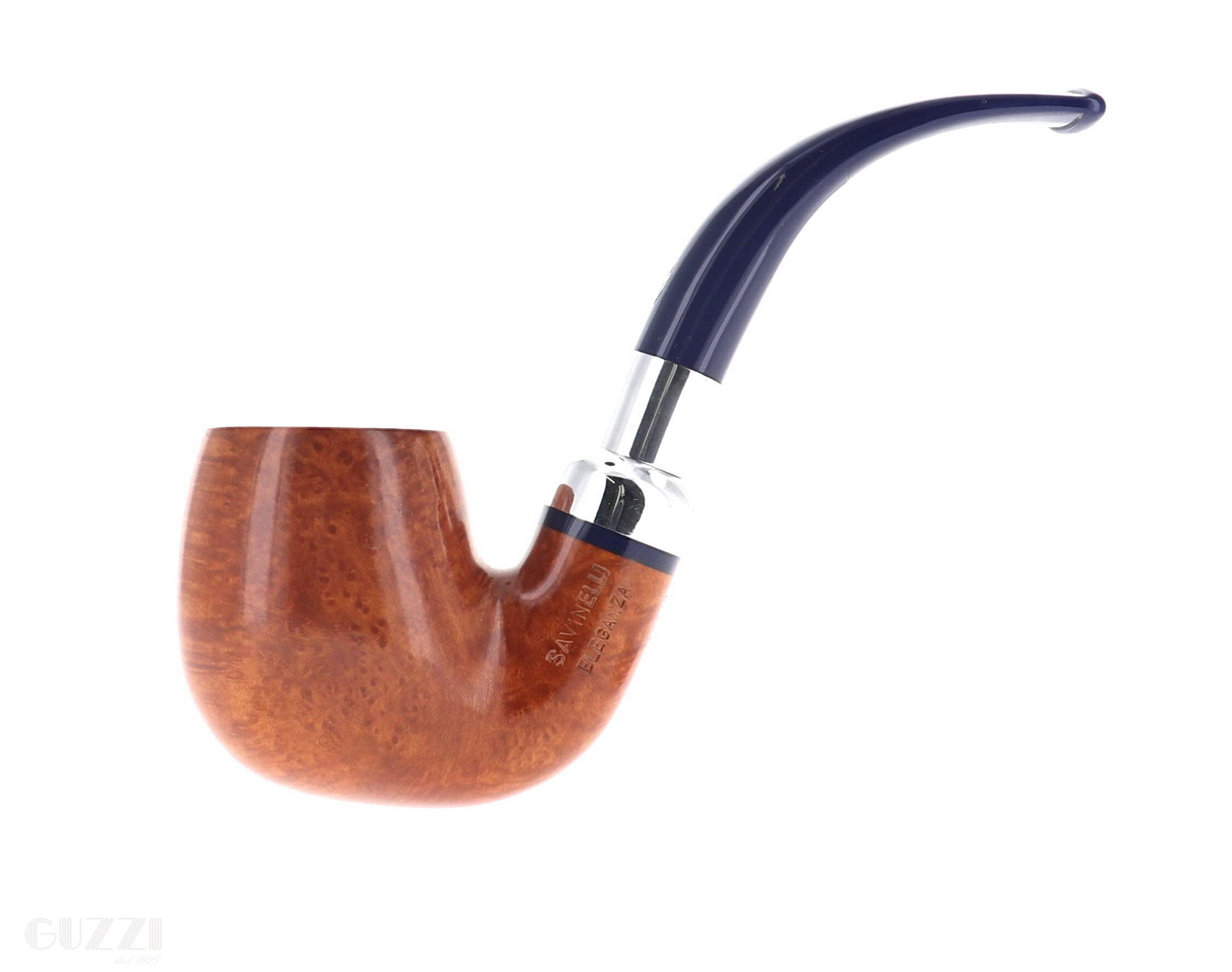 Pipe Savinelli Collection Eleganza 614, natural smoothfinishing, shape hungarian oom paul, elegant nickel spigot, blue methacrylate mouthpiece hole 9mm. New, never smoked. Elegant Savinelli box with cloth bag.