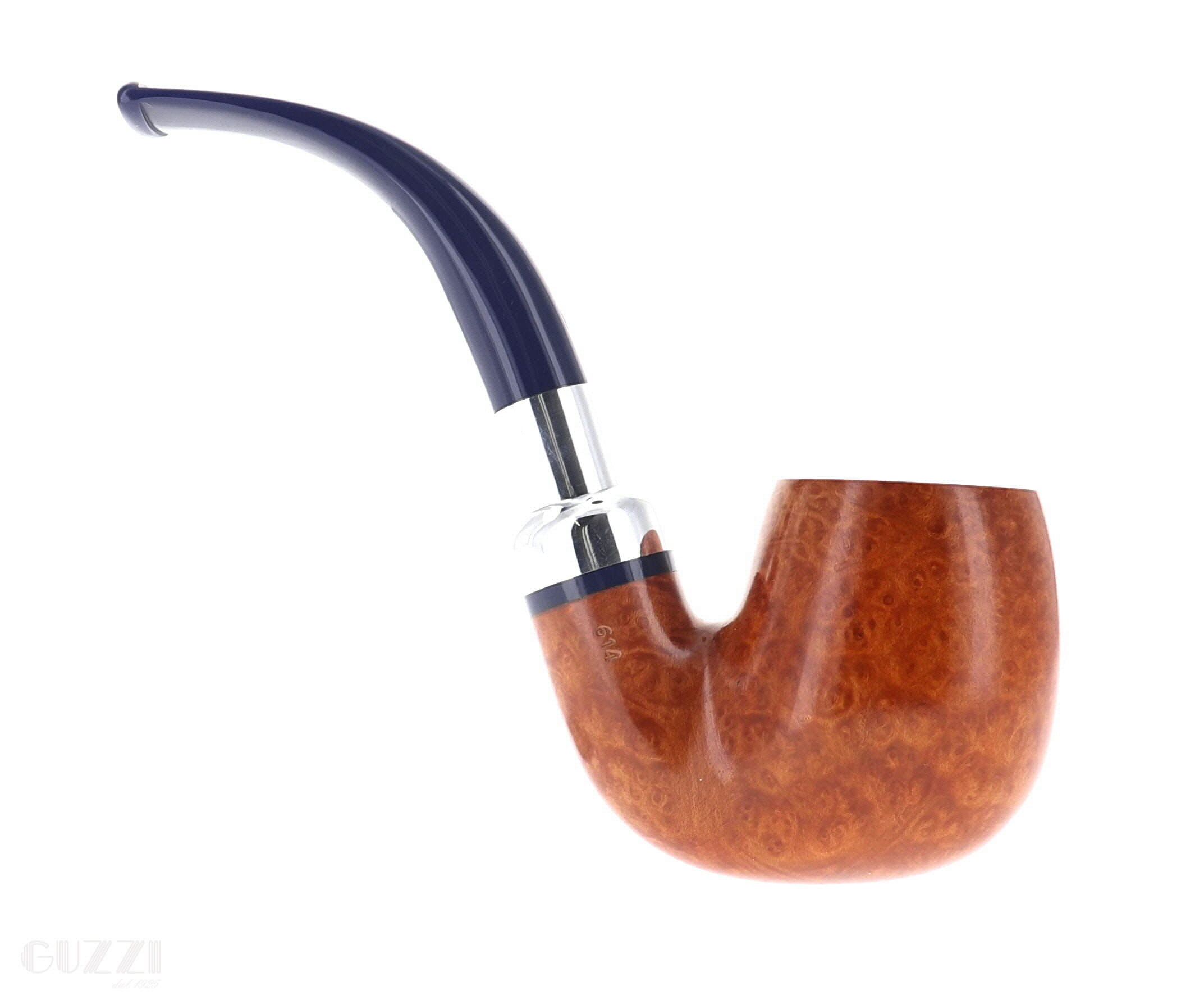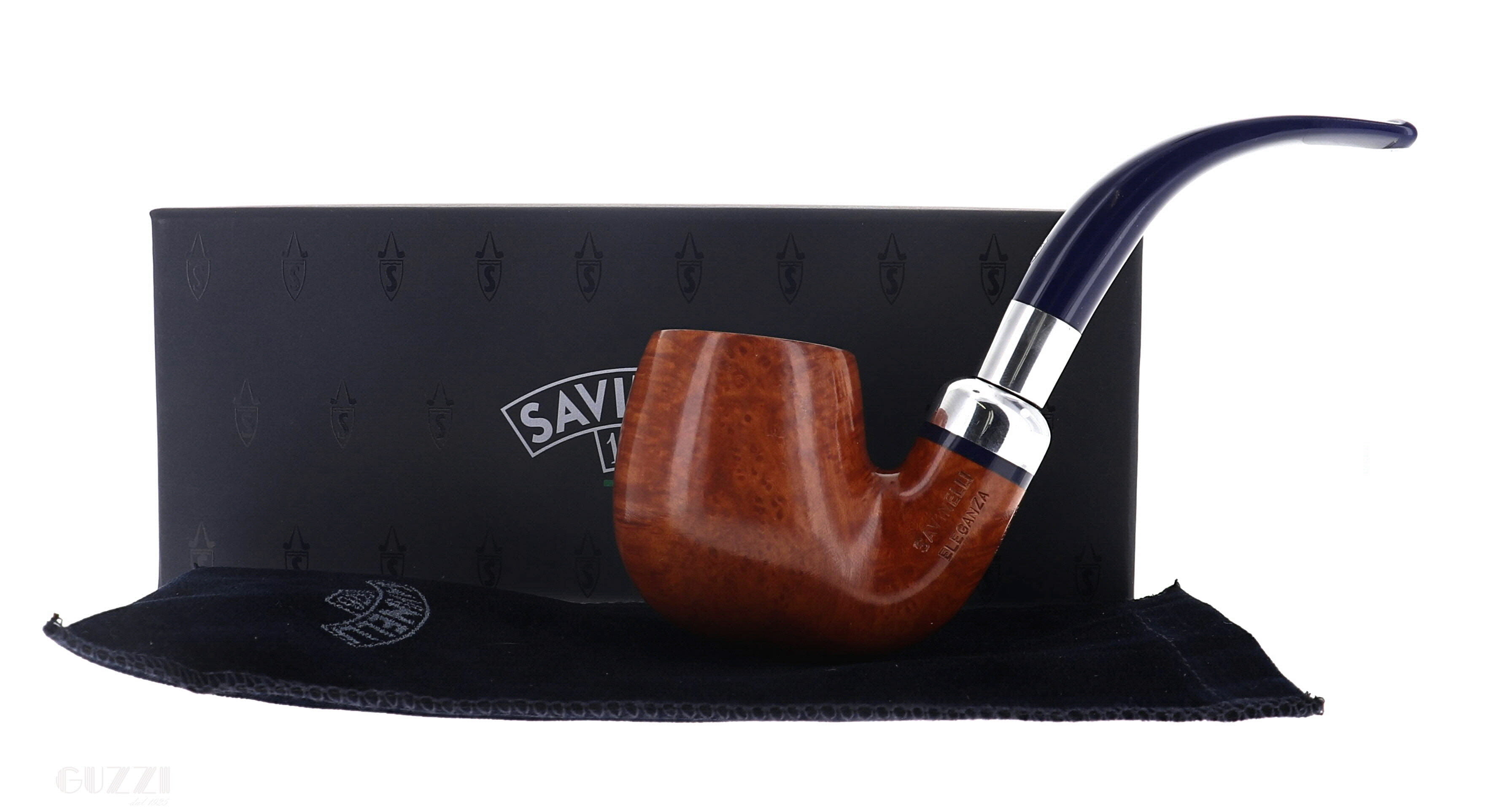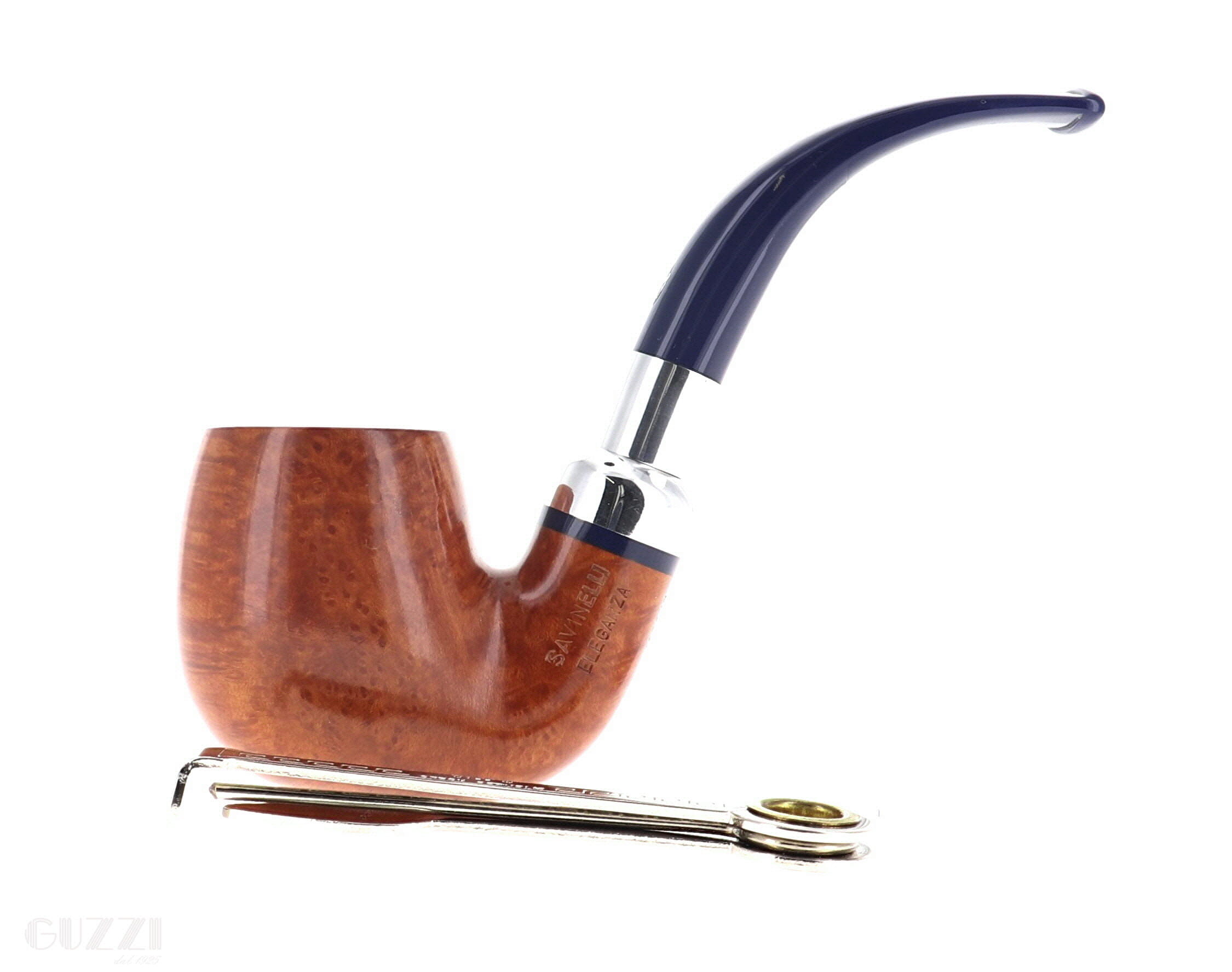 Pipe Savinelli Collection Eleganza 614, natural smoothfinishing, shape hungarian oom paul, elegant nickel spigot, blue methacrylate mouthpiece hole 9mm. New, never smoked. Elegant Savinelli box with cloth bag.