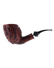 Pipe BRENTEGANI MICHELE 018, clear sandblasted finishing, shape stand up brandy, turquoise cumberland mouthpiece with ox horn ring. Mimmo Romeo's briar and New York Hamburger's mouthpiece. New, never smoked. Handmade in Italy, Verona. Original bag.