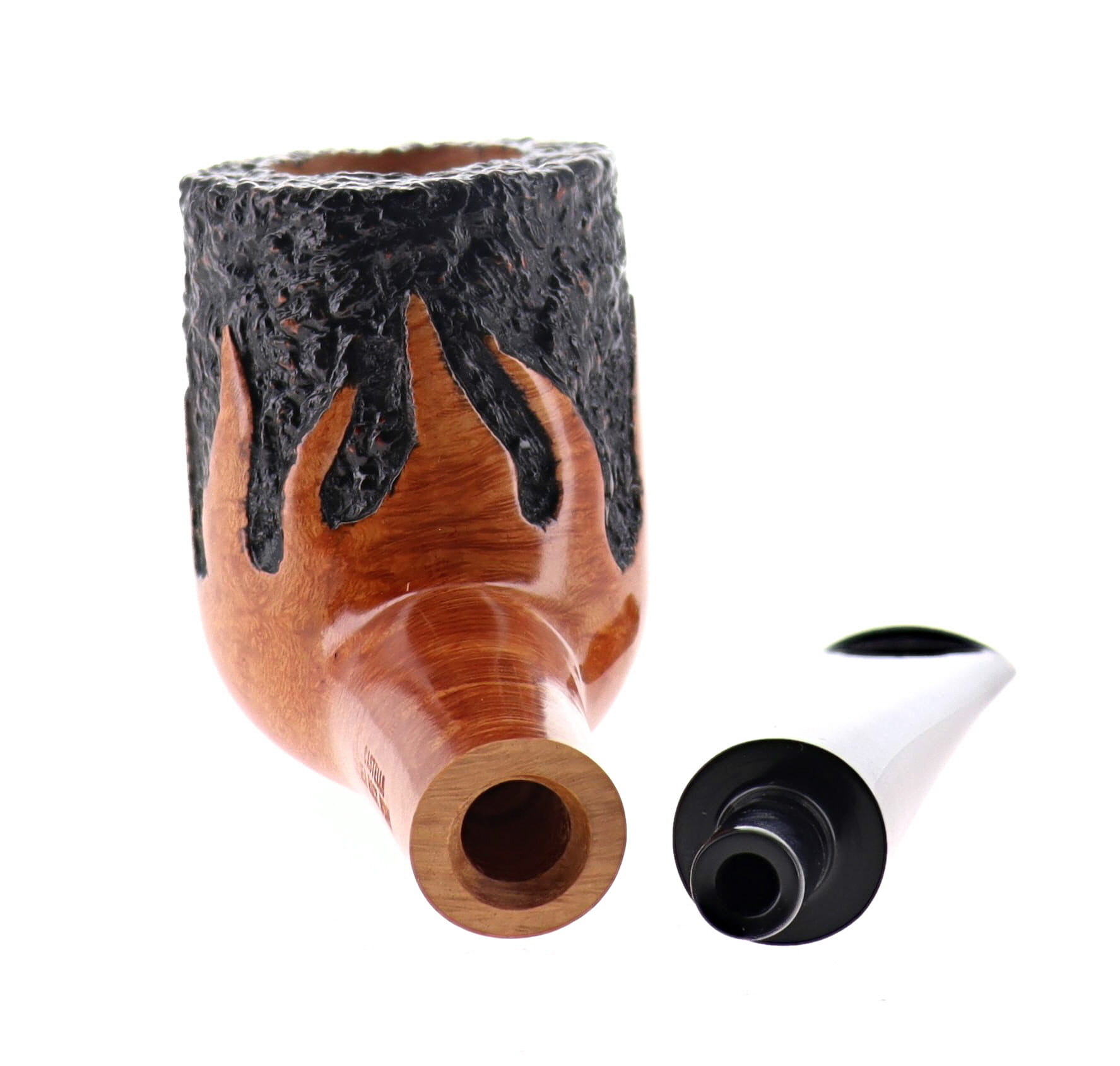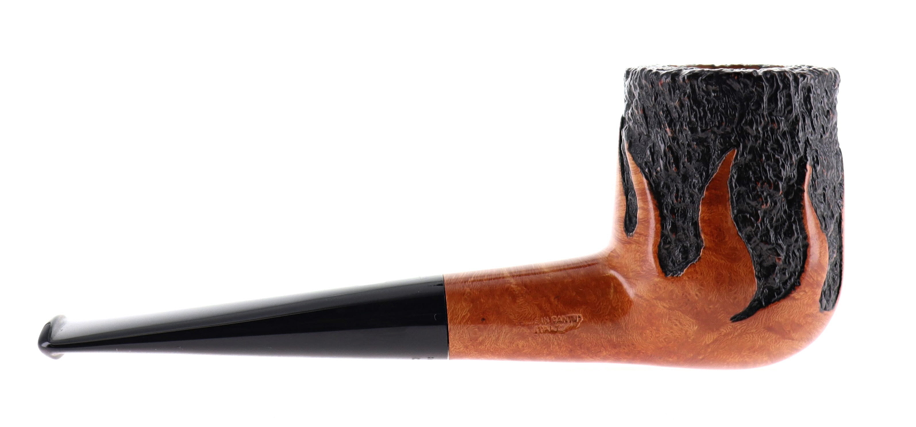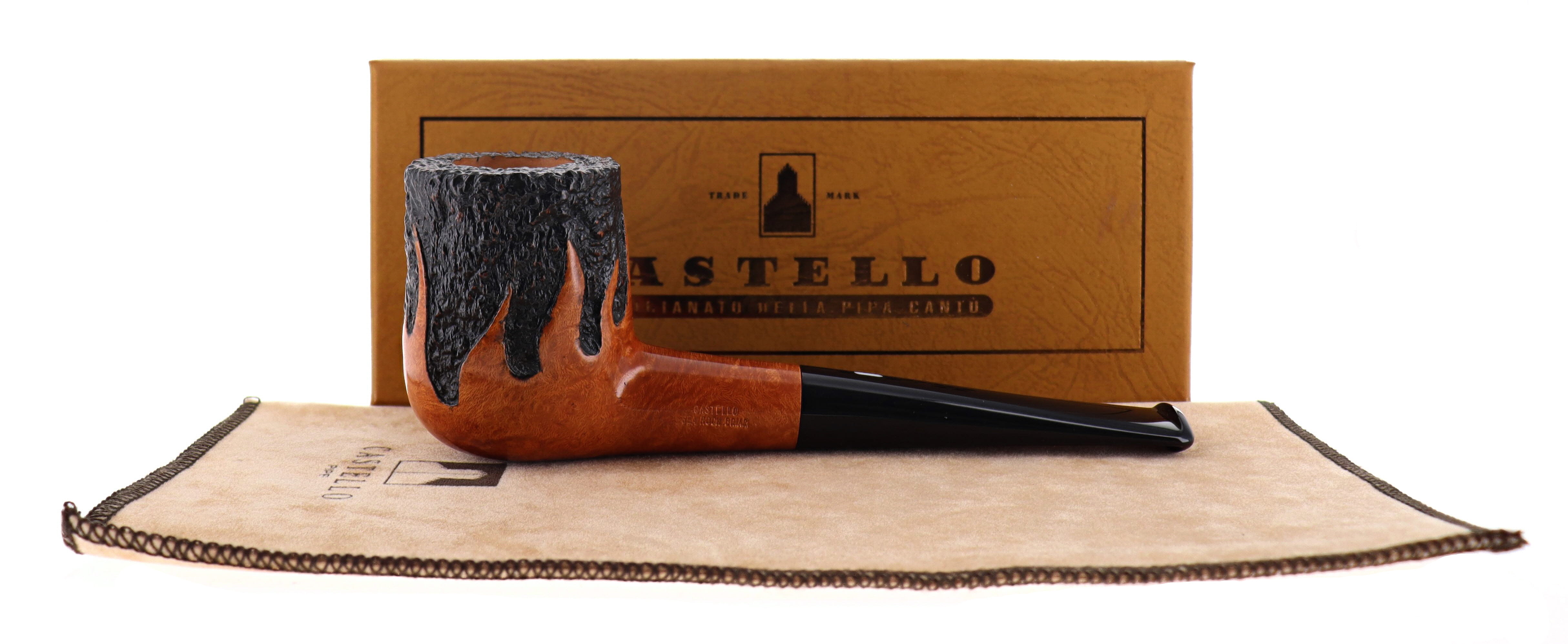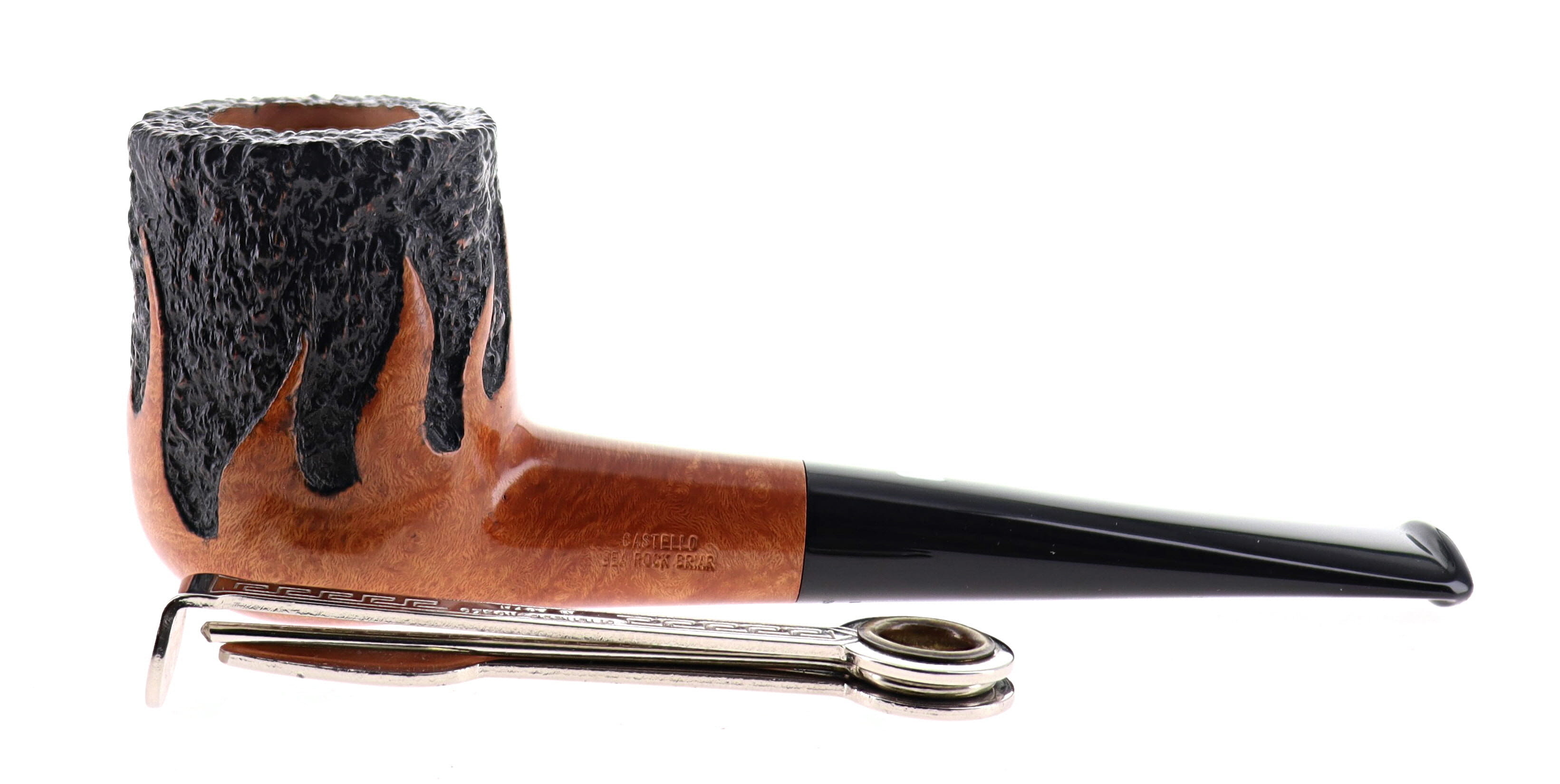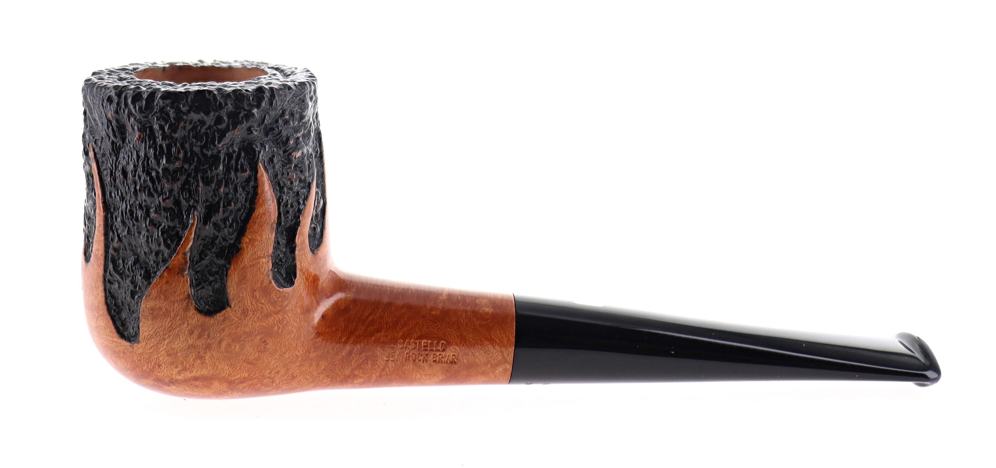 Pipe CASTELLO 0873 100° ANNIVERSARY TABACCHERIA GUZZI 21.29 OLD SEA ROCK, Flames rusticated finishing, shape stand up billiard, methacrylate mouthpiece. In original box with sock. Perfect, new, never smoked. Pipe made in 2025. Handmade pipes since 1947 in Cantù.