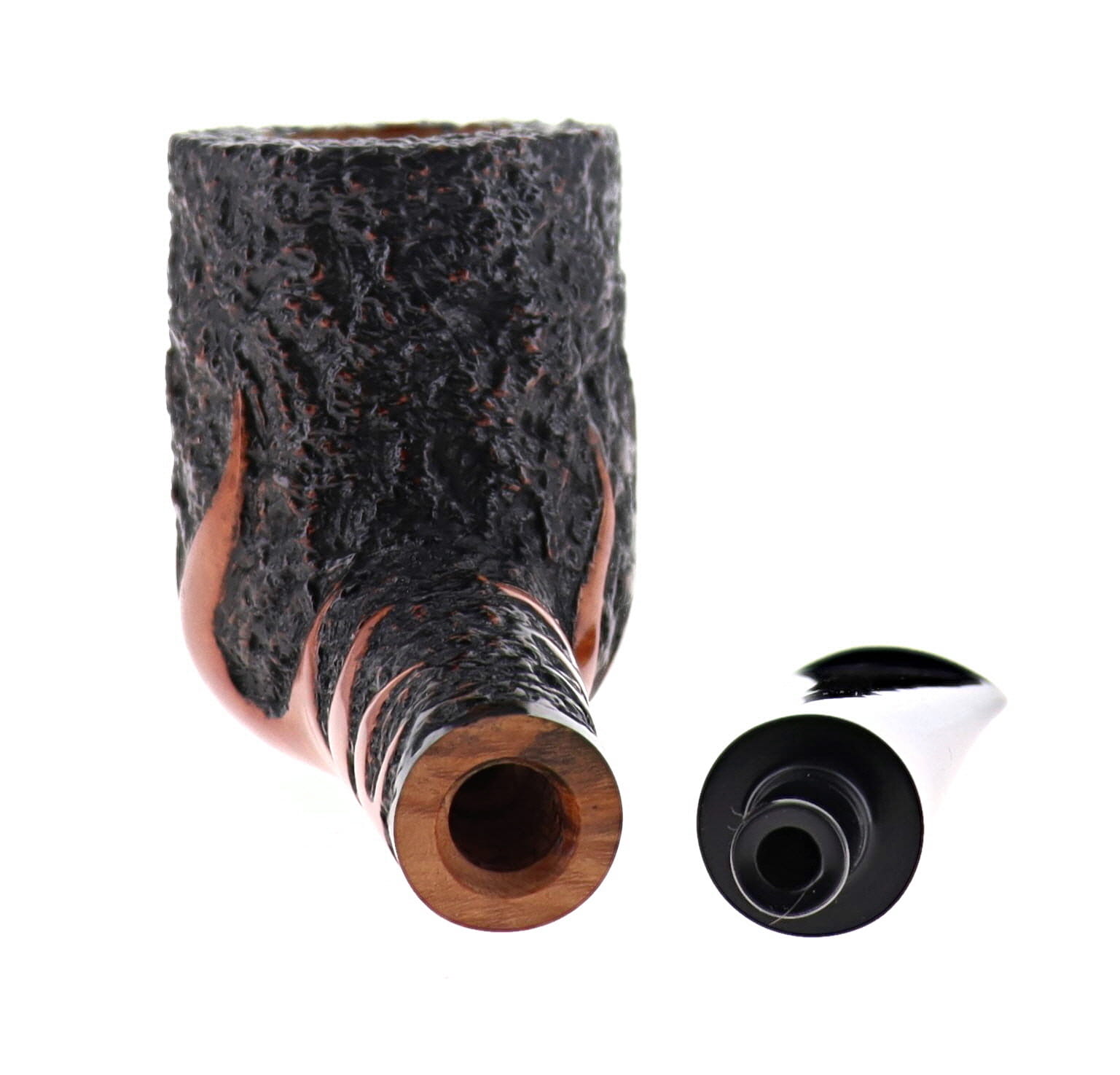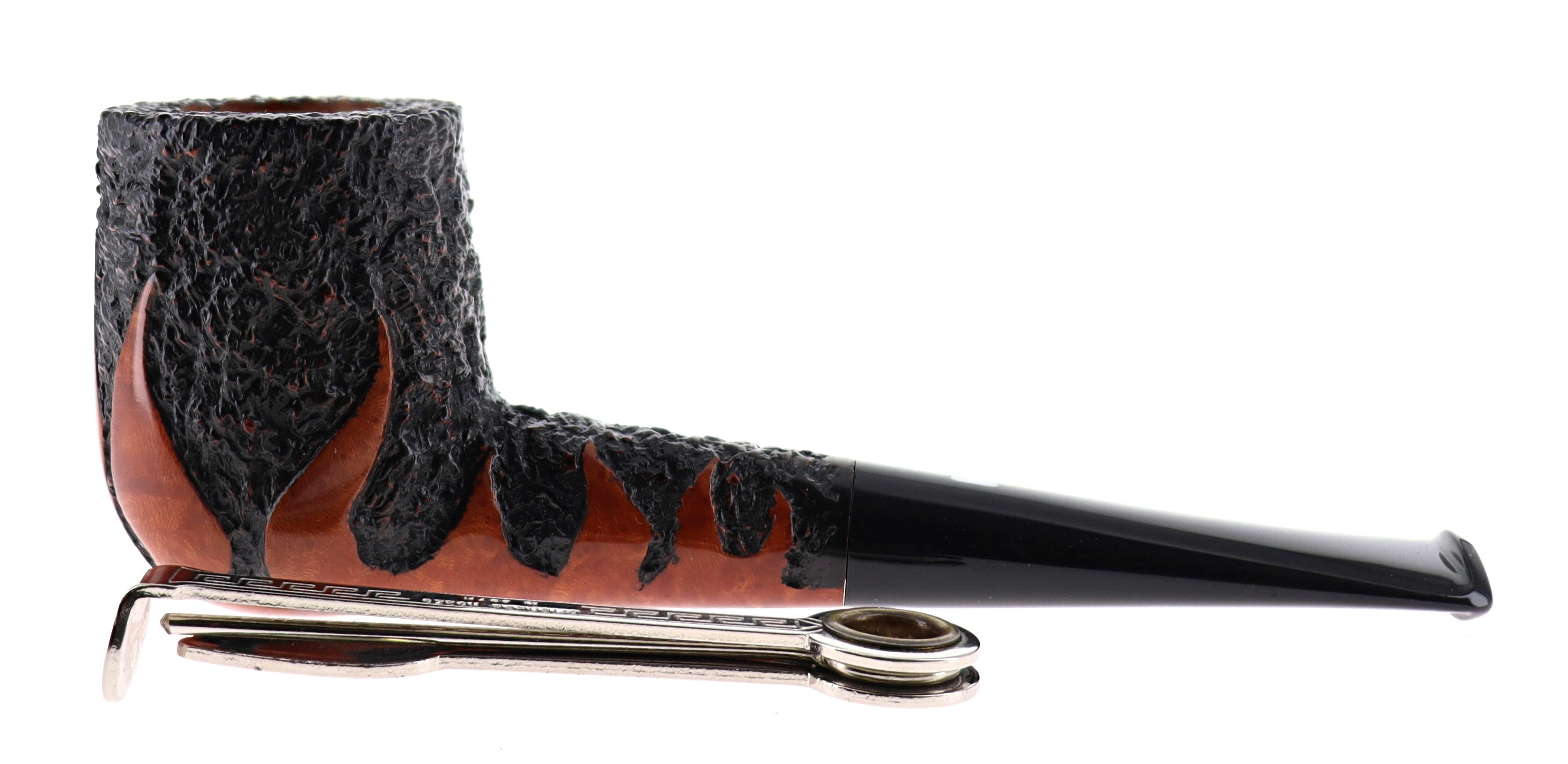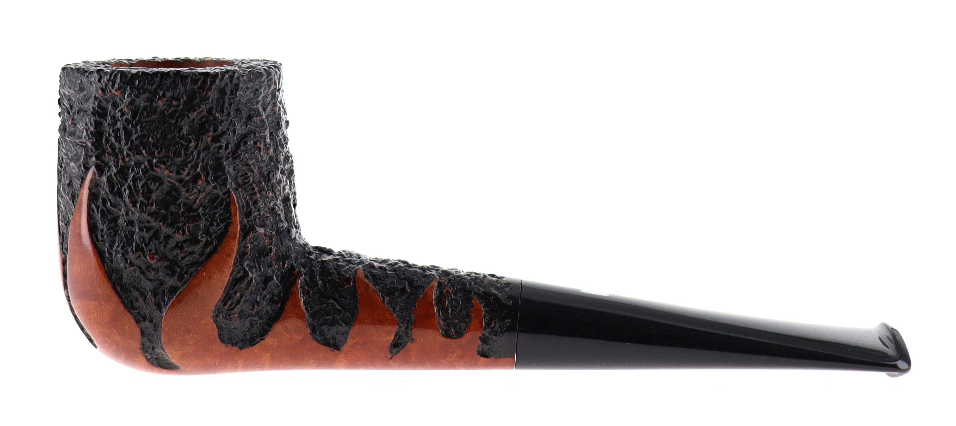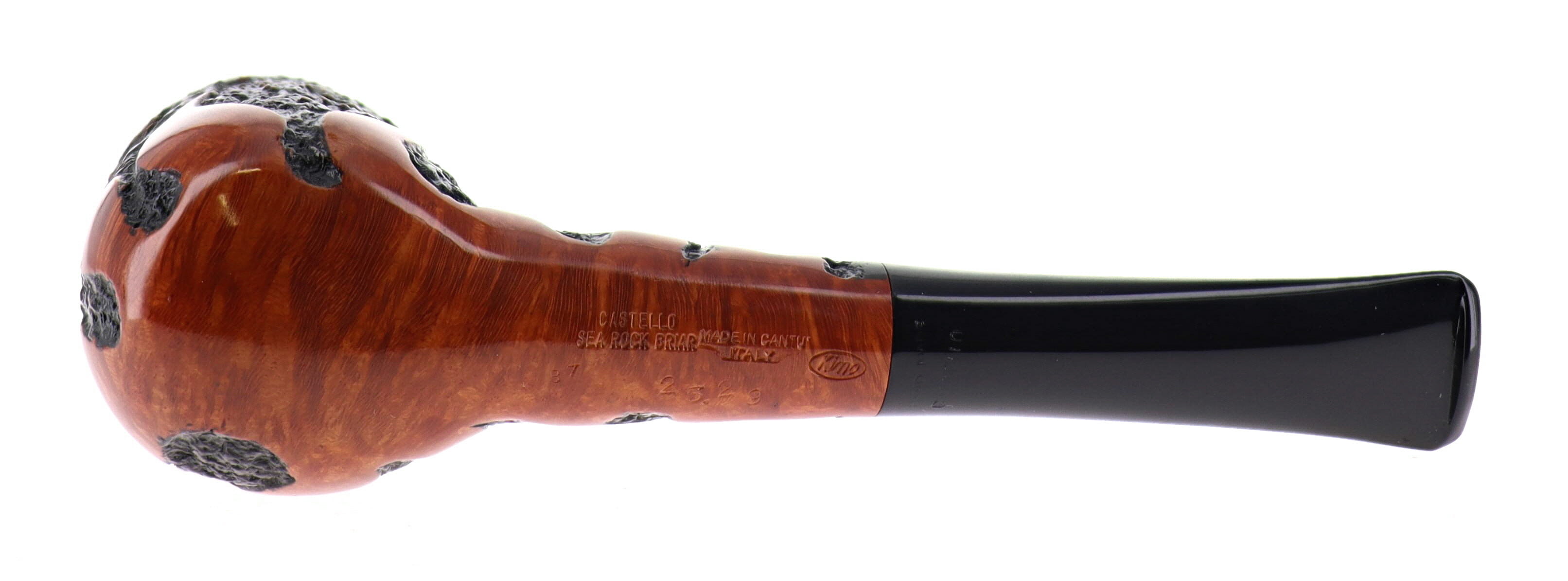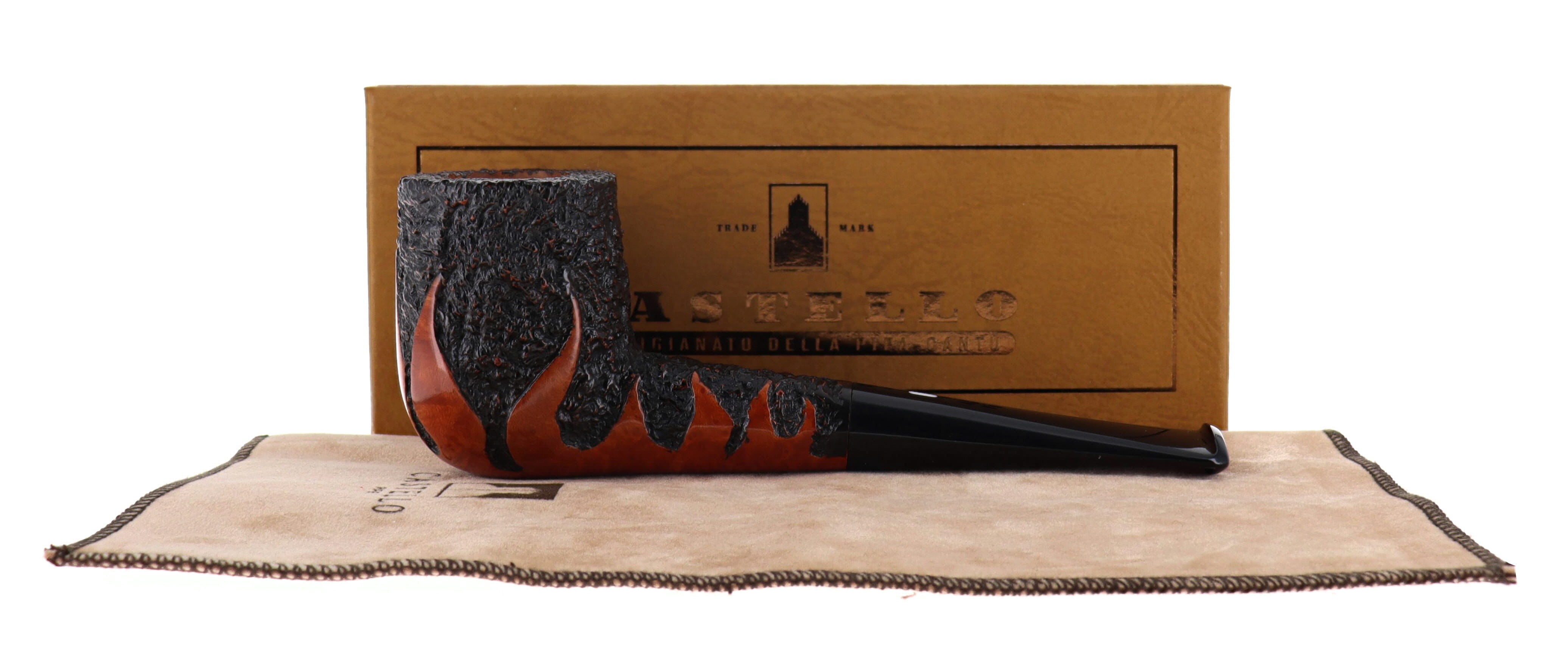 Pipe CASTELLO 0881 100° ANNIVERSARY TABACCHERIA GUZZI 23.29 OLD SEA ROCK, flames rusticated finishing, shape stand up billiard, methacrylate mouthpiece. In original box with sock. Perfect, new, never smoked. Pipe made in 2025. Handmade pipes since 1947 in Cantù.