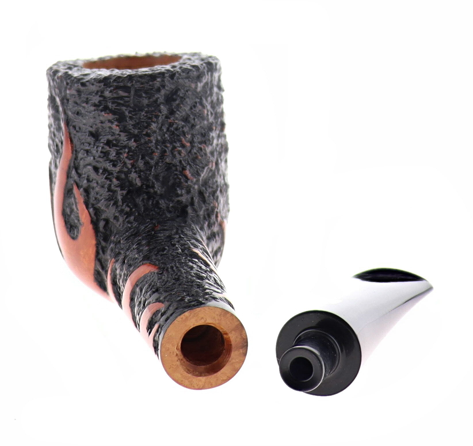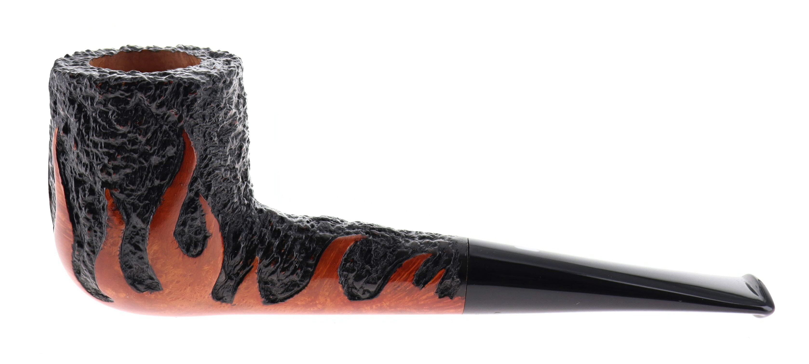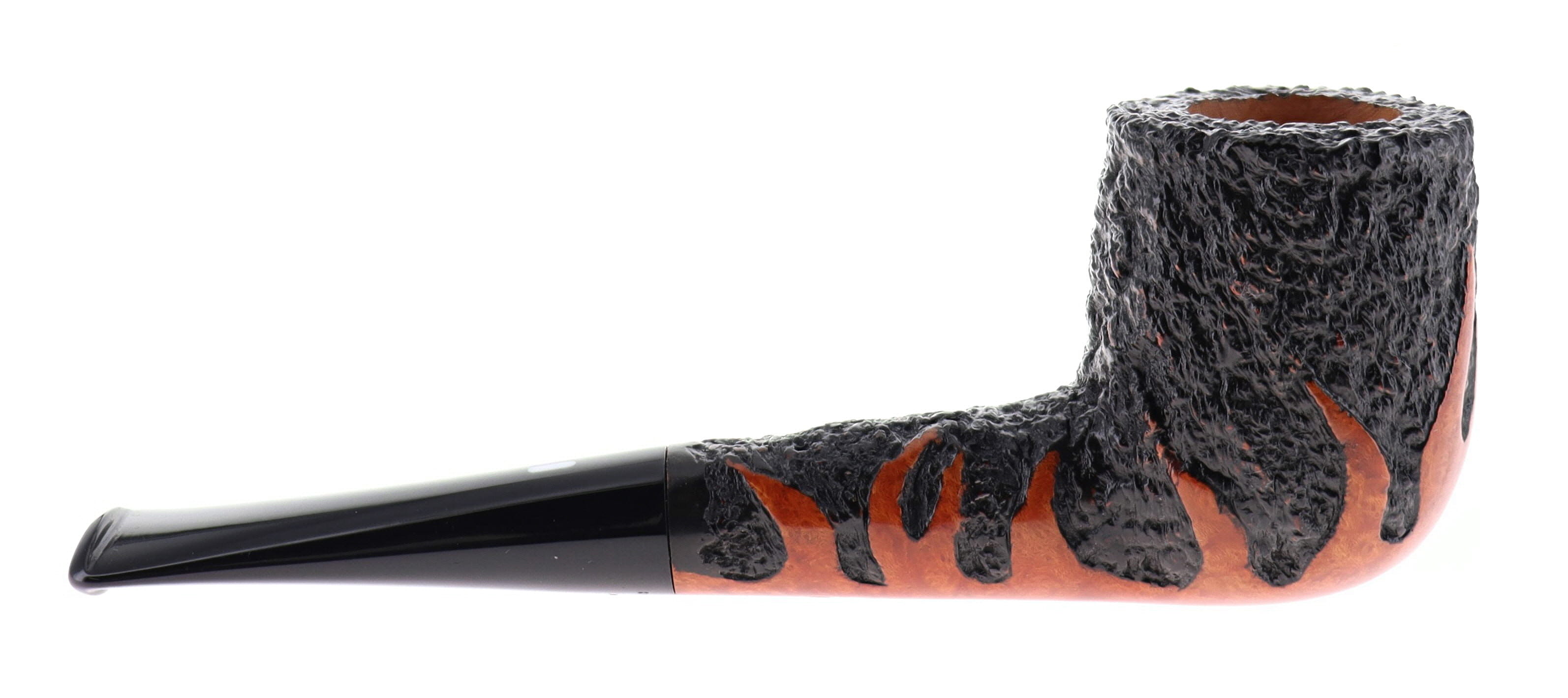 Pipe CASTELLO 0877 100° ANNIVERSARY TABACCHERIA GUZZI 8.29 SEA ROCK BRIAR, flames rusticated finishing, shape stand up billiard, methacrylate mouthpiece. In original box with sock. Perfect, new, never smoked. Pipe made in 2025. Handmade pipes since 1947 in Cantù.