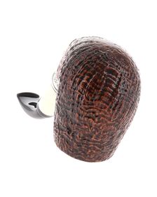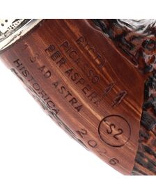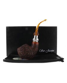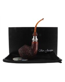 Pipe La Biota 019, dark sandblasted finishing, shape bent dublin with boxwood ring, cumberland mouthpiece. New, never smoked. In original box with sock. Handmade in 2025 by Michele Sottocasa.