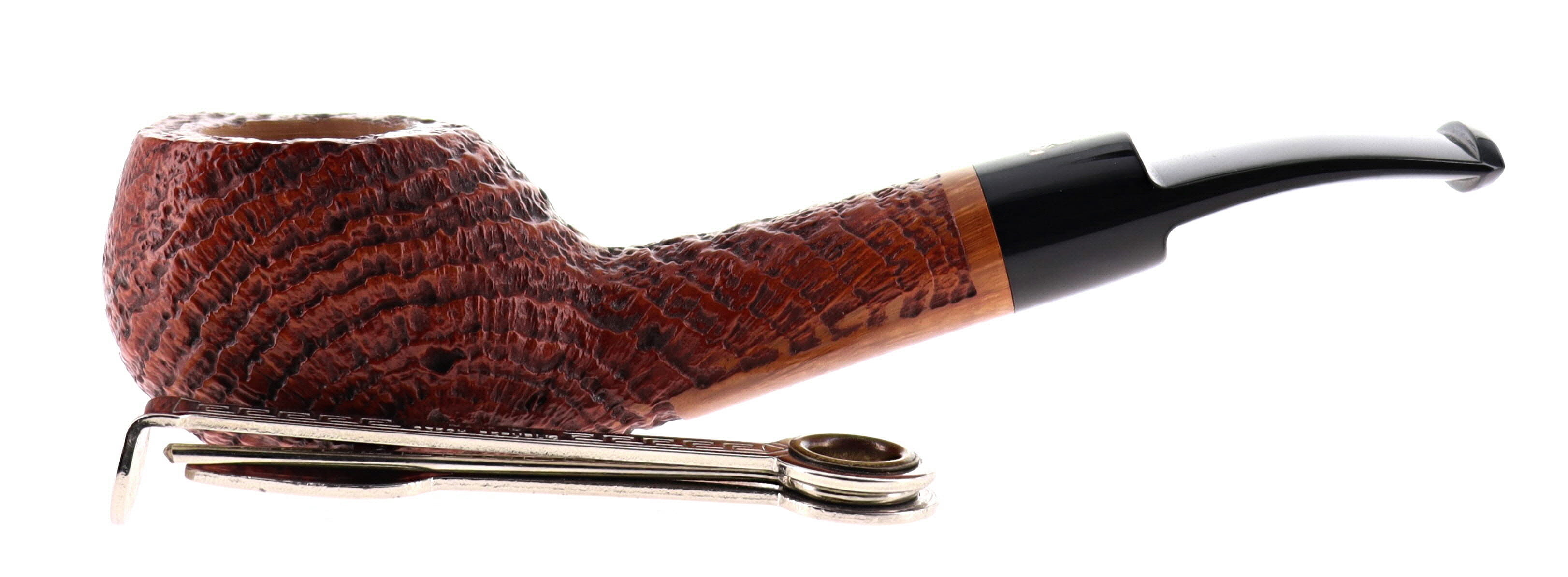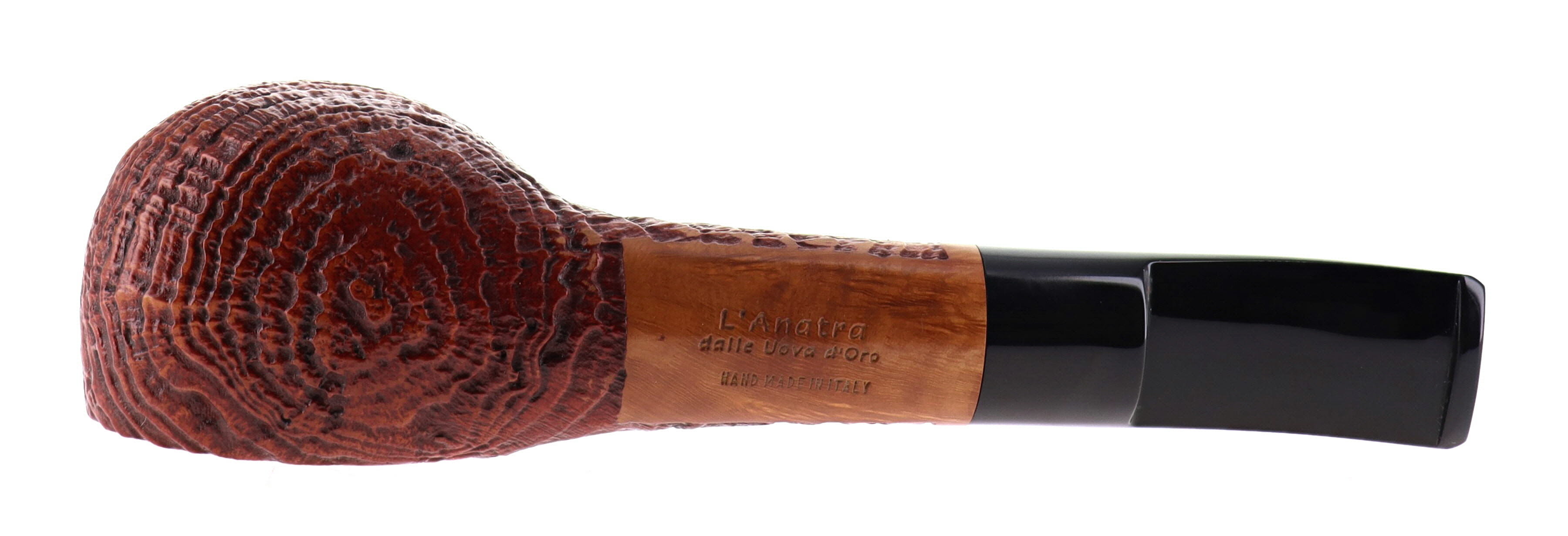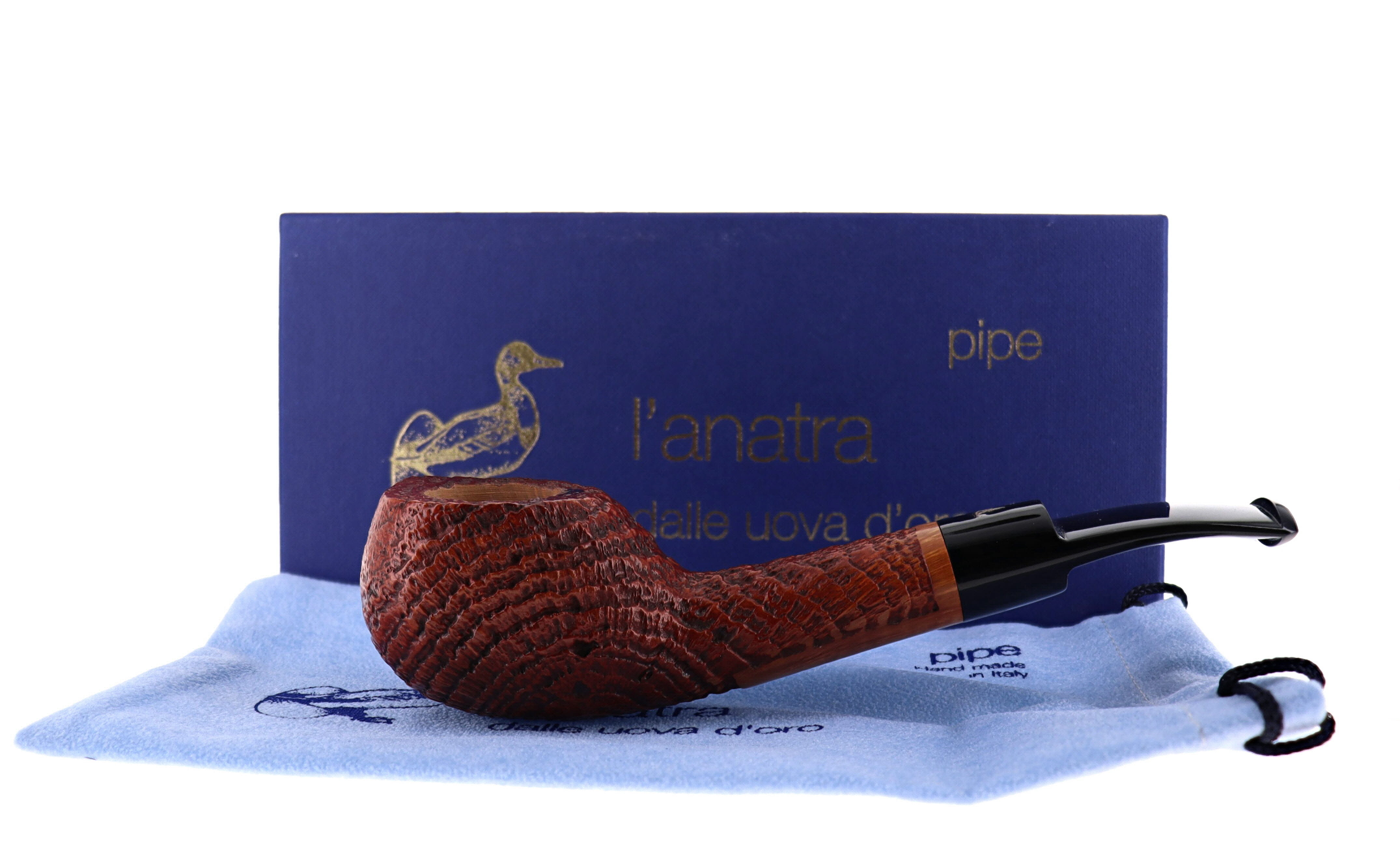 Pipe L'Anatra dalle Uova D'Oro 225 SABBIATA, brown sandblasted finishing, shape freehand, methacrylate mouthpiece. Handmade in Italy. Single piece. In original box with cloth. Perfect, new, never smoked.