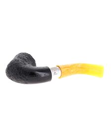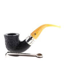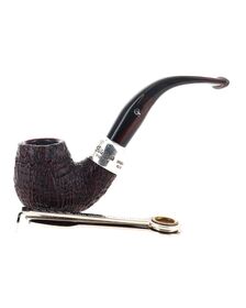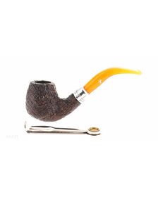 Pipe Peterson of Dublin DELUXE SYSTEM 3S OLD COLOUR, brown smooth finishing, shape bent apple with silver ring, metacrylate mouthpiece. Perfect, new, never smoked. In original box with sock bag.