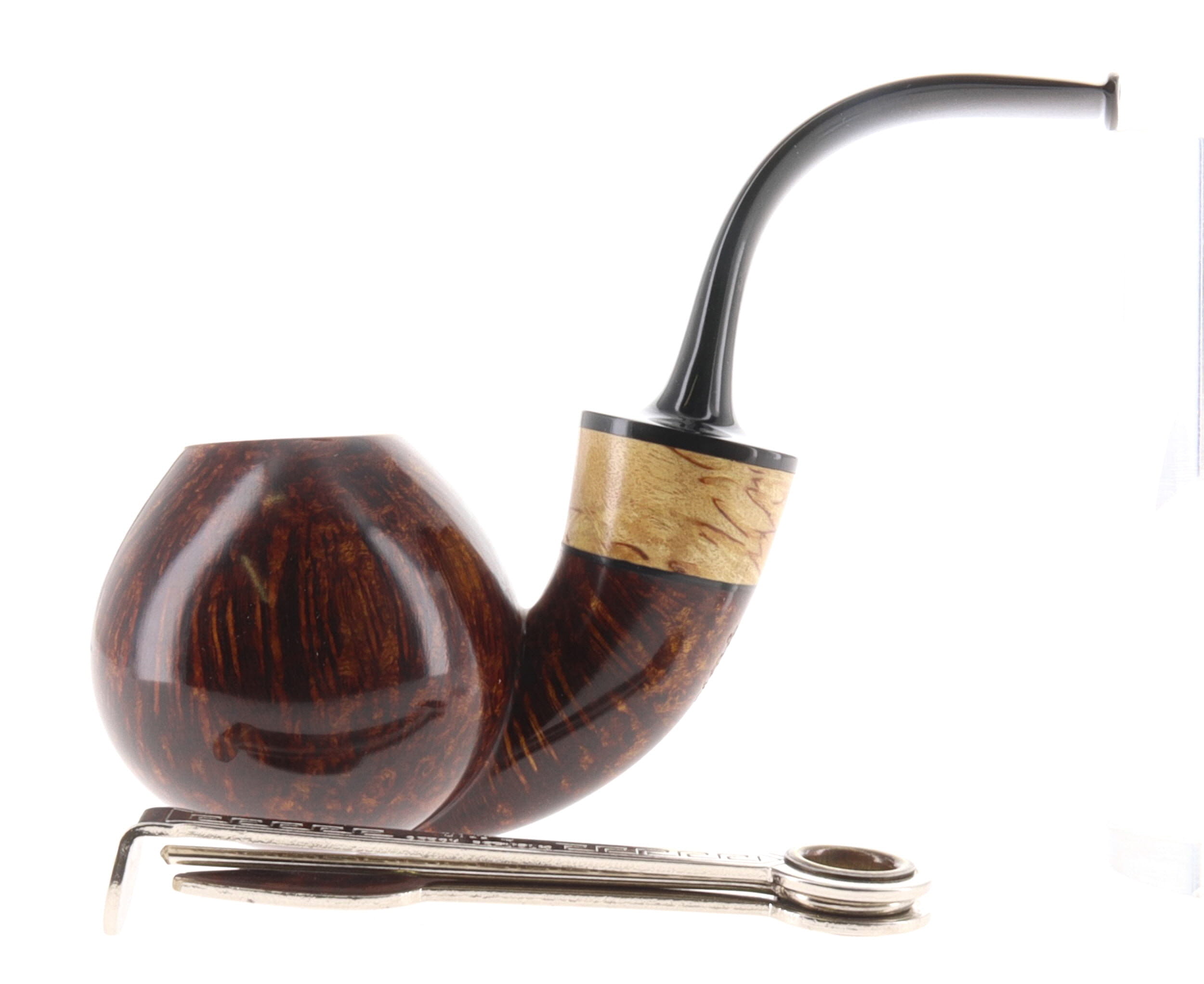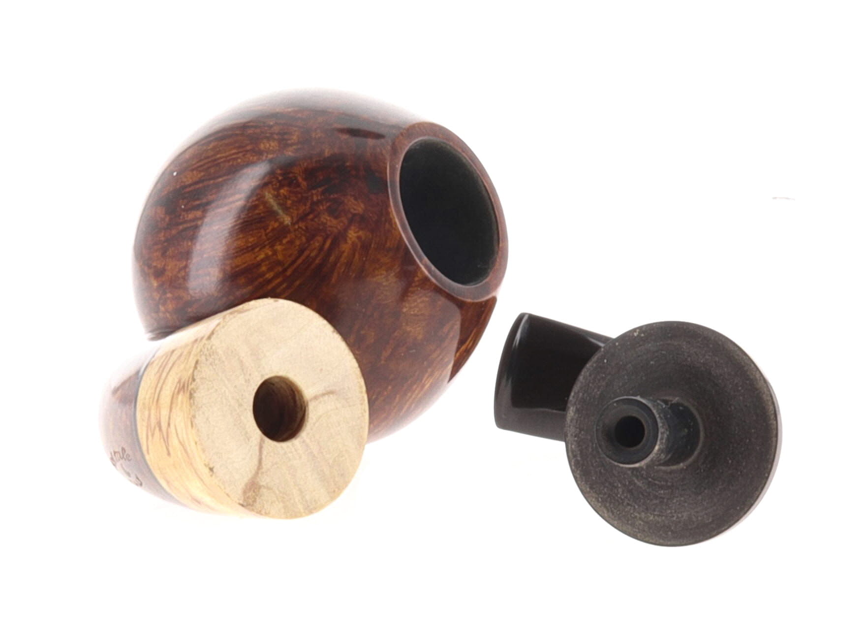 Pipe Vitale 092 * 1 LUNA, brown smooth finishing, shape full bent apple with zebrano ring, ebonite mouthpiece. New, never smoked. In original box with sock.