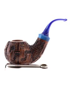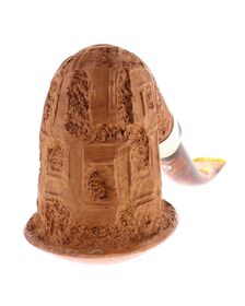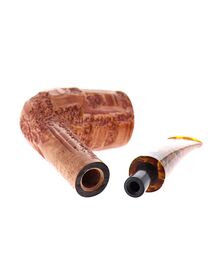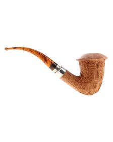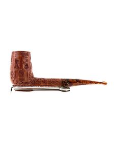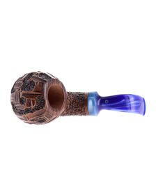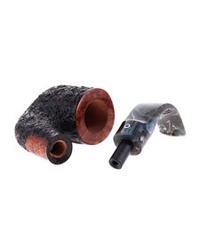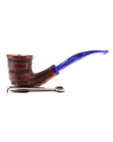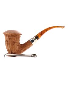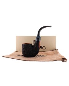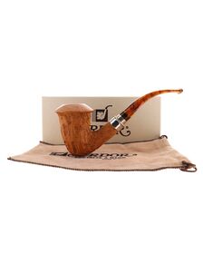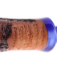 Pipe PROXIMA 008, contrast sandblasted finishing, shape stand up straight brandy, methacrylate mouthpiece. Machine made and hand refined by Piero Vitale. Made in Italy.