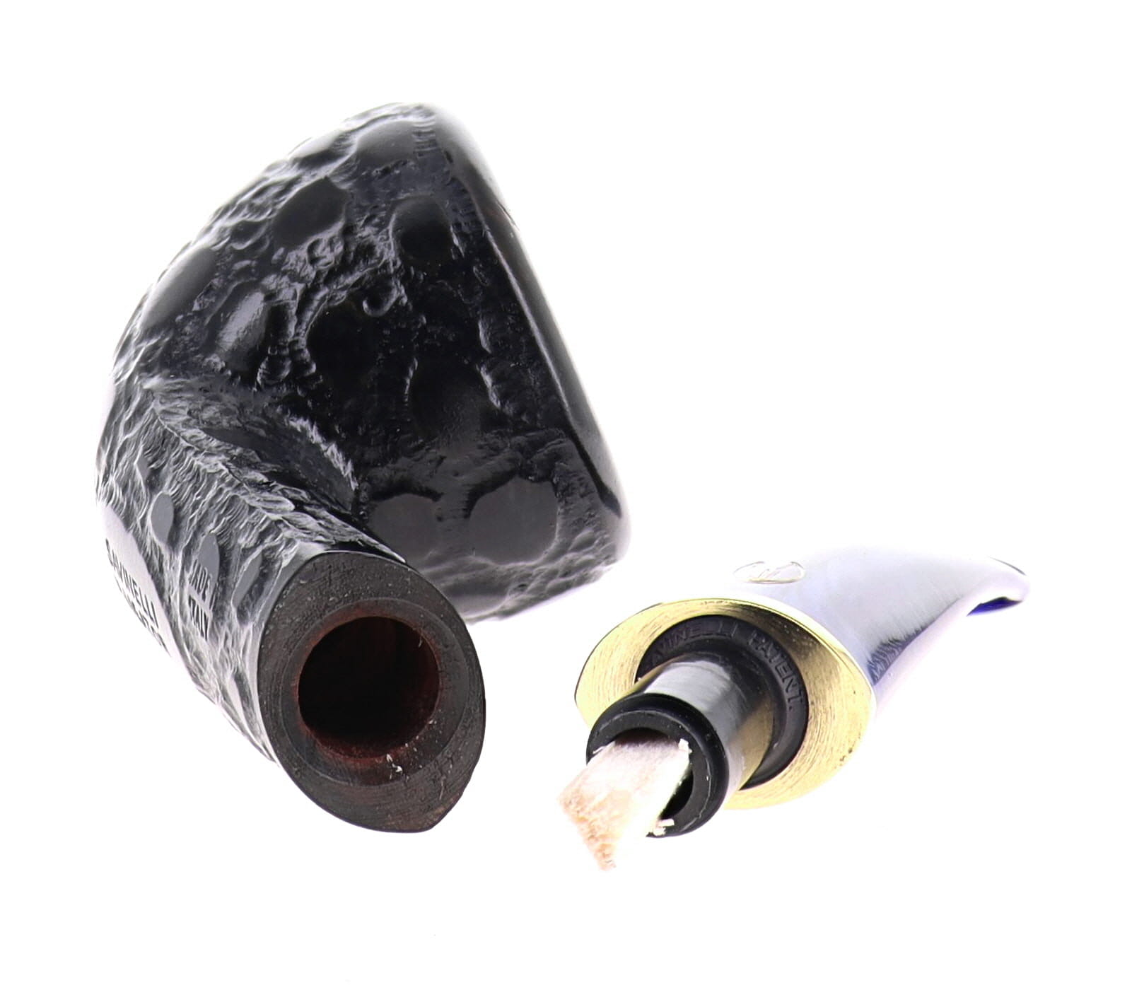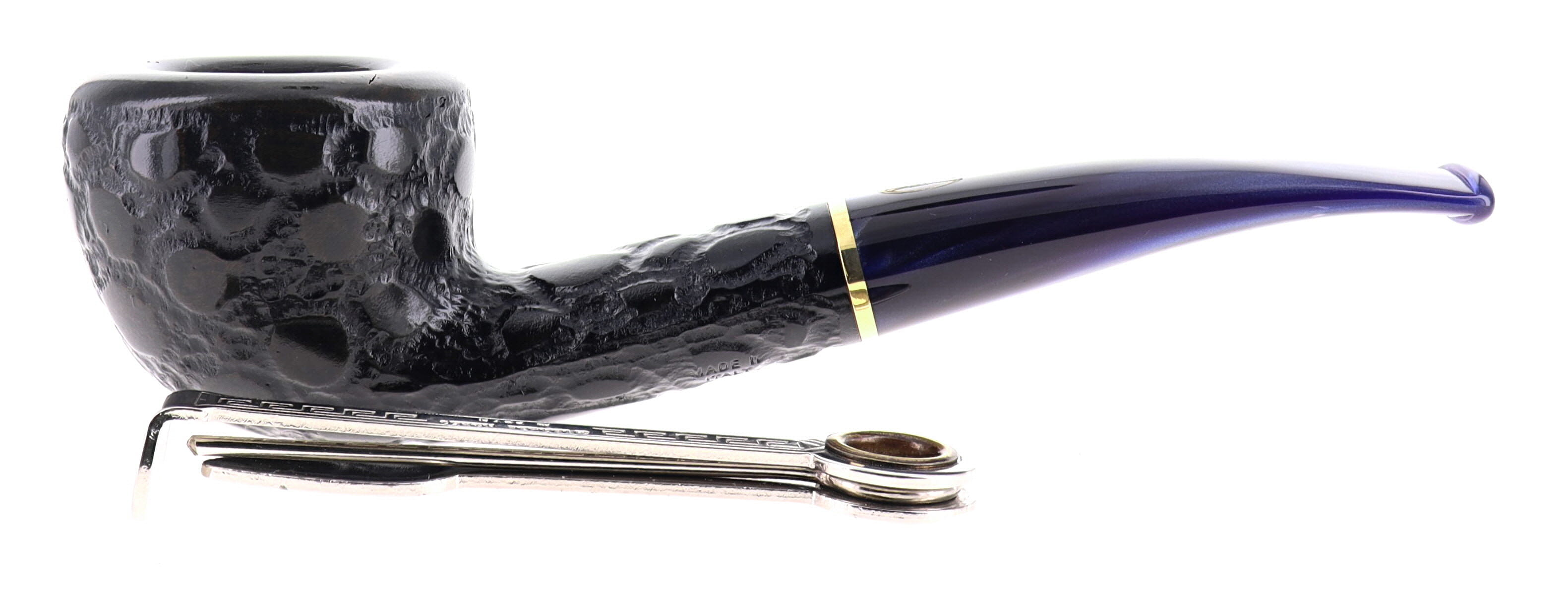 Savinelli ALLIGATOR Collection pipe, custom finish, Billiard shape, black acrylic stem, 6mm bore. New, never smoked. In elegant original packaging with a cloth pouch. Savinelli ALLIGATOR Collection pipe, custom finish, D shape, black acrylic mouthpiece, 6mm bore. New, never smoked. In elegant original packaging with a cloth pouch. Model 316 KS is an atypical curved Dublin with a distinctive conical bowl. The connecting stem between the bowl and the mouthpiece has a triangular cross-section.