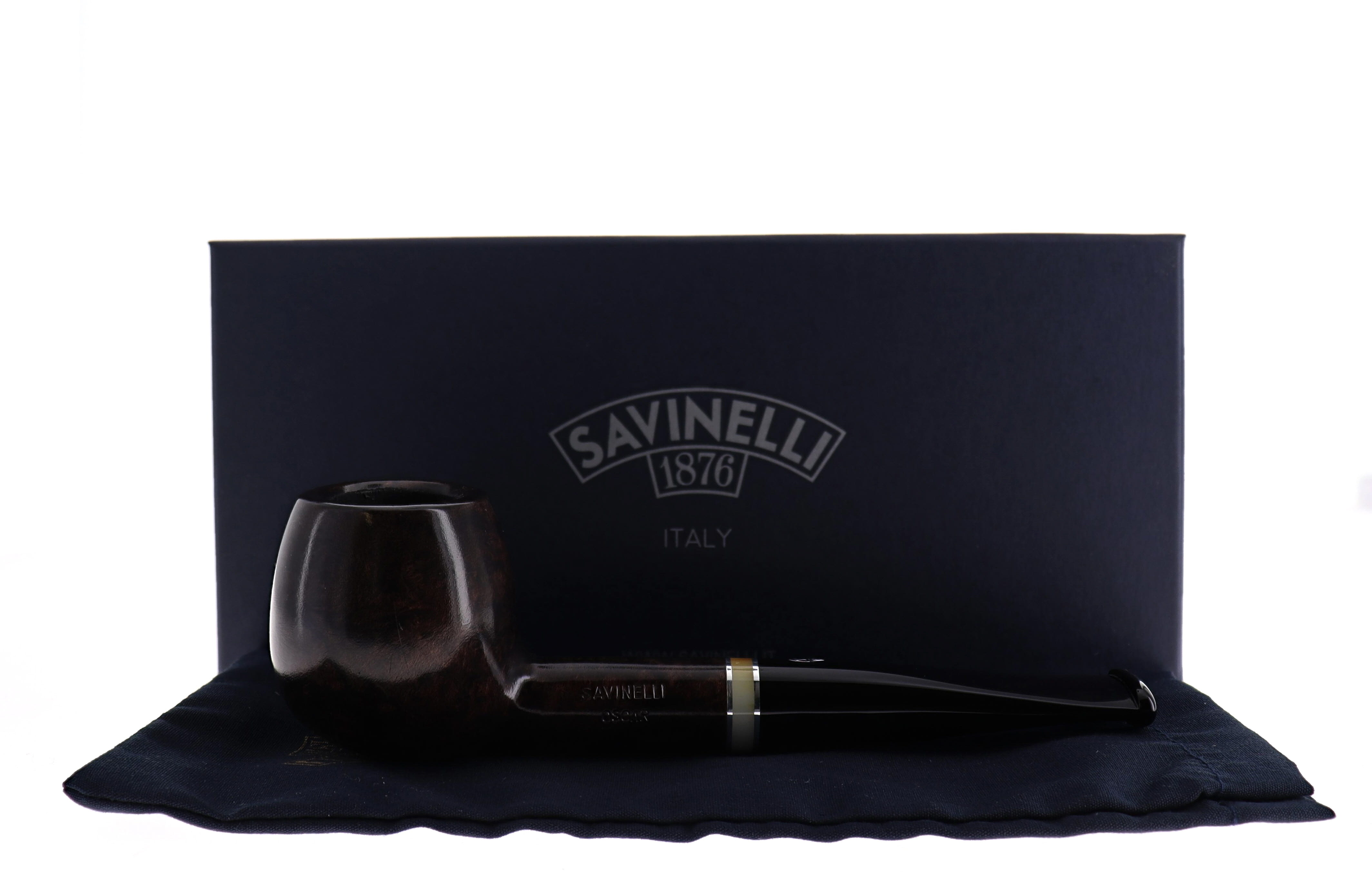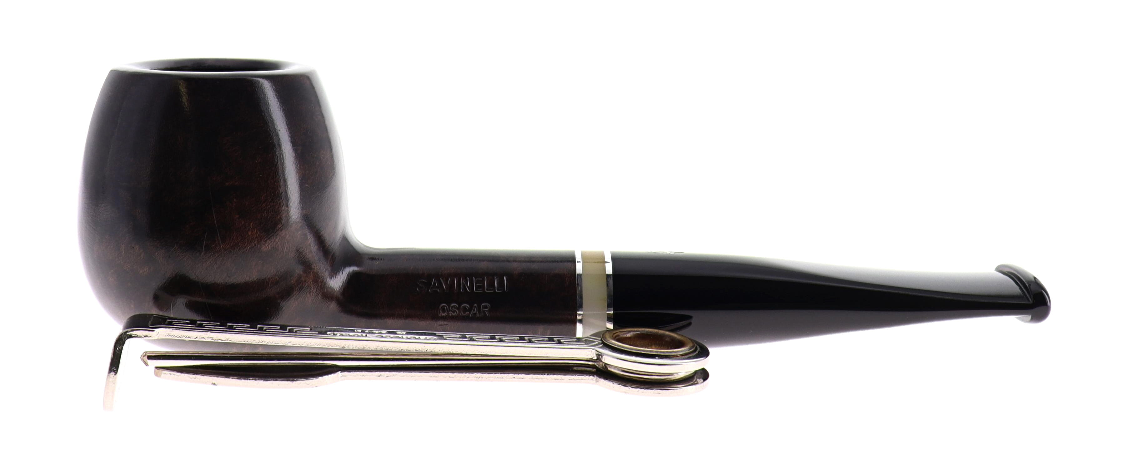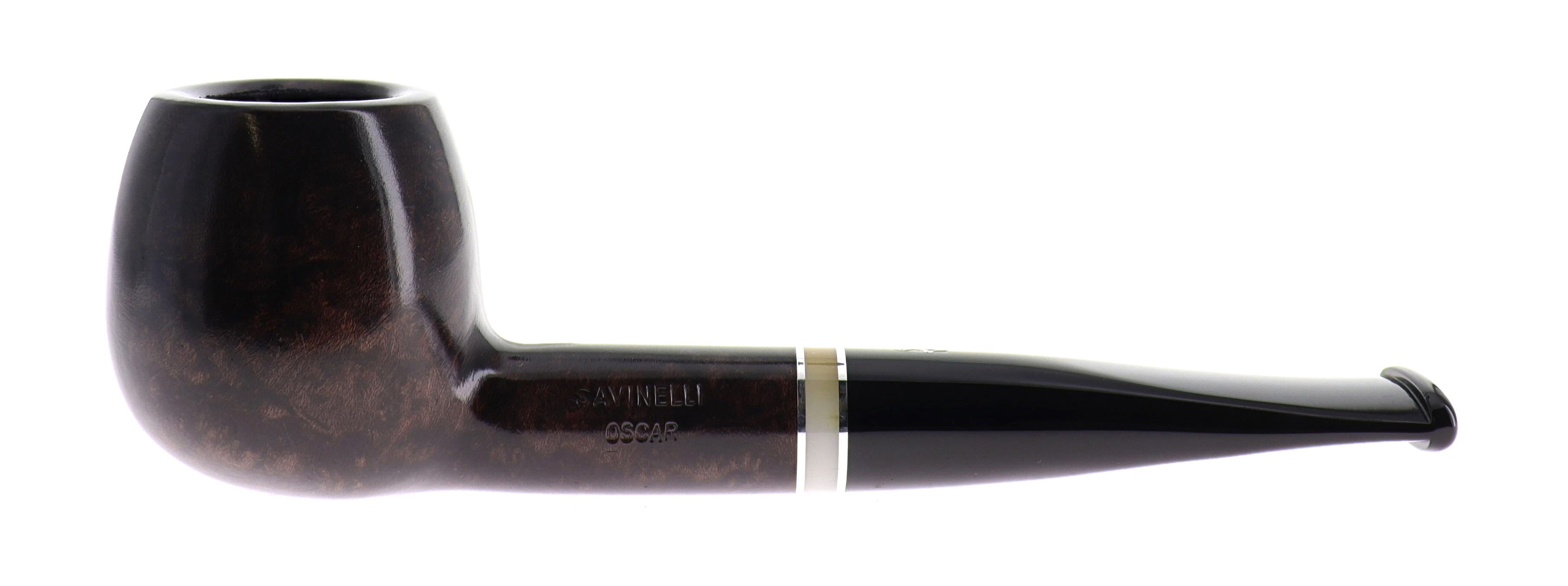 The Oscar is a historic Savinelli series, available in smooth brown and rusticated finishes, embellished with a beige band and a classic black methacrylate mouthpiece.
