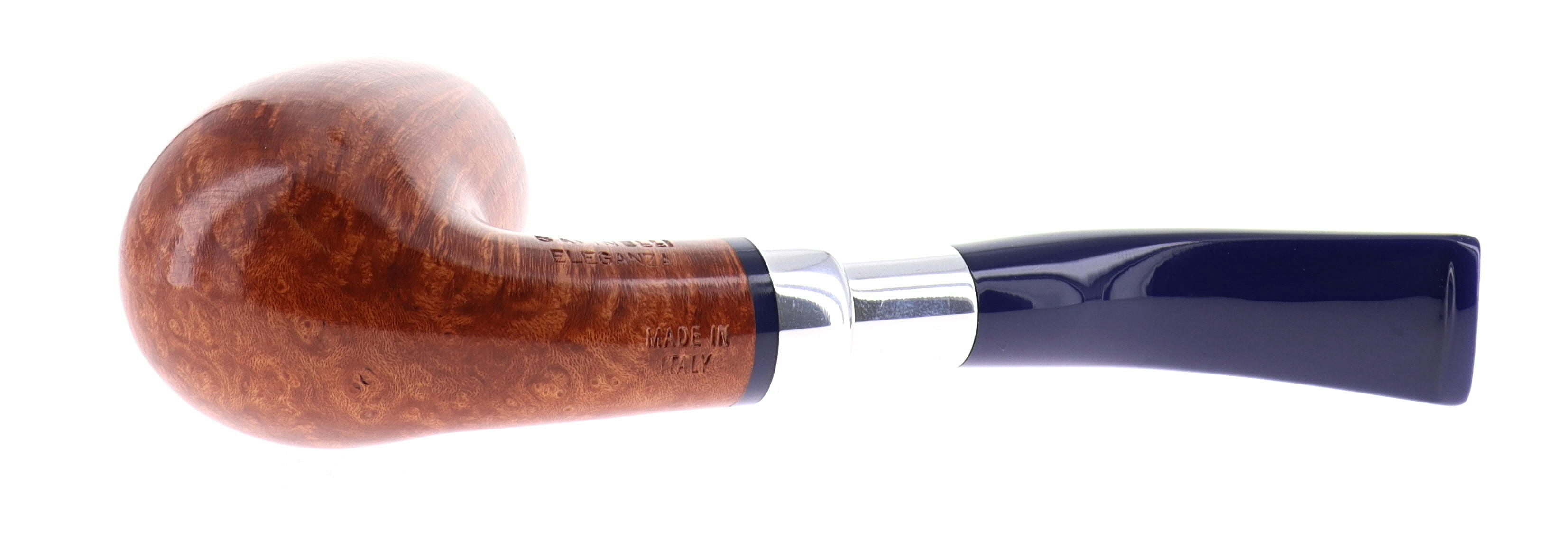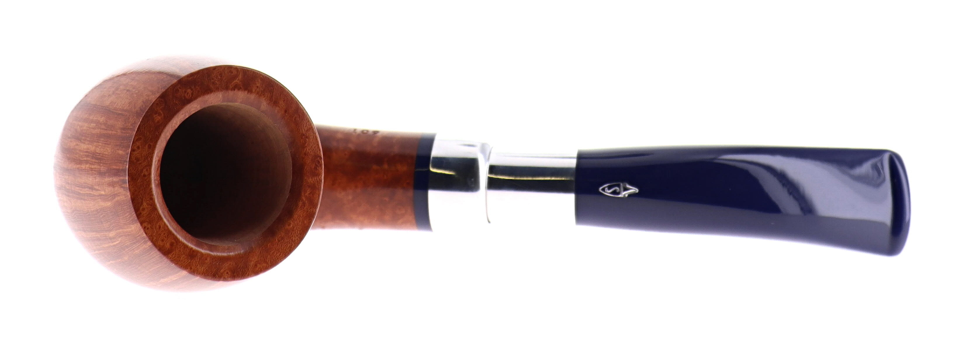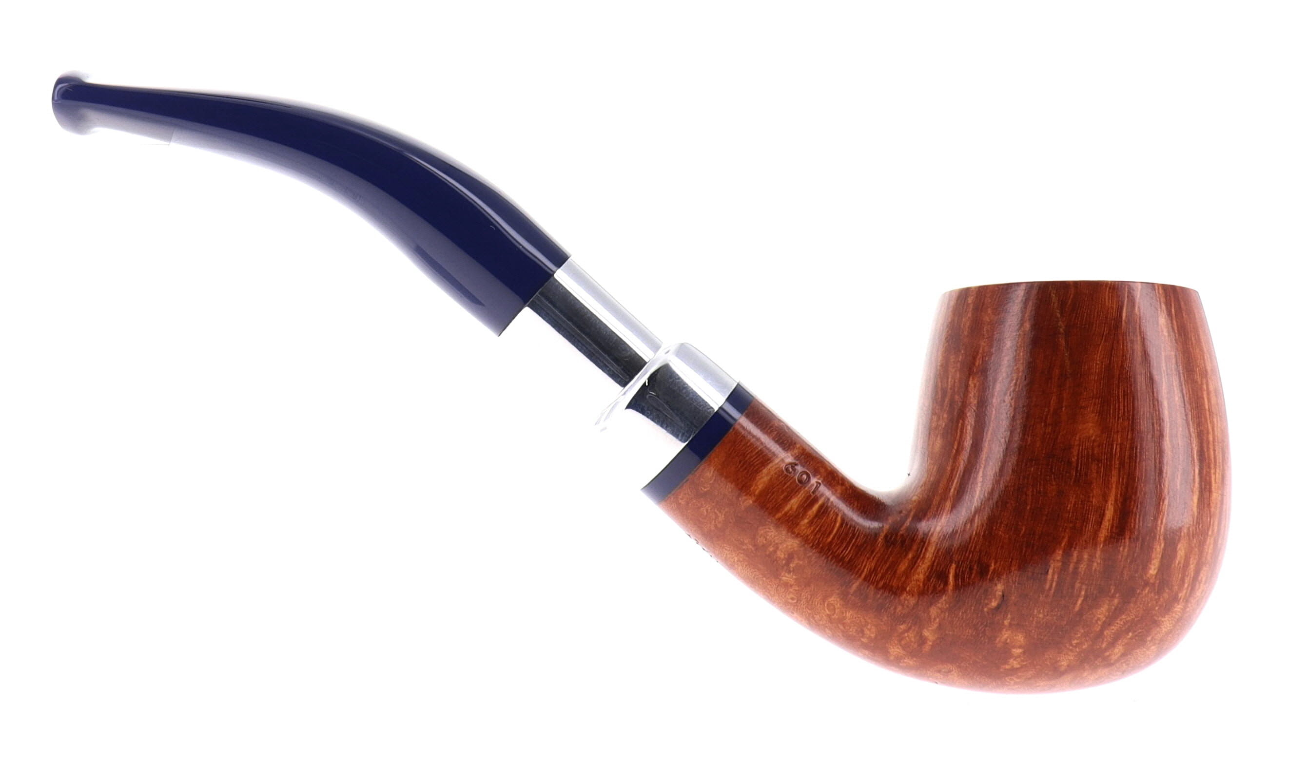 A return to the Spigot with a blue methacrylate mouthpiece, an elegant nod to its historic colors. Smooth natural finish. Model 601, the curved Billiard, is well-proportioned and lightweight.
