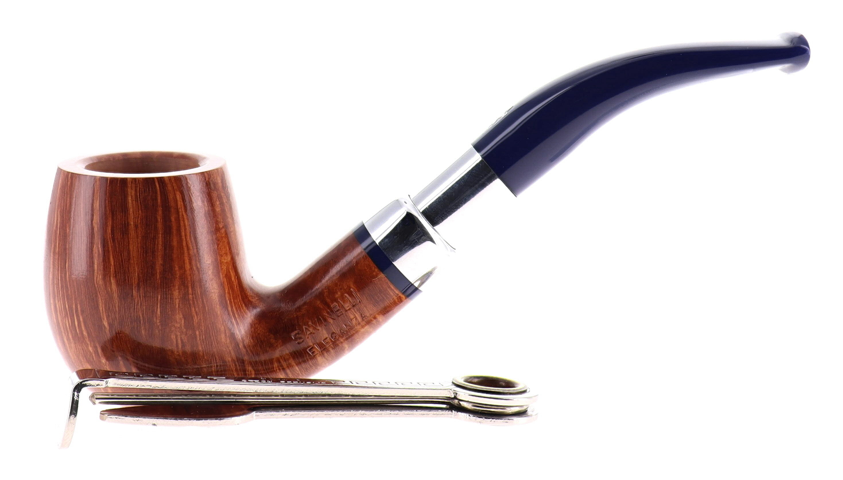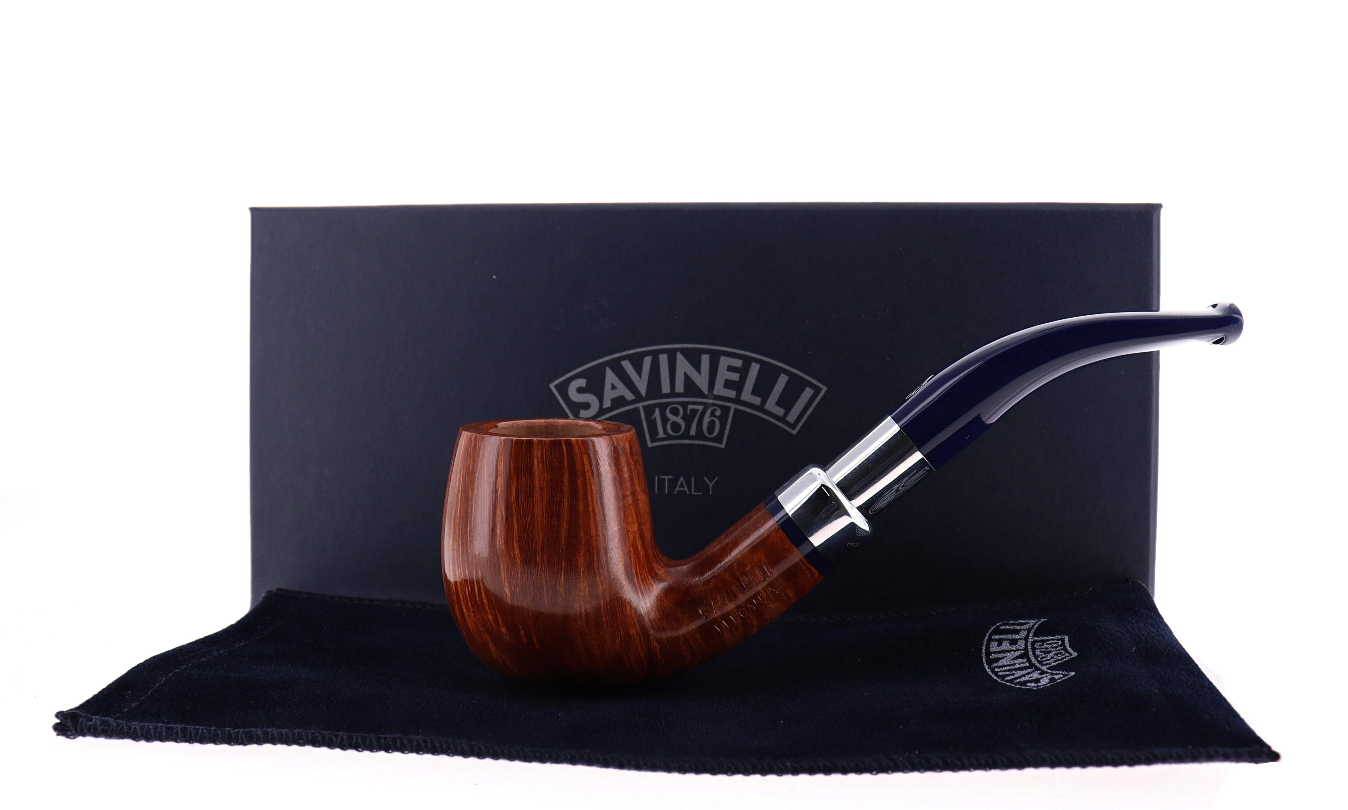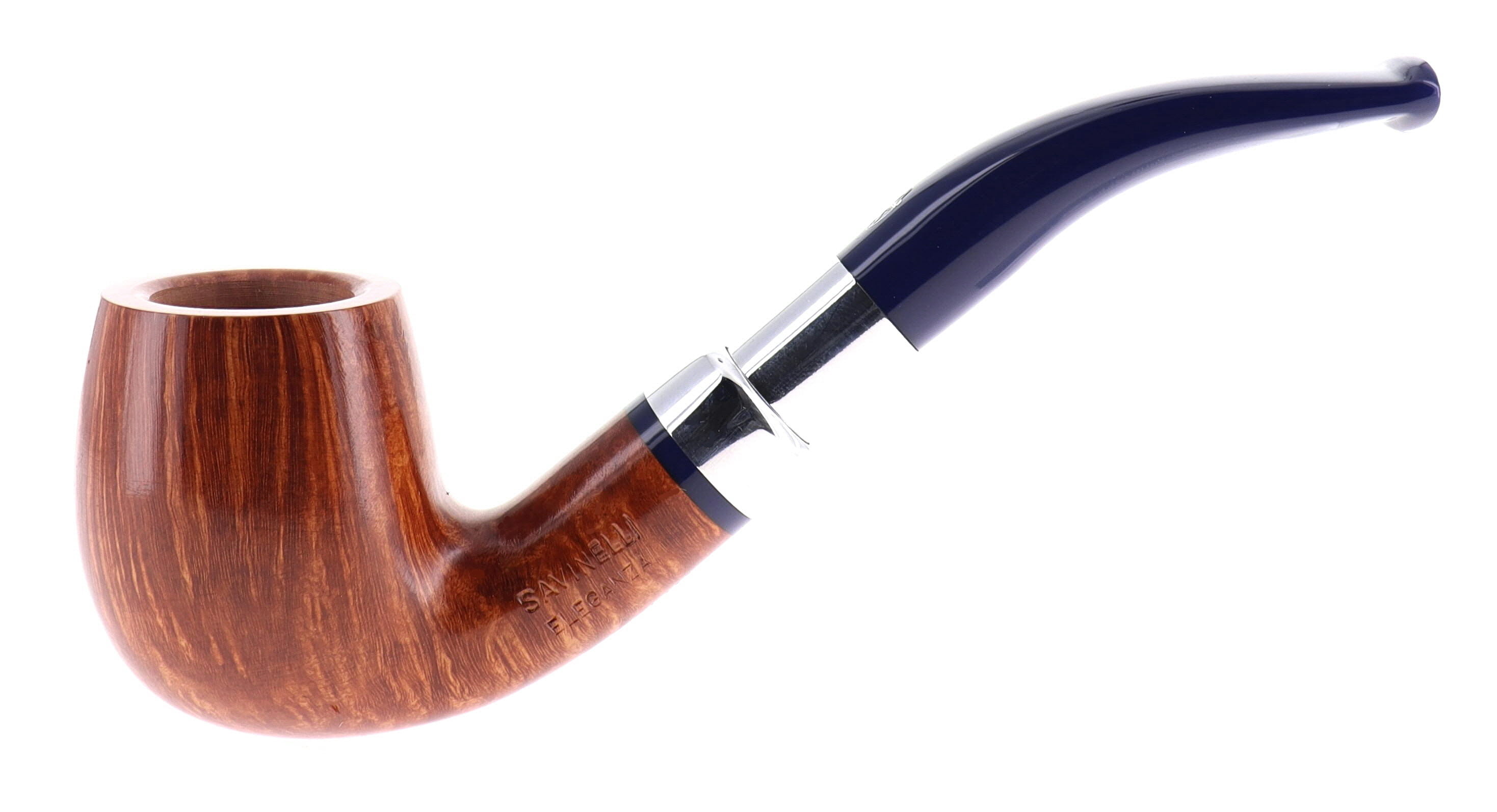 A return to the Spigot with a blue methacrylate mouthpiece, an elegant nod to its historic colors. Smooth natural finish. Model 601, the curved Billiard, is well-proportioned and lightweight.