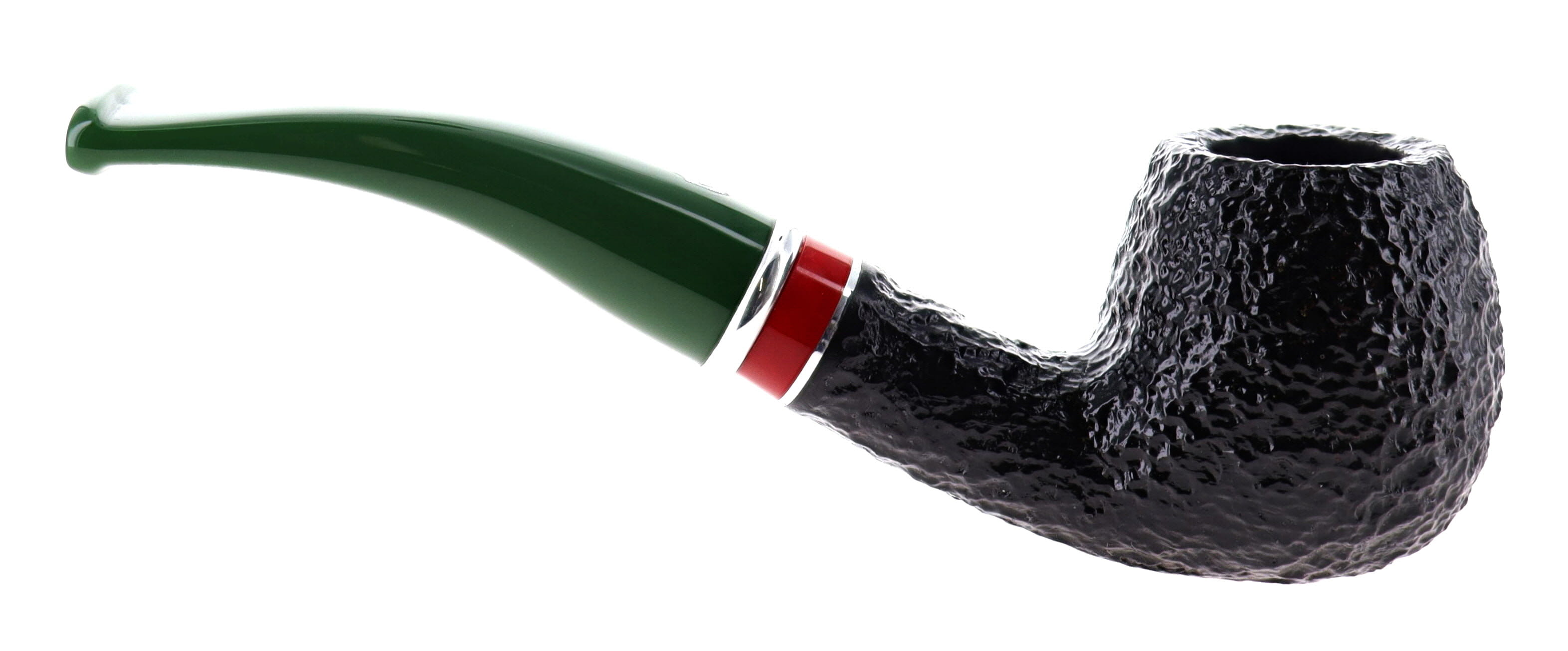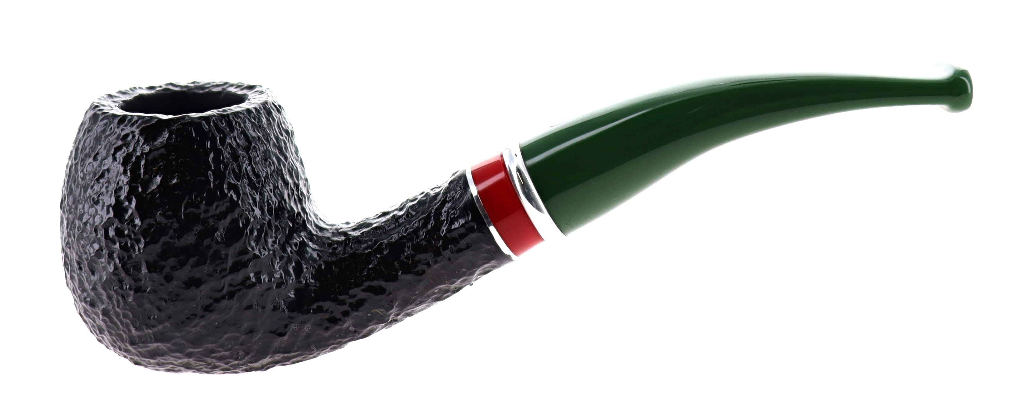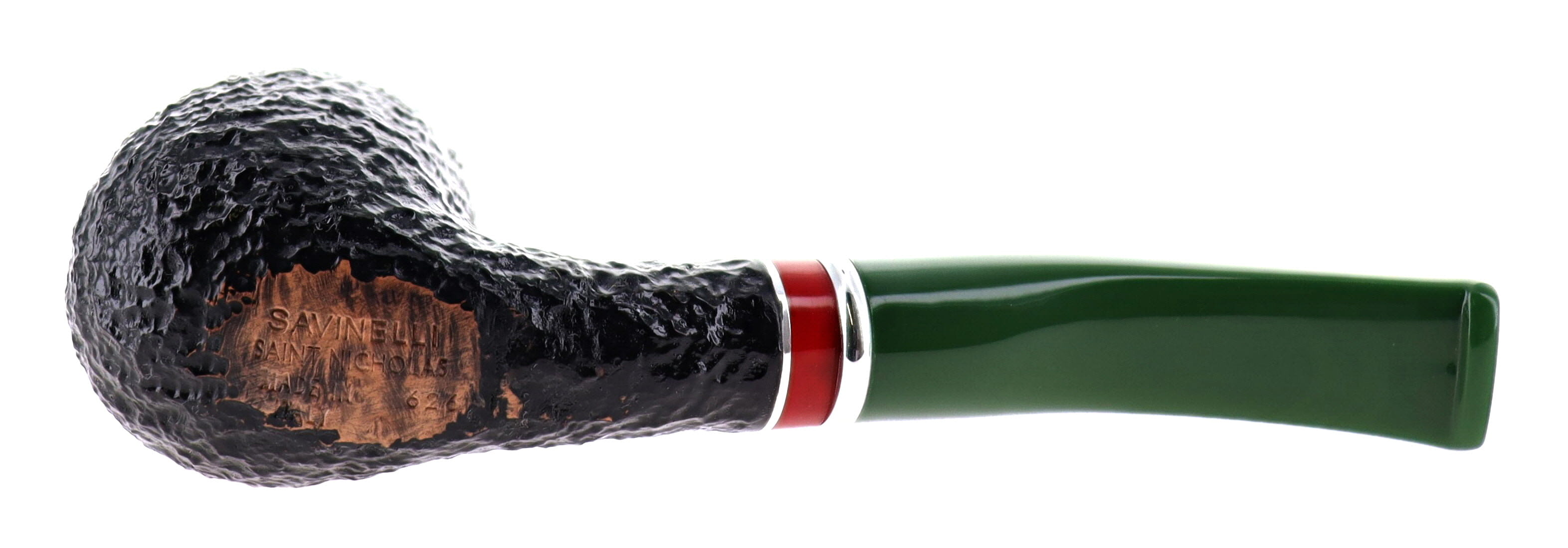 Pipe Savinelli St. Nicholas 2024 626, burgundy rusticated finishing, shape half bent apple, amber coloured methacrylate mouthpiece with two gold-colored rings that enclose a 9mm red methacrylate band. New, never smoked. Limited Edition 2024
