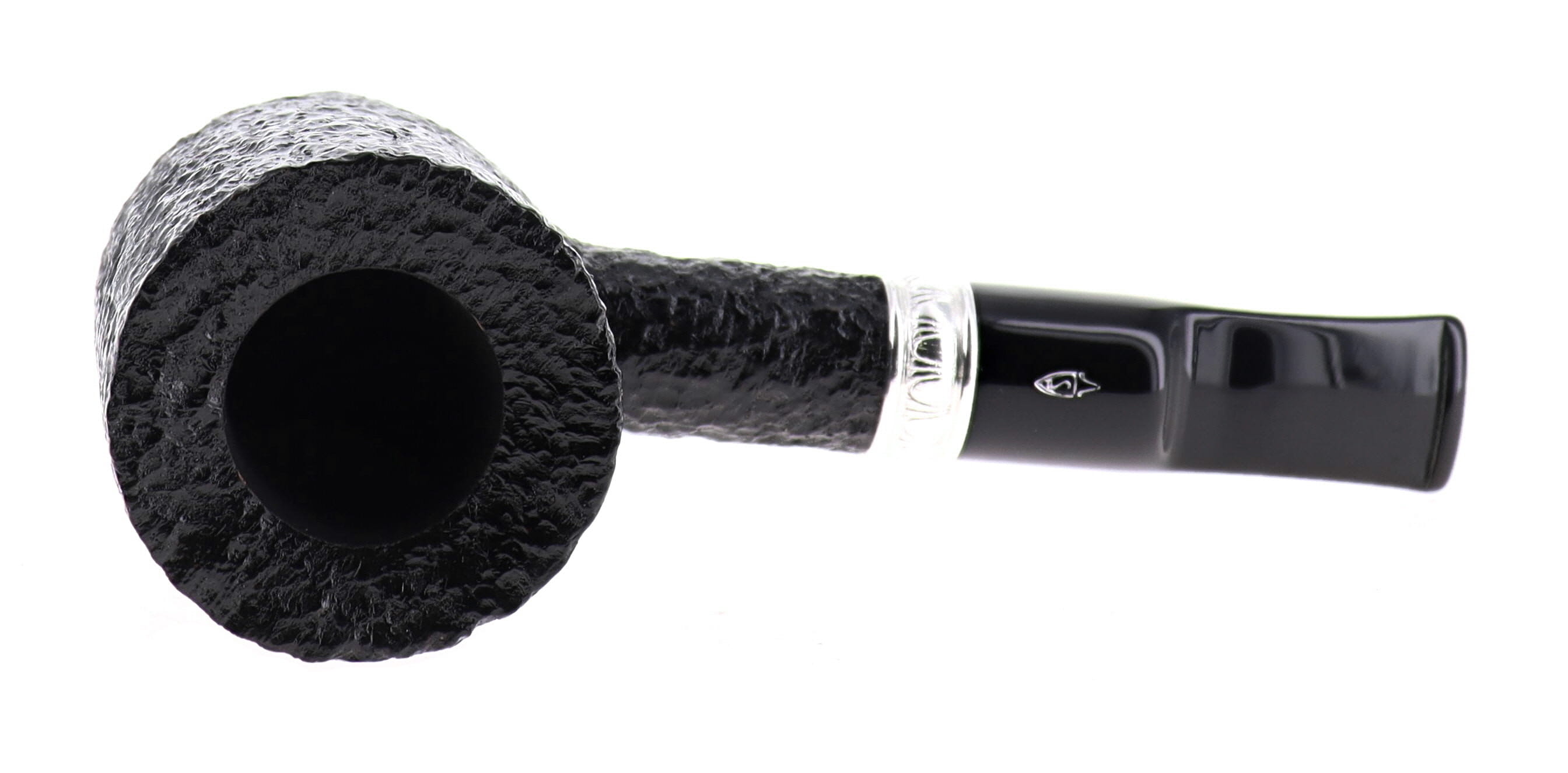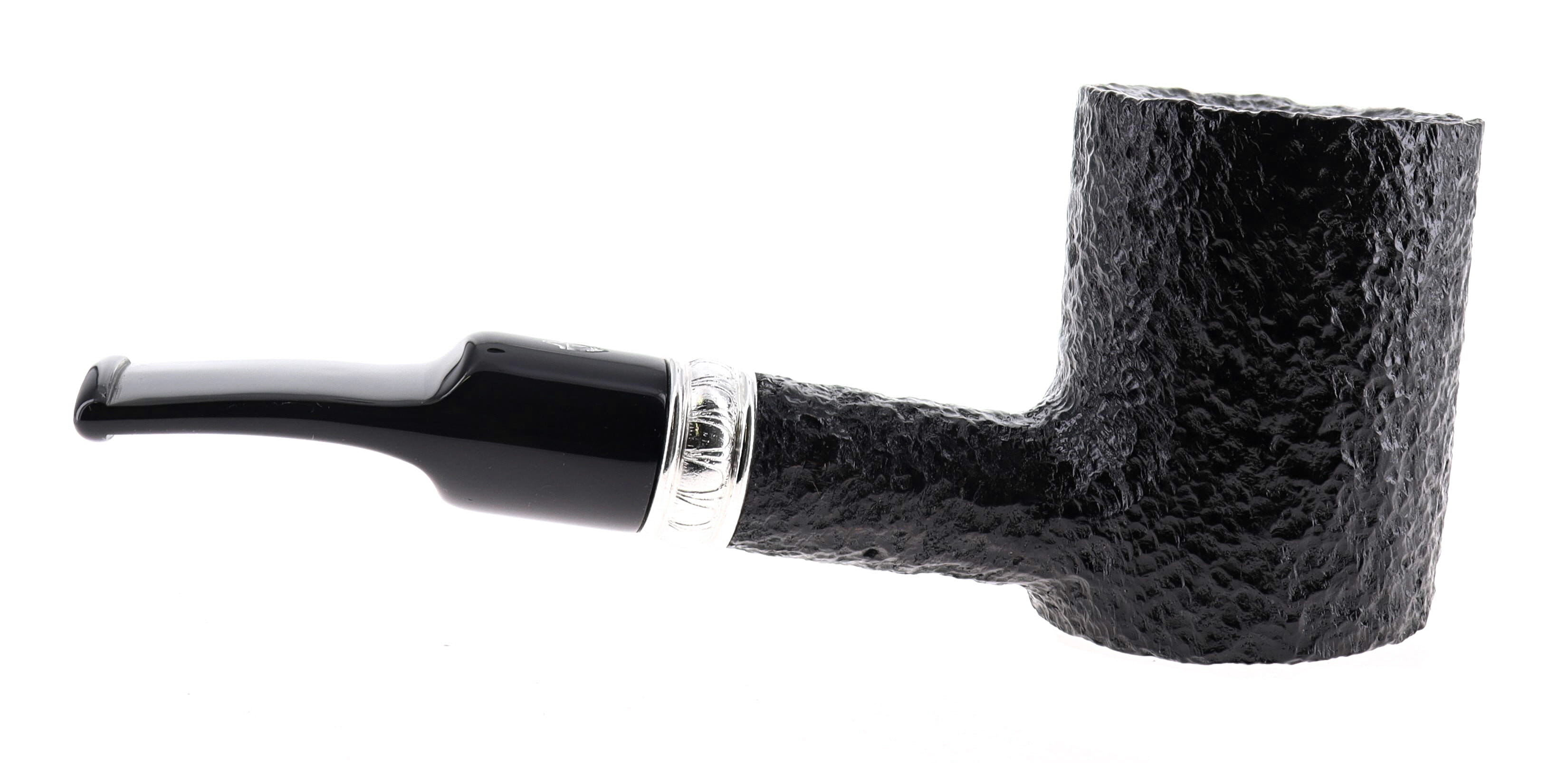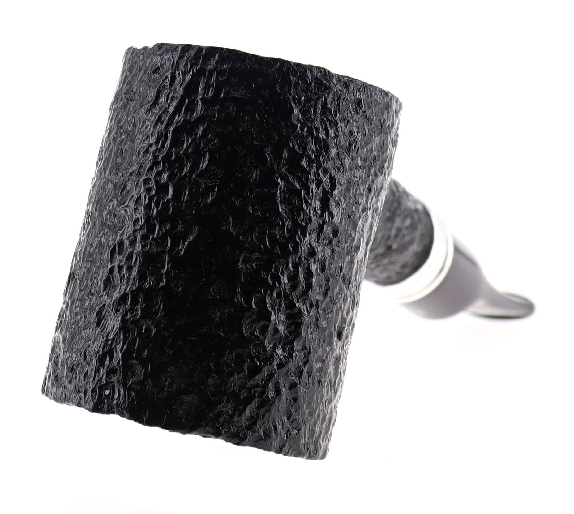 Semi-curved Poker model, black rusticated finish, aluminum inlay band.