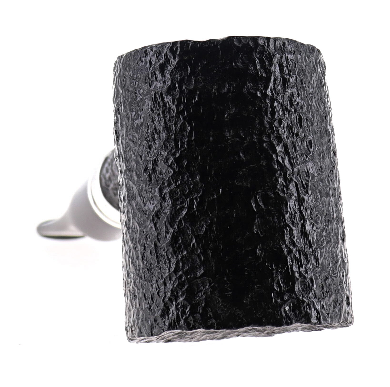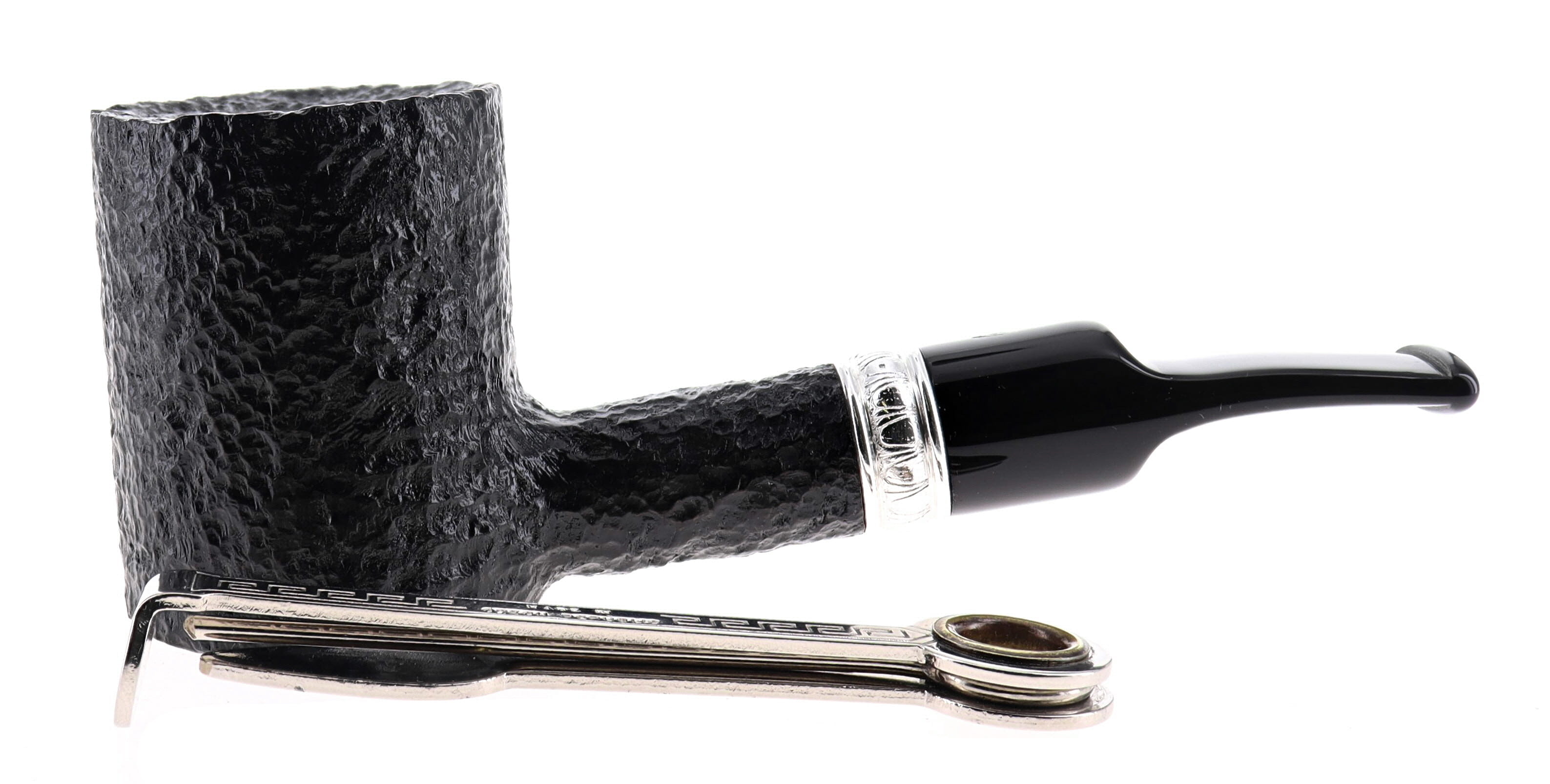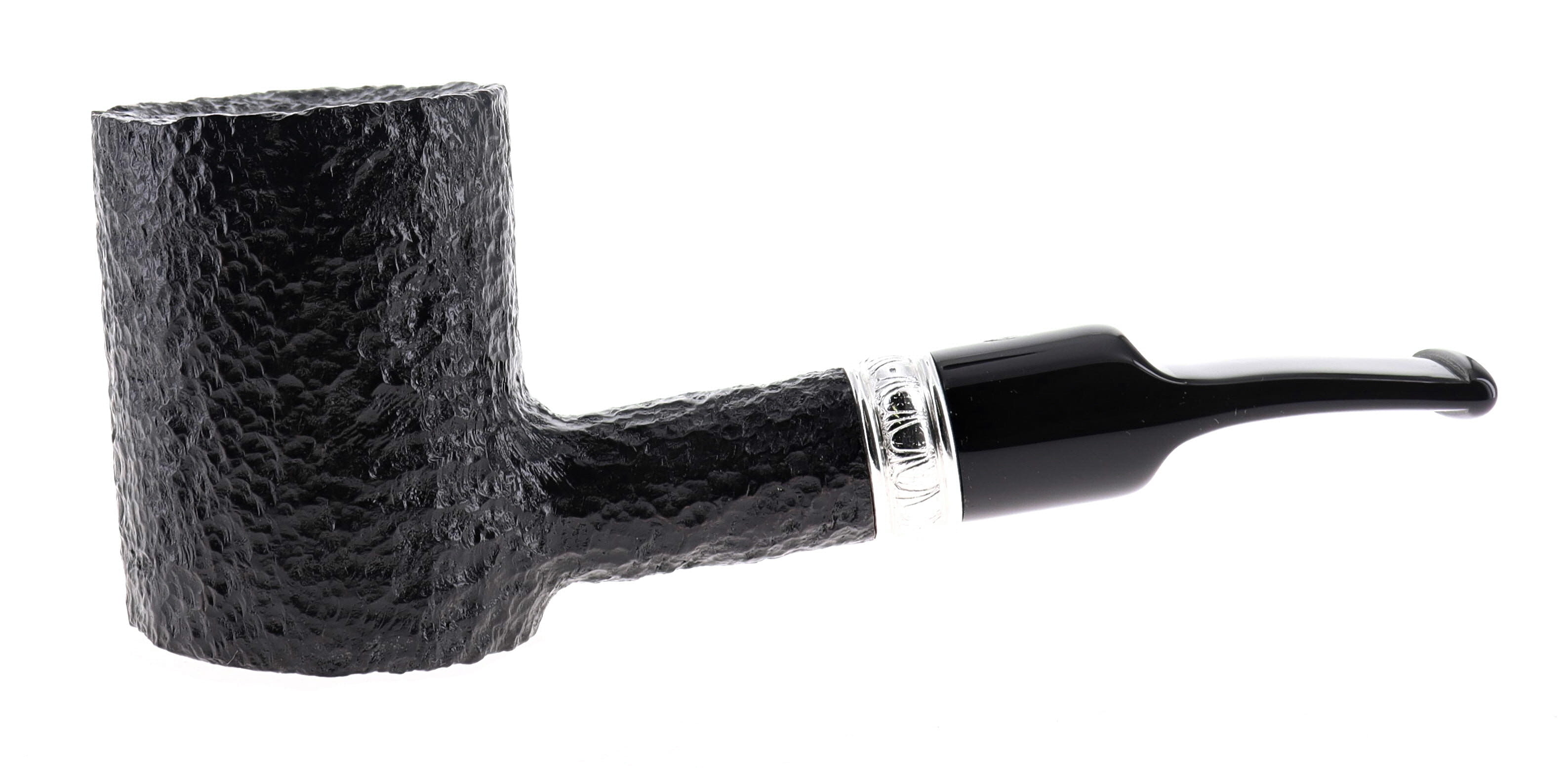 Semi-curved Poker model, black rusticated finish, aluminum inlay band.