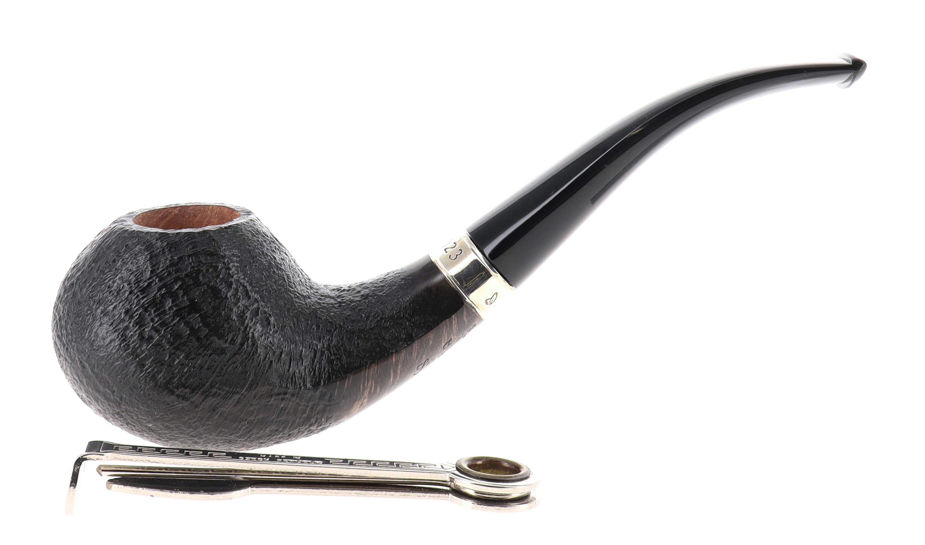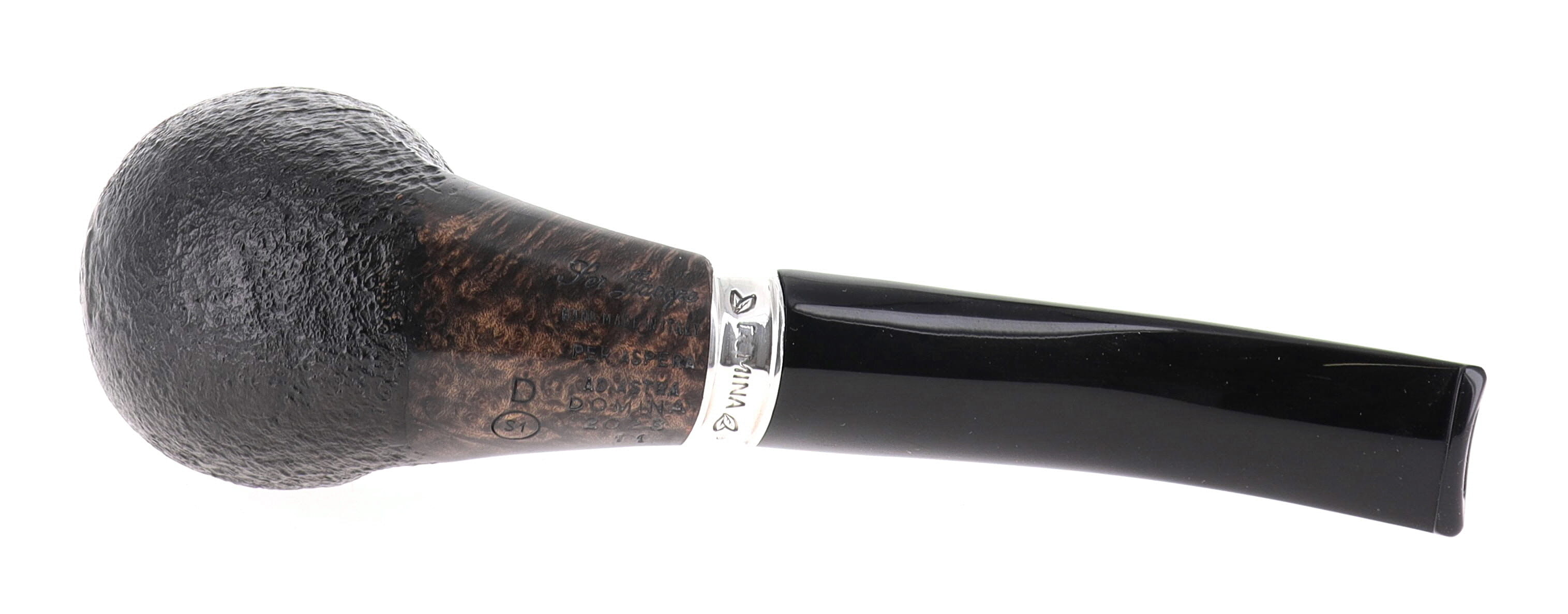 Pipe Ser Jacopo della Gemma 510 DOMINA 2023 S1 D, black sandblasted finishing, shape tomato semicurved, methacrylate mouthpiece 9mm. Limited Numerated Edition N° 11. In Original box with sock. Perfect, new, never smoked. Handmade in Italy.