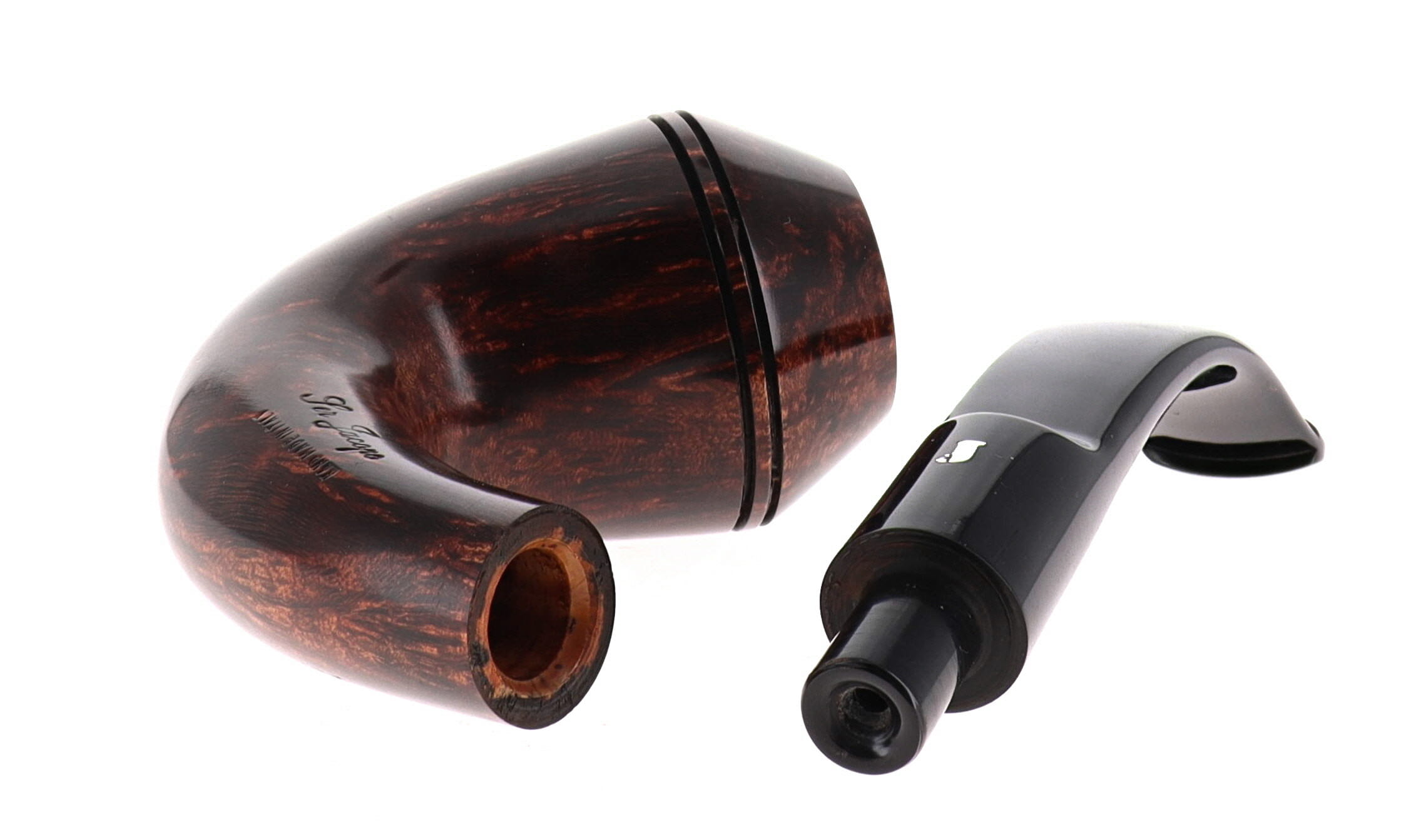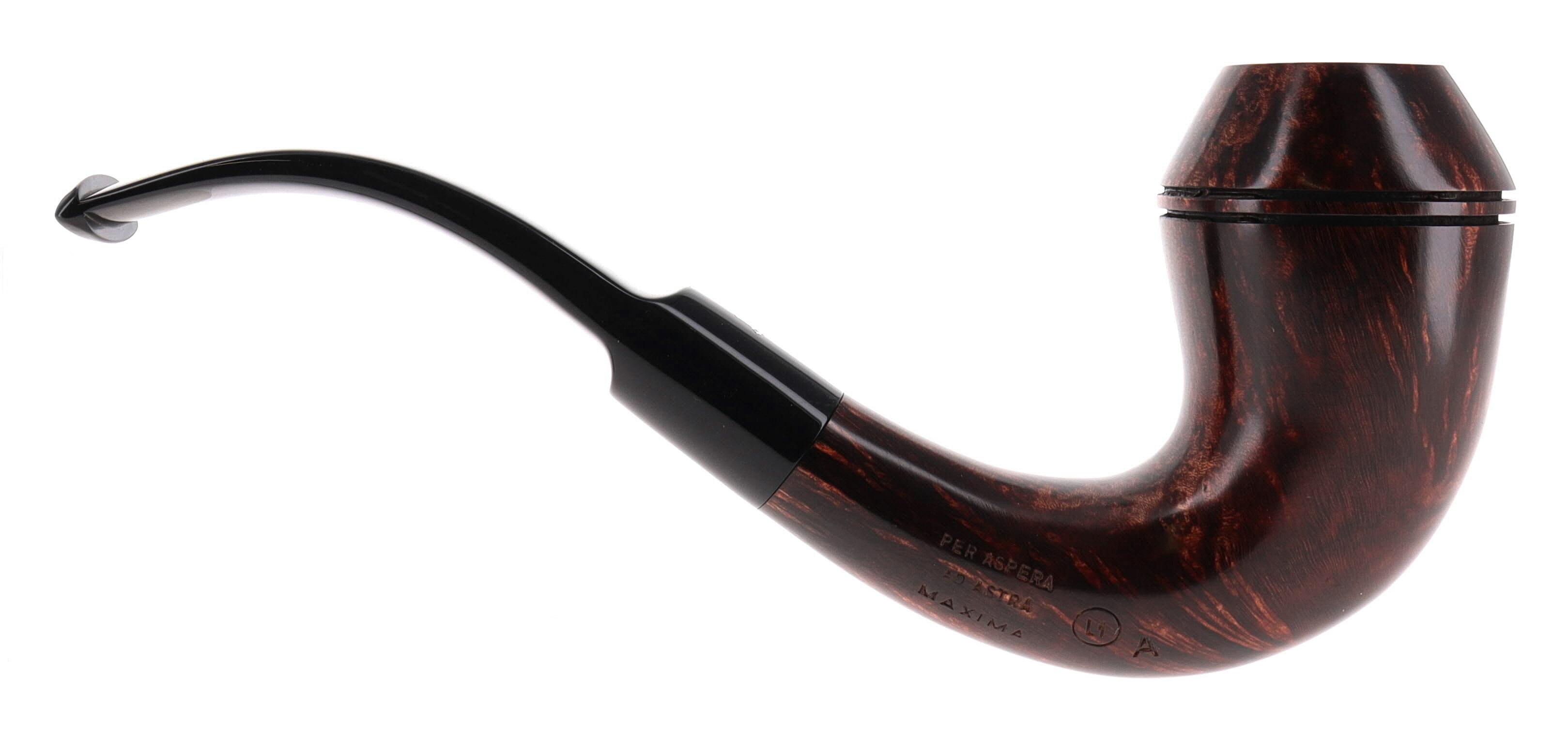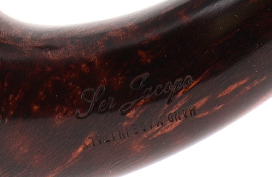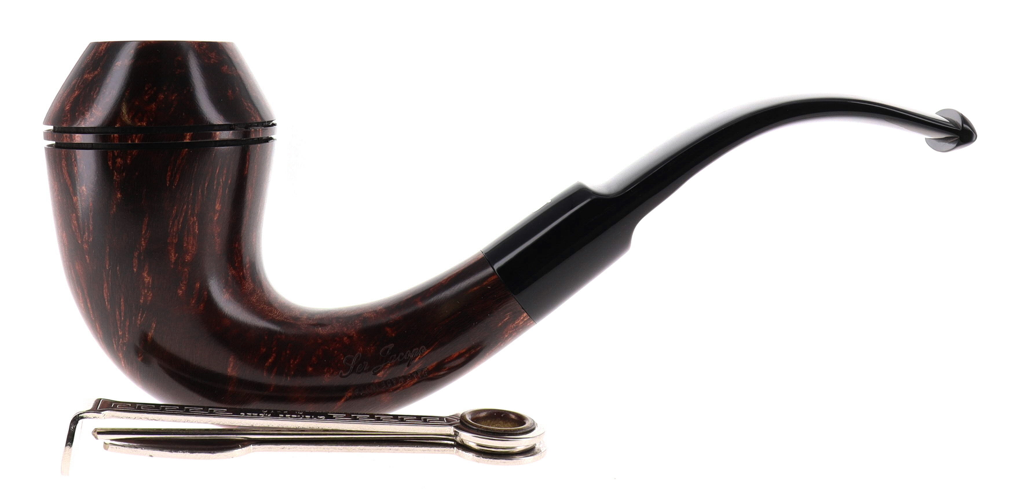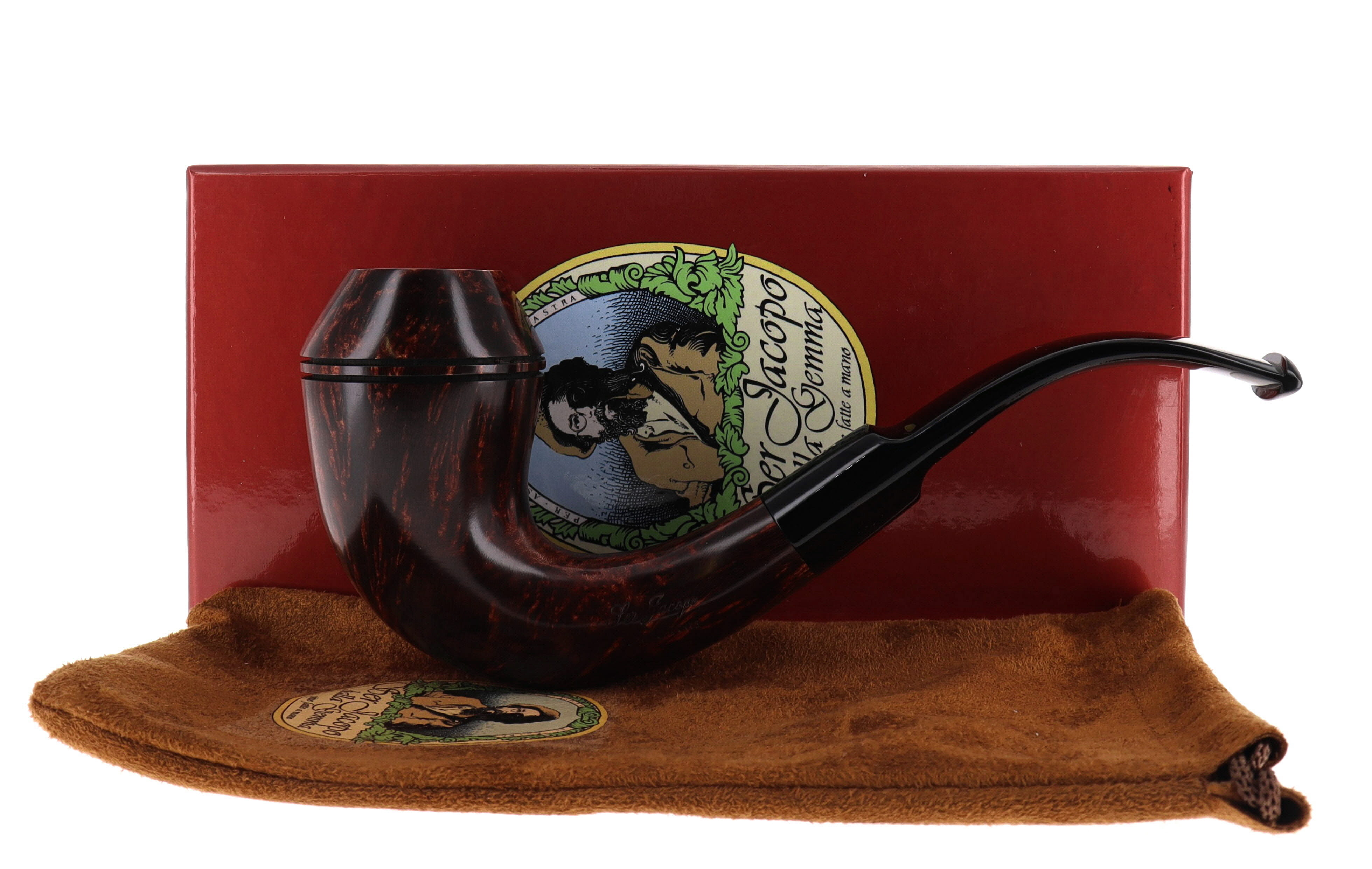 Pipe Ser Jacopo della Gemma 523 L1 A MAXIMA, brown smooth finishing, shape chimney bent bulldog, methacrylate mouthpiece. In Original box with sock. Perfect, new, never smoked. Handmade in Italy.