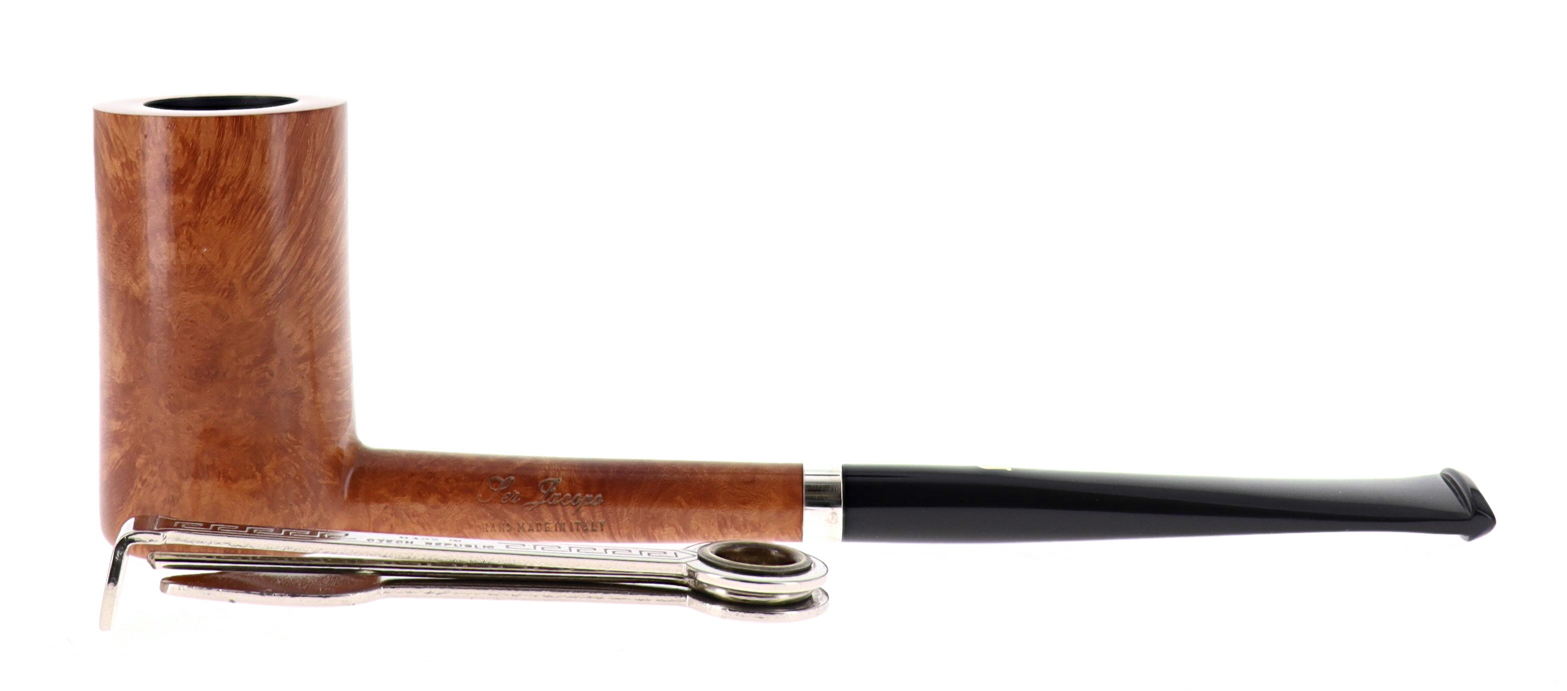Pipe Ser Jacopo della Gemma 537 L2 A, clear smooth finishing, shape stand up pencil poker silver ring, methacrylate mouthpiece. In Original box with sock. Perfect, new, never smoked. Handmade in Italy.