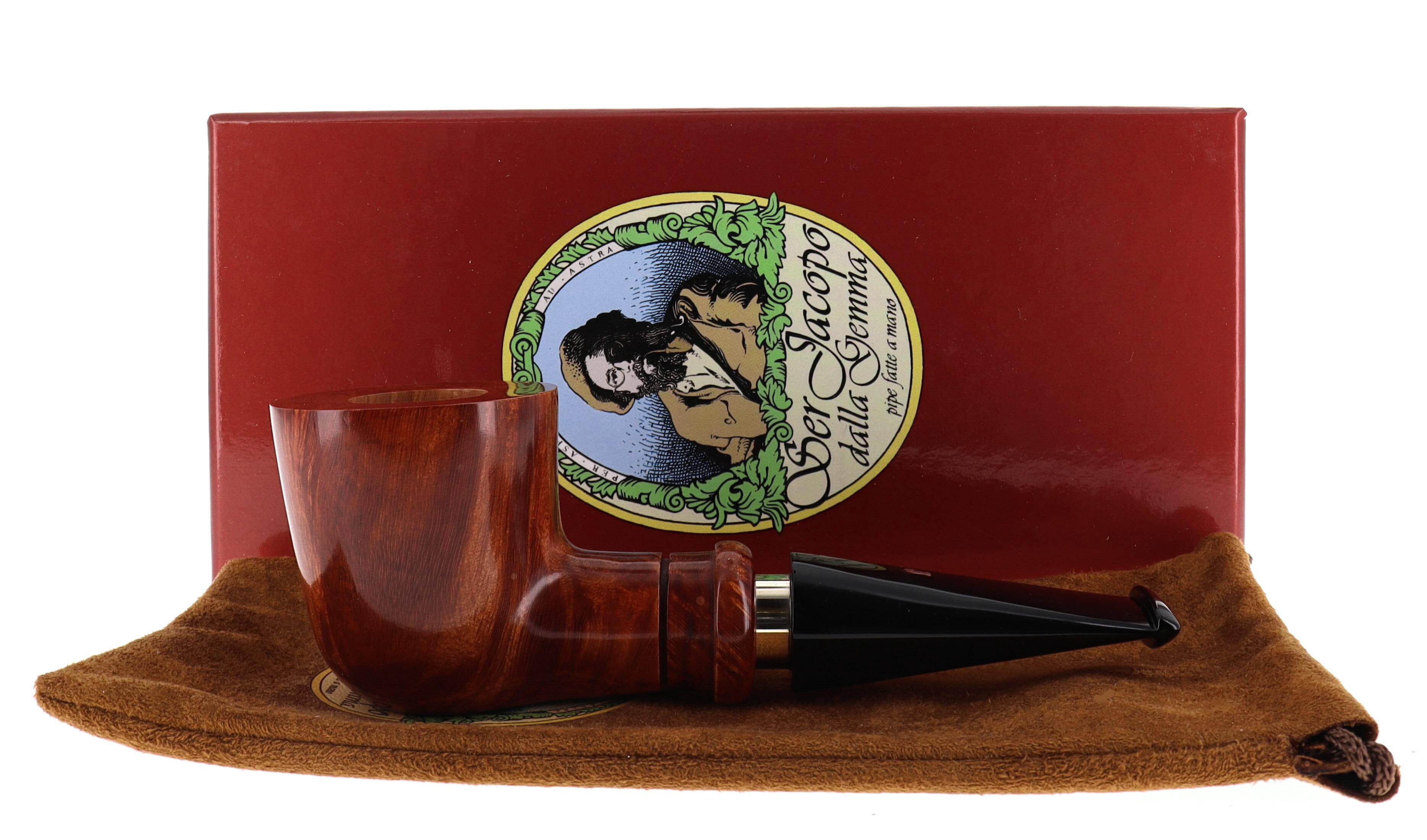 Pipe Ser Jacopo della Gemma 520 DELECTA B,  brown smooth finishing, shape dublin, methacrylate mouthpiece with silver ring. In Original box with sock. Perfect, new, never smoked. Handmade in Italy.