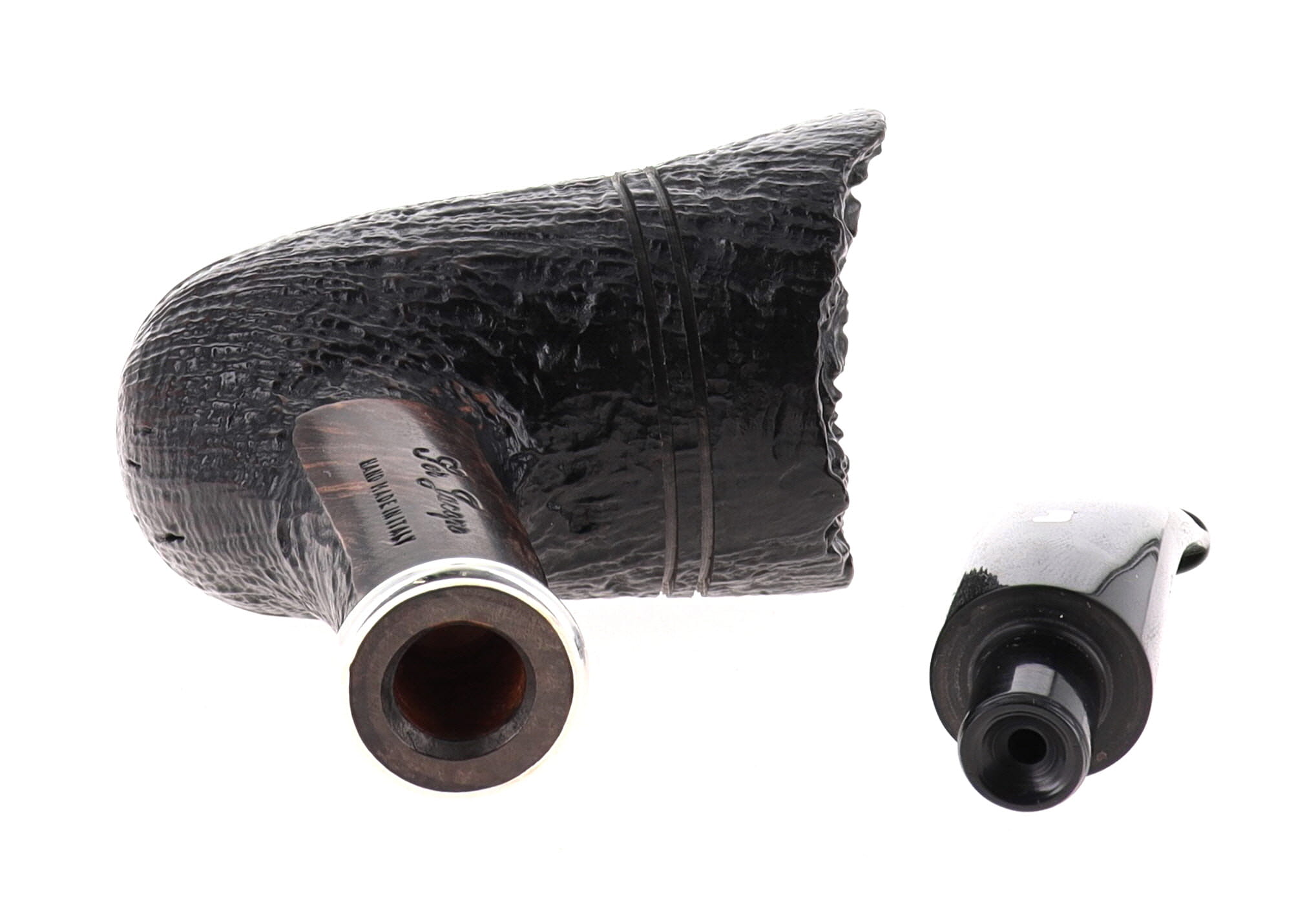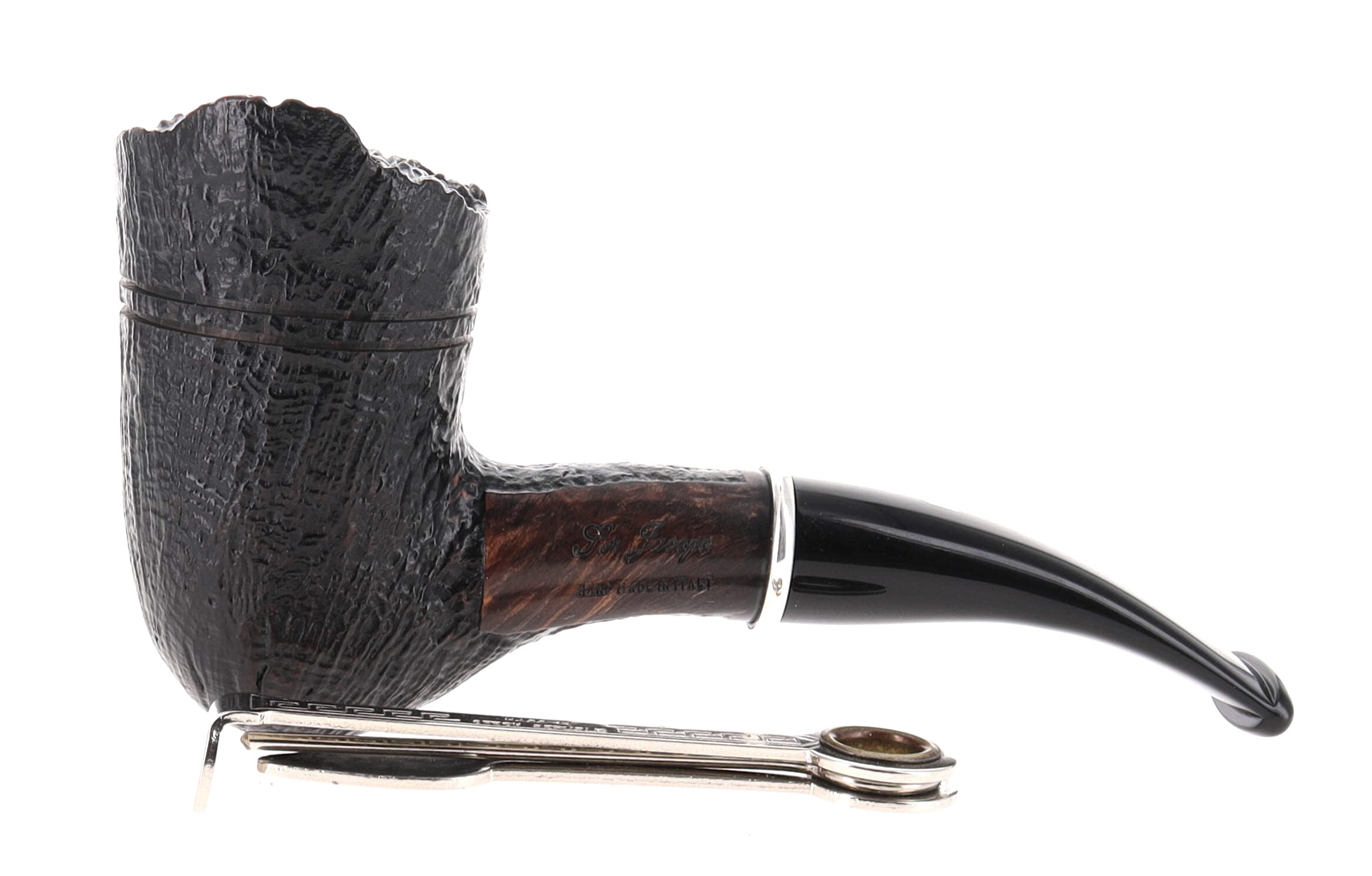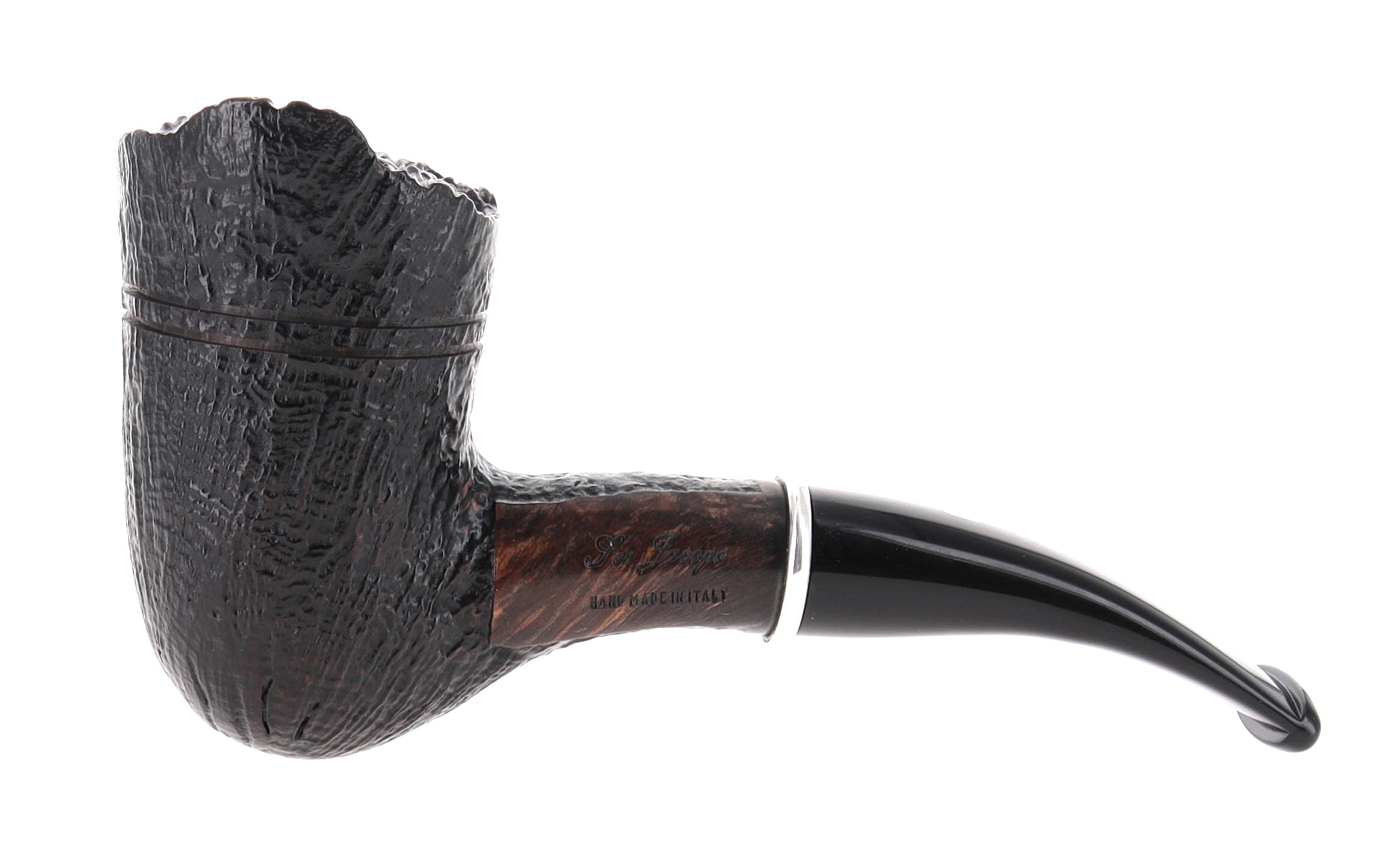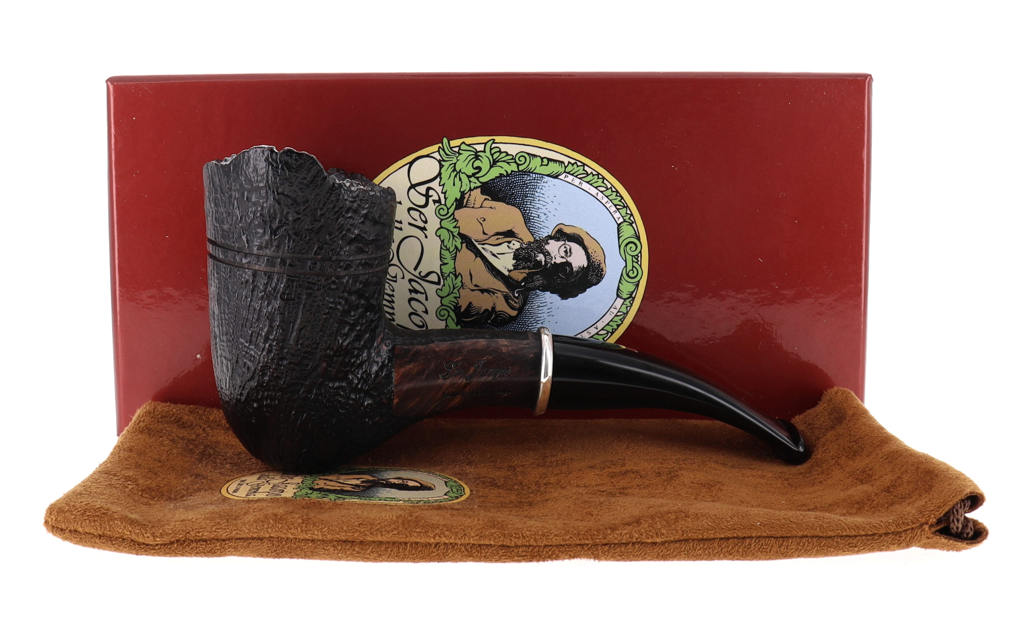 Pipe Ser Jacopo della Gemma 515 S1 C FOEDA 2, dark sandblasted finishing, shape magnum dublin barktop with silver ring, methacrylate mouthpiece. In Original box with sock. Perfect, new, never smoked. Handmade in Italy.