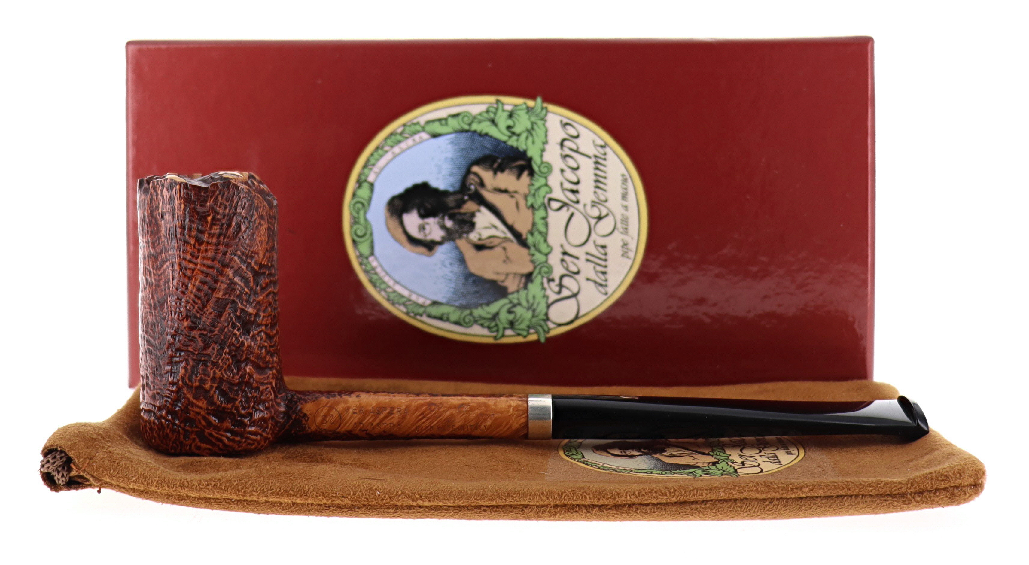Pipe Ser Jacopo della Gemma 540 S2 A,  brown sandblasted finishing, shape stand up pencil poker silver ring, methacrylate mouthpiece. In Original box with sock. Perfect, new, never smoked. Handmade in Italy.