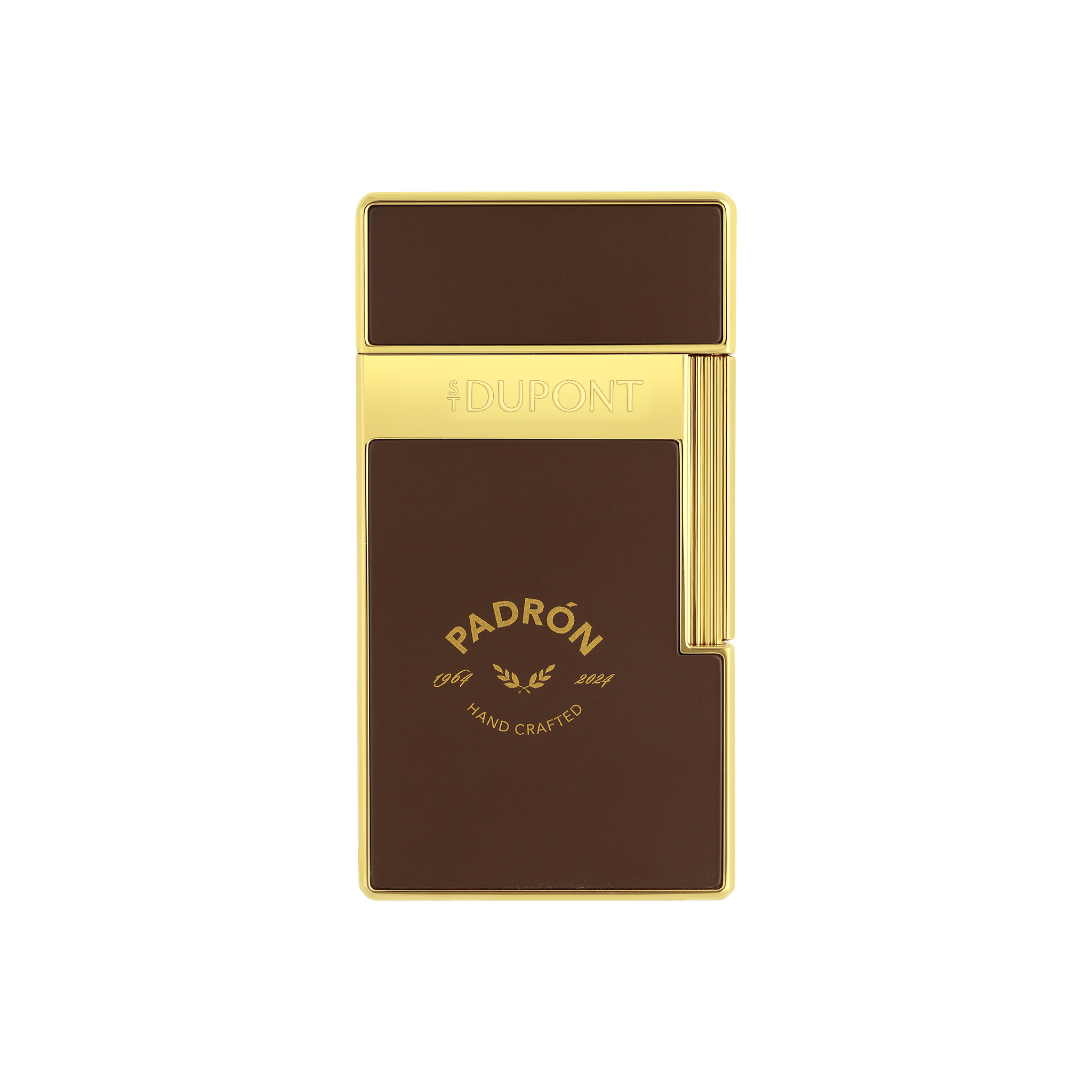 The S.T. Dupont x Padrón Collection presents lighters and cigar accessories with a distinctive character. The yellow gold finishes echo the iconic Padrón cigar band, while the deep brown lacquer evokes the rich hue of the capa leaf — the outer tobacco leaf that envelops a fine cigar.