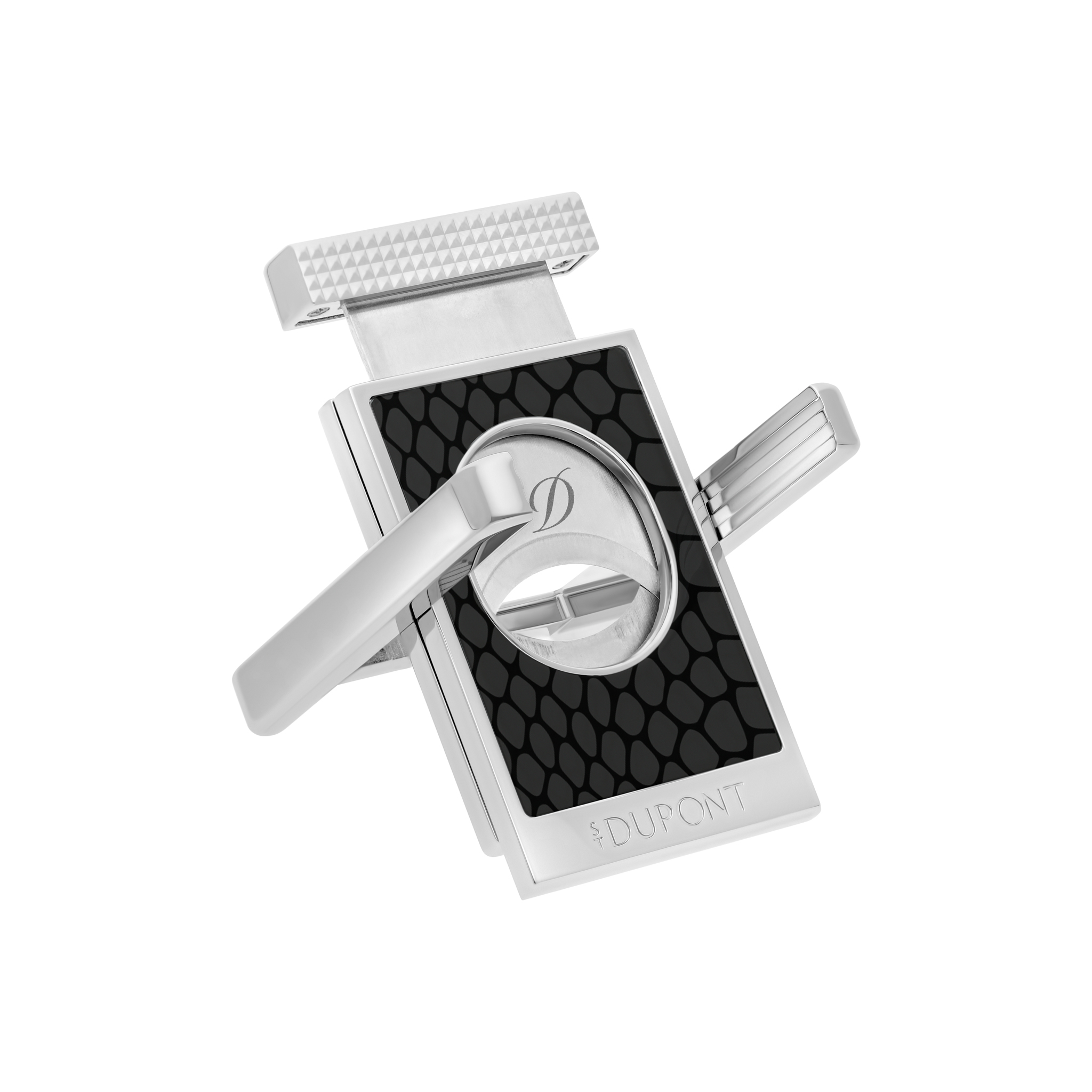 Cigar cutter in metal with black Snake motif and chrome finish.