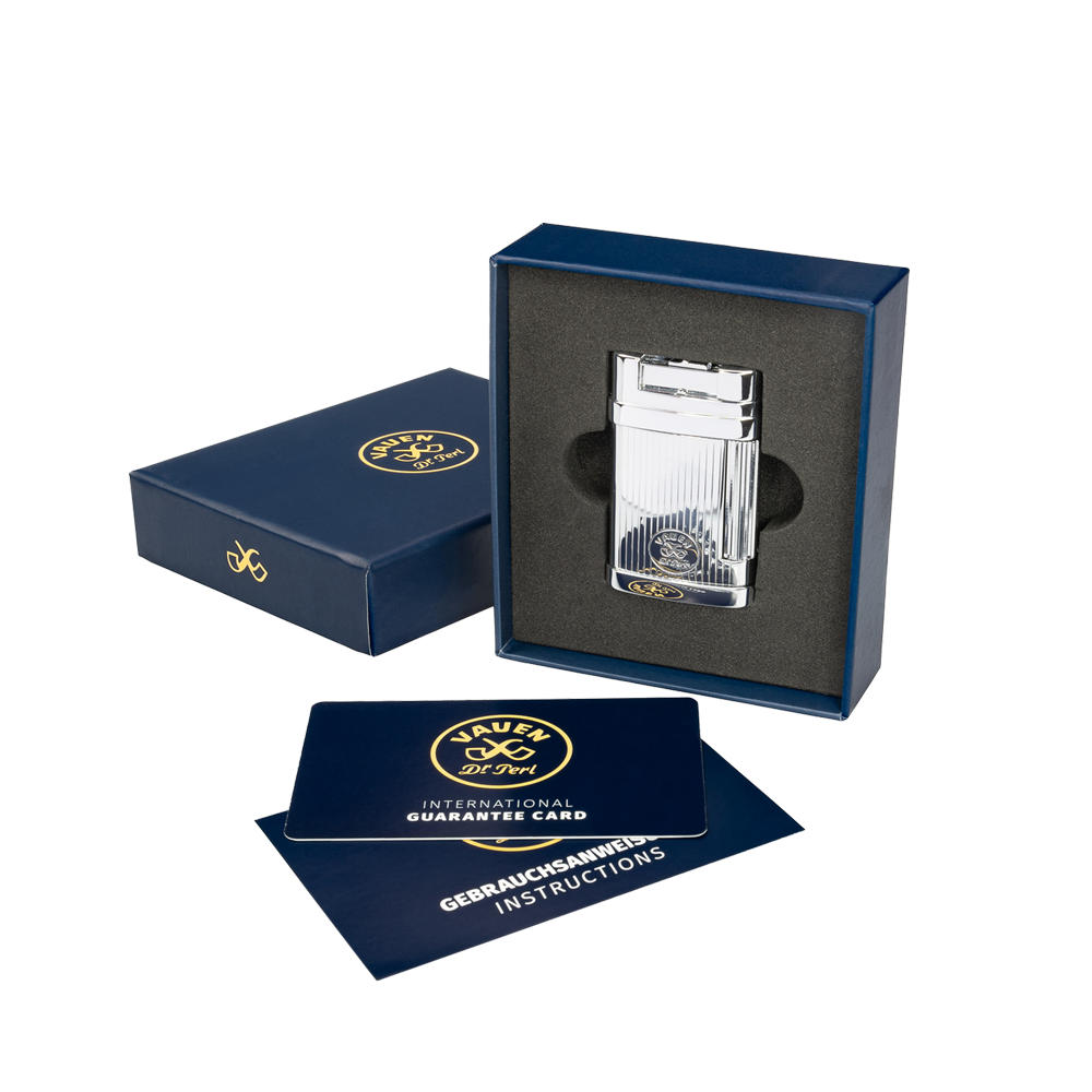 Thanks to its slim design and rounded corners, the new VAUEN lighter sits very well in the hand and, at 69 grams, is a lightweight and loyal companion.