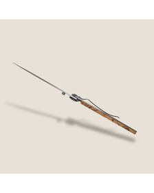 Obtained by fixing gray titanium onto a stainless steel base, this finish has a double advantage. First of all, it reinforces the surface resistance to impacts and scratches, then it enhances the pure lines of your knife, bringing sobriety to its peak. Discreet finish par excellence, the steel acquires a light patina over the years to further enhance this beautiful cutlery.