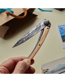 But that's not all: easy to wear, to use, to adopt, Deejo goes beyond the knife by offering the possibility of getting "tattooed": tattooing the knife, as you would mark the skin, is offering this already very personal object. a completely different dimension: his identity.