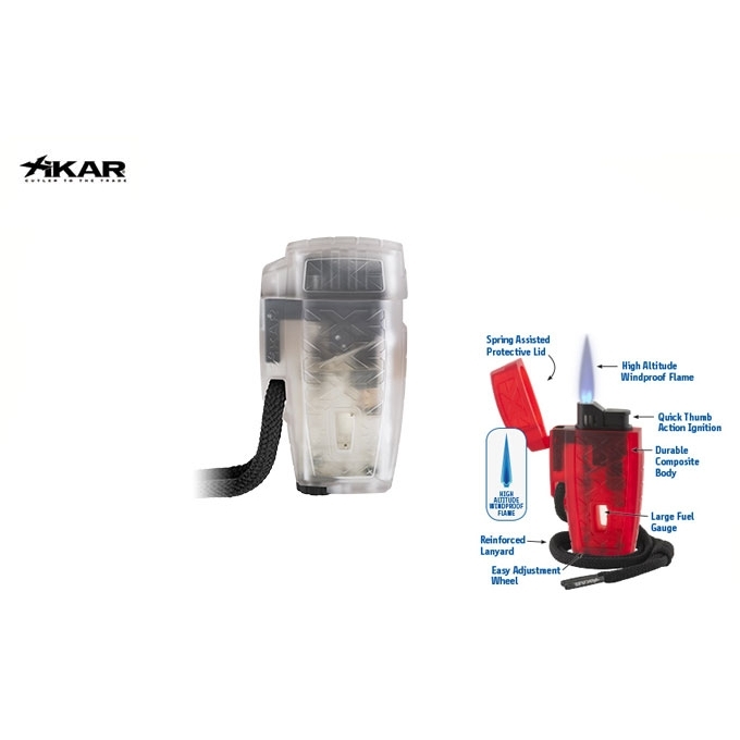 Lighter designed and built for outdoor life. Turbo Jet lighting, which protect from strong wind. Anti-slip and impact-resistant body made with rubber material. Provided with a sturdy cord for attaching to the belt on the wrist or backpack. High quality, lightweight and powerful Turbo Flame. Easily adjustable thanks to the large lower wheel, burner protected by the hood with automatic opening. Transparent window that allows an immediate verification of the gas level. Lighting: Piezoelectric. Refill: Butane GAS. XICAR customized gift box. Measurements: Height 75mm - Width 40mm - Thickness 15mm. Weight: 50g. XICAR warranty: 24 months . Instructions included in the box. (WARNING: LIGHTER SENT DISCHARGED)