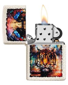 This Zippo-themed lighter uses the 540 Color process to seamlessly print design across all sides of this lighter. Hinges and bottom stamps are laser engraved to allow for peak performance and easy date stamp verification, but otherwise, every single nanometer of the lighter’s surface can be covered by this resilient new process. Comes packaged in a gift box. For optimal performance fill with Zippo lighter fuel