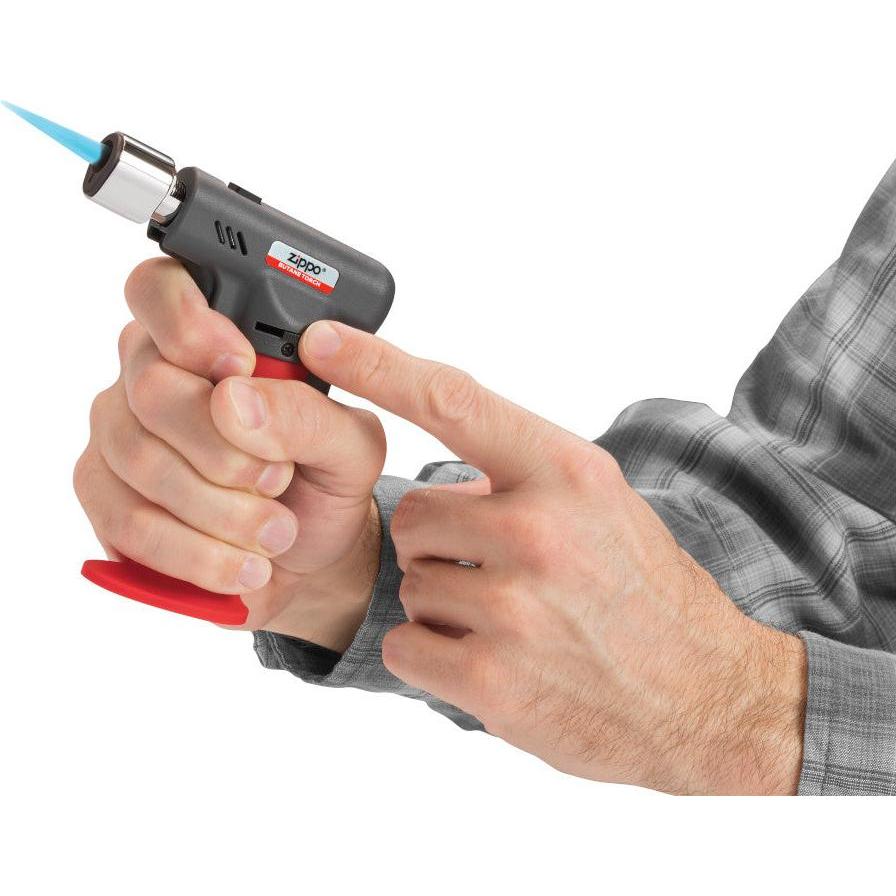 The FireFast® Torch delivers power and performance when you need it most, starting the fire. This durable torch with patented ignition lights with ease and burns strong with an adjustable soft yellow or blue flame torch. Perfect for fire starting, soldering, heating, melting and thawing. For optimum performance, fill with Zippo butane fuel.
