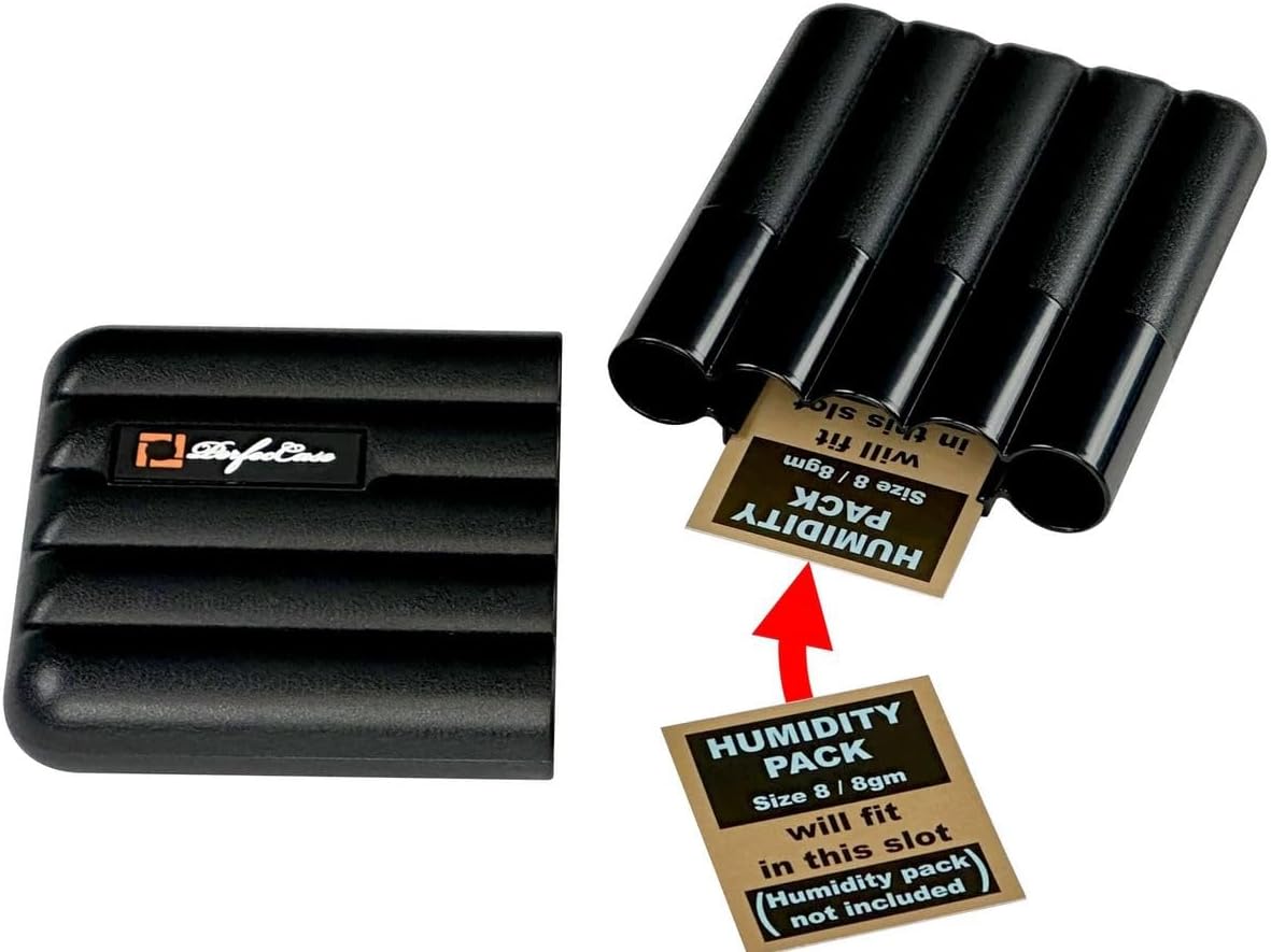 Temi che i tuoi sigari si secchino nel tuo astuccio? Hai difficoltà a infilare i tuoi sigari più grandi nella custodia? Il PerfecCase è praticamente ermetico, non assorbe l'umidità dai tuoi sigari come fanno i portasigari in pelle e legno, e ha uno slot per contenere la tua bustina di umidità preferita da 8 g per mantenere i tuoi sigari al livello di umidità desiderato. Inoltre, il PerfecCase può contenere facilmente sigari fino a un calibro 61 e lunghi fino a 20 cm, come Churchill, Lanceros e persino Double Corona.