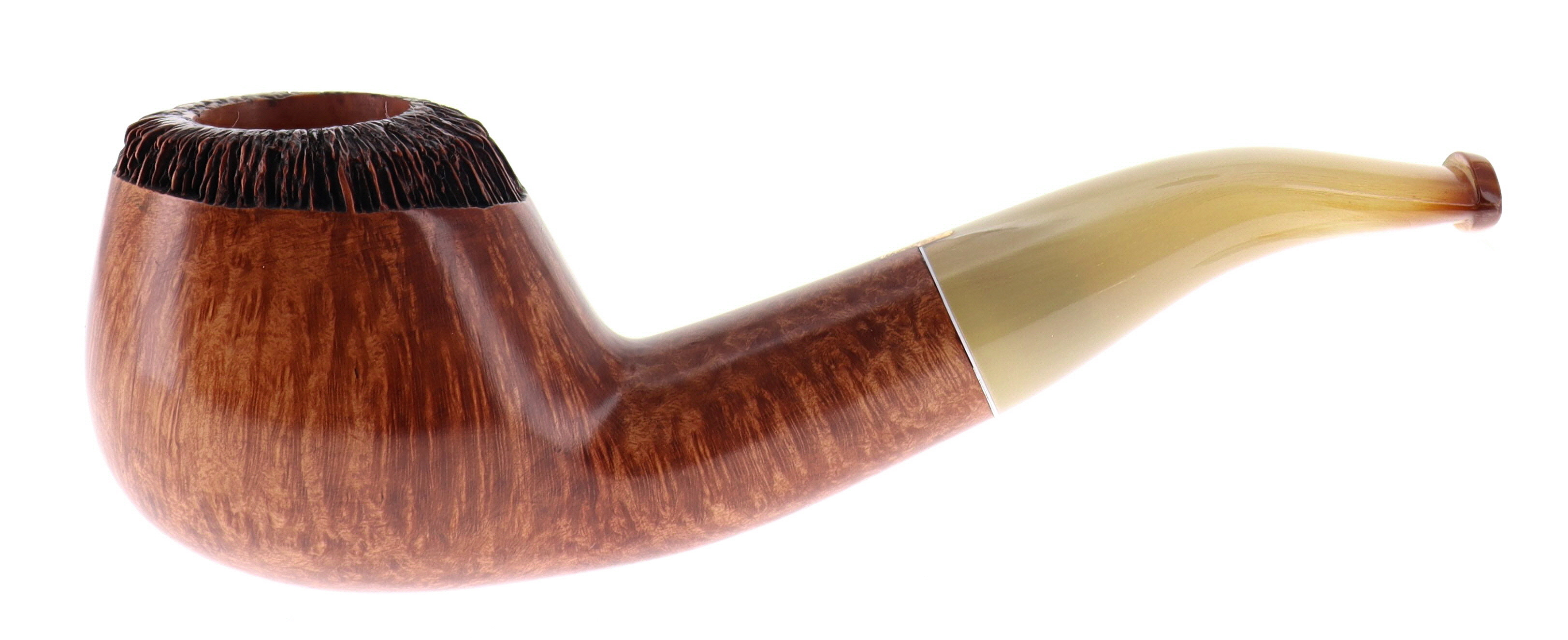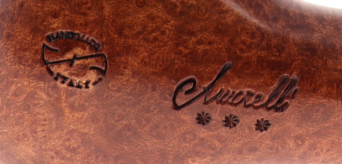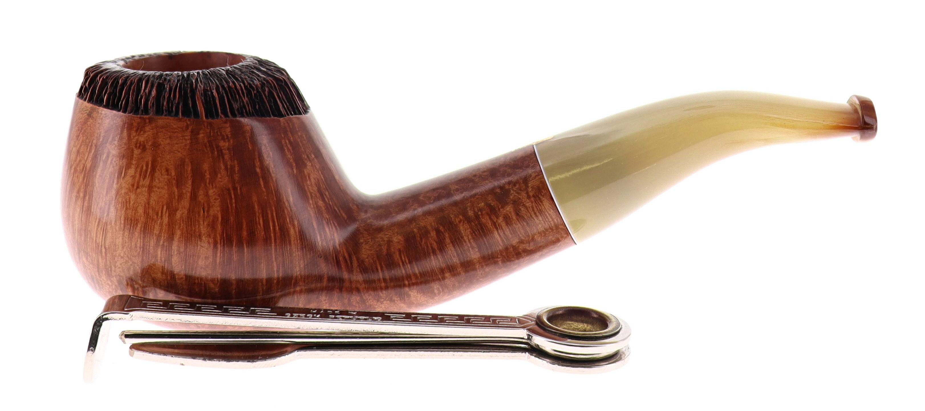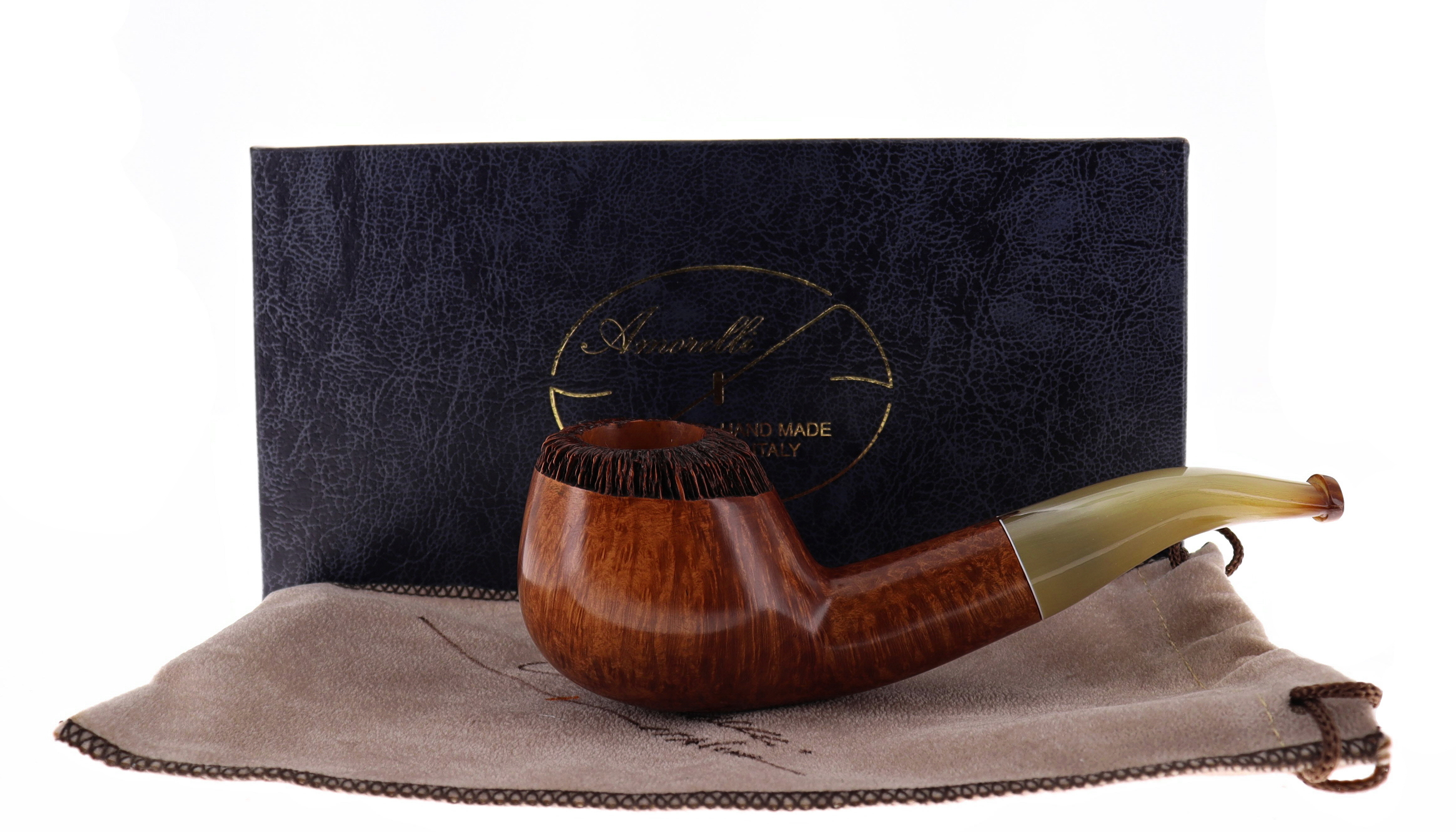 Pipa Amorelli 274 *** 2 STELLE PARZIALMENTE PENNA DI SAN MICHELE, finissaggio dedicato, shape brandy semicurva, bocchino in corno. Nuova, mai fumata. In scatola originale.