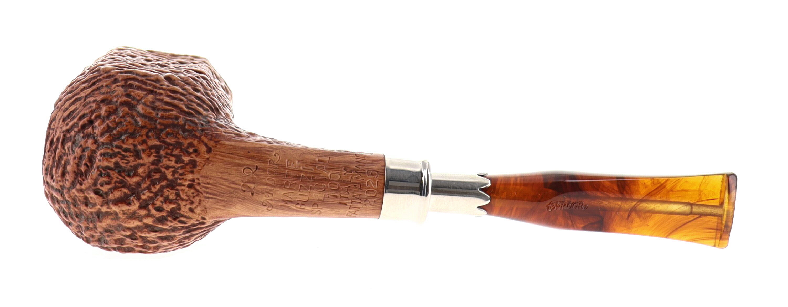 Pipa ARDOR MARTE GUZZI SPECIAL 100, finissaggio sabbiato, shape panel billiard semicurva con vera in argento, bocchino in metacrilato ambrato con spigot in argento. In Scatola Originale con sacchetto di panno. Perfetta, nuova, mai fumata. Realizzata nel 2025. Fatta a mano in Italia a Gavirate (VA).