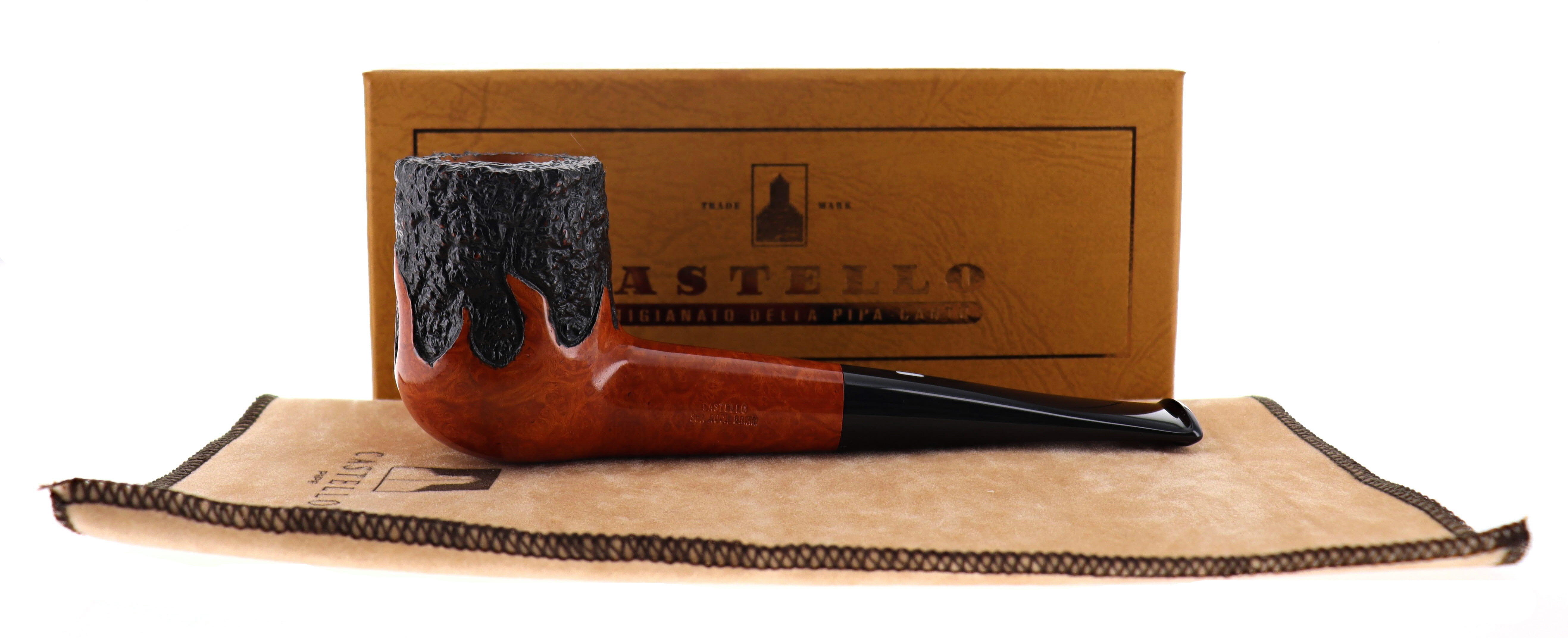 Pipa CASTELLO 0868 100° ANNIVERSARIO TABACCHERIA GUZZI 25.29 SEA ROCK BRIAR, finissaggio rusticato, shape stand up billiard, bocchino in metacrilato. In Scatola Originale con sacchetto di panno. Perfetta, nuova, mai fumata. Edizione Limitata Numerata N° 25 su 29 pezzi prodotti. Realizzata nel 2025. Hand Made dal 1947.