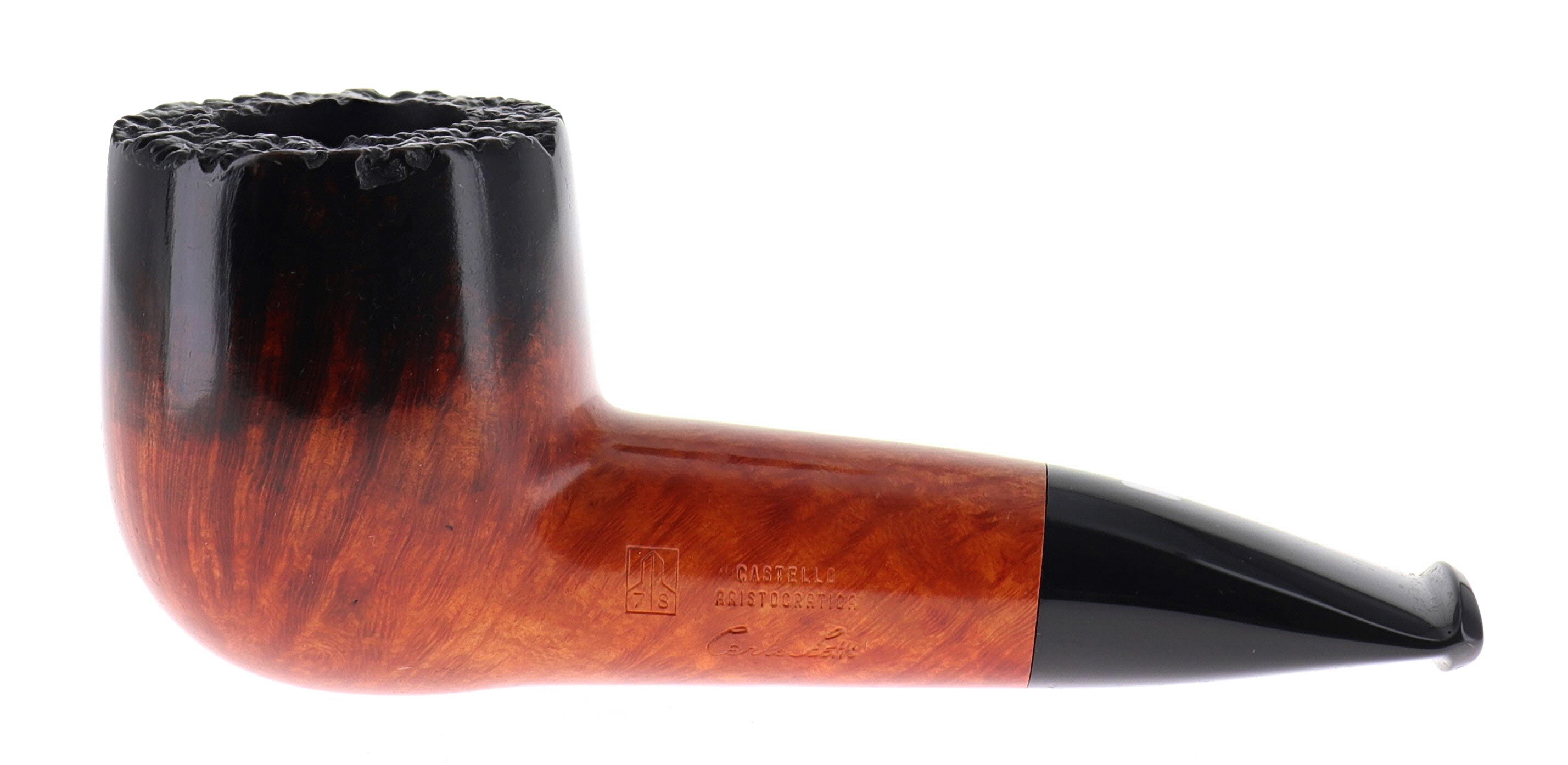 Pipa CASTELLO 0903 ARISTOCRATICA, finissaggio liscio fumè, shape 10 stand up nose warmer brucianaso, bocchino in metacrilato. In Scatola Originale con sacchetto di panno. Perfetta, nuova, mai fumata. Realizzato nel 2025. Hand Made dal 1947.