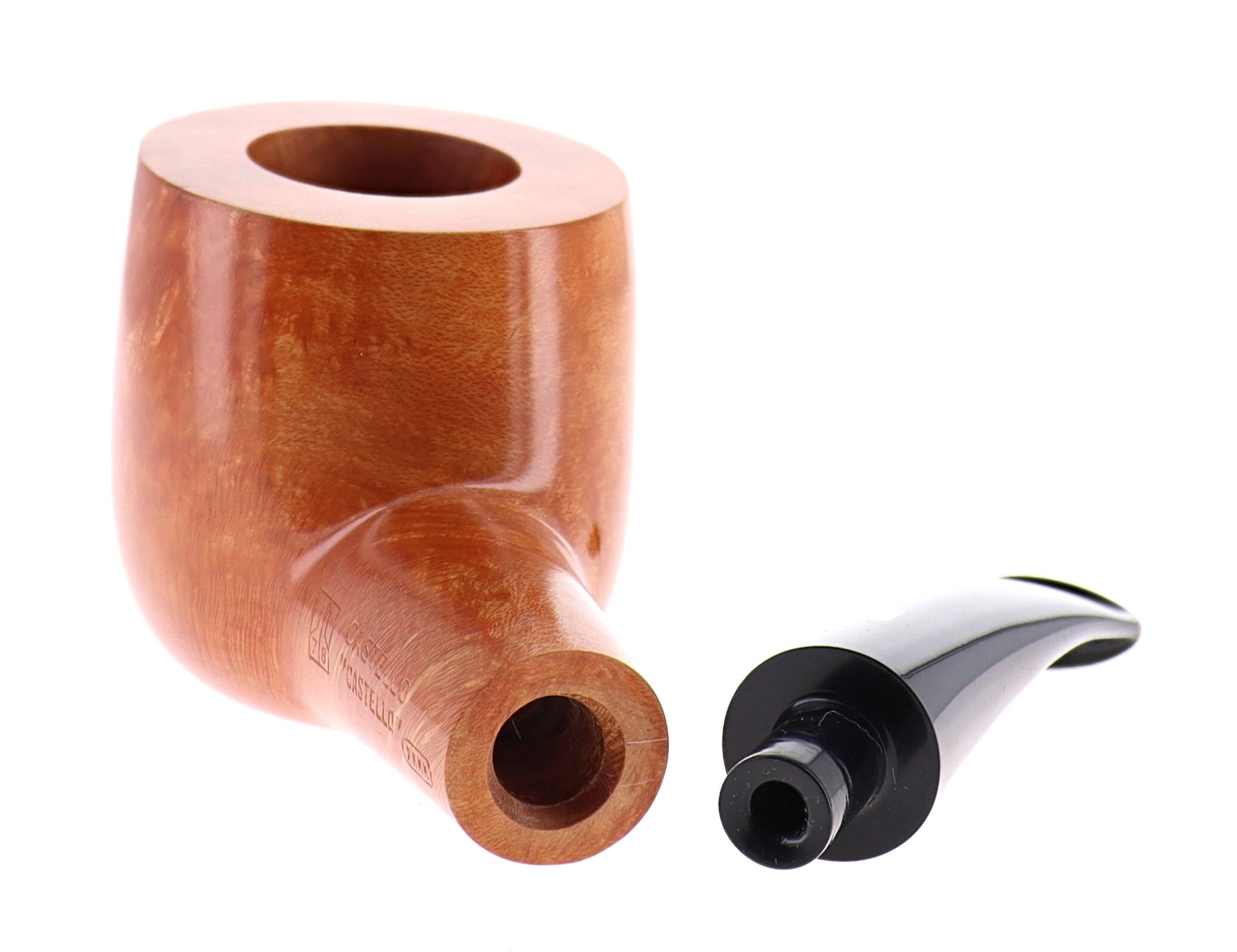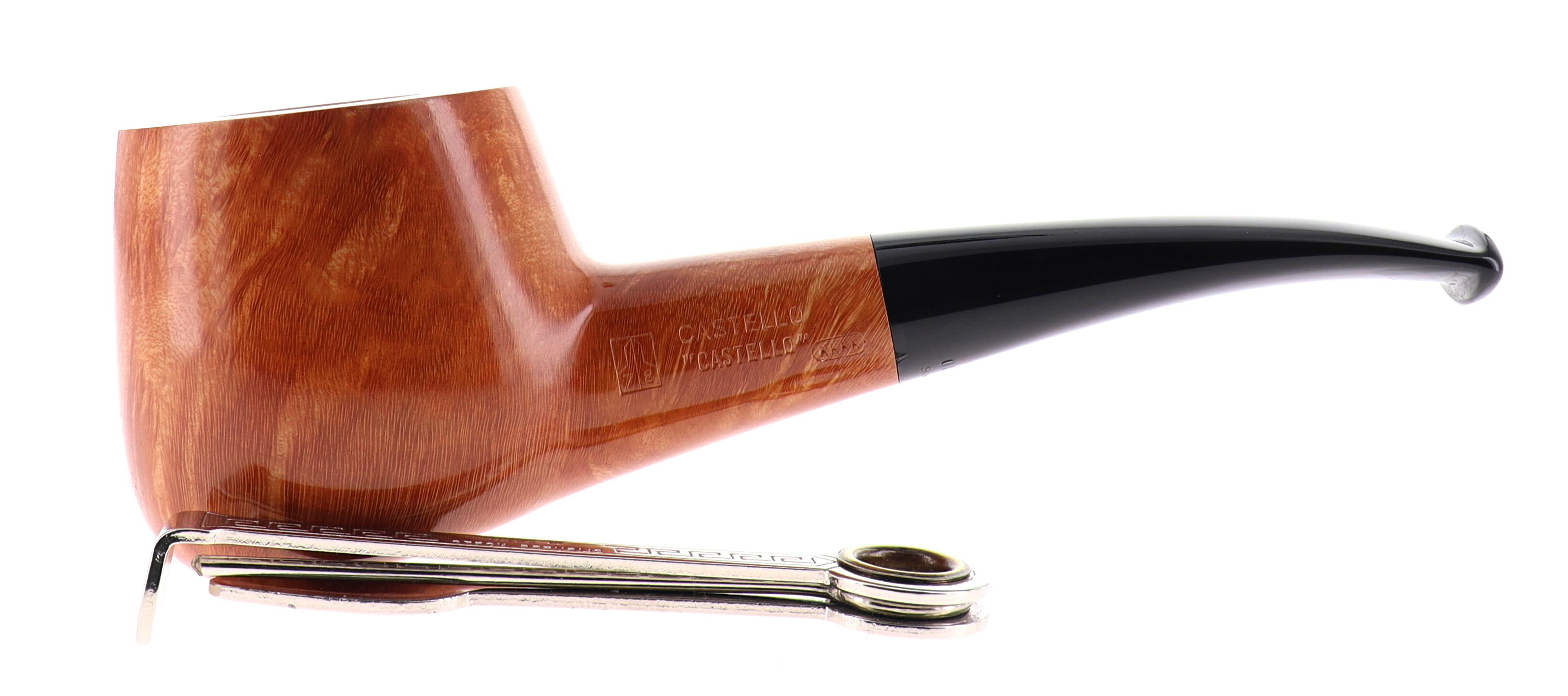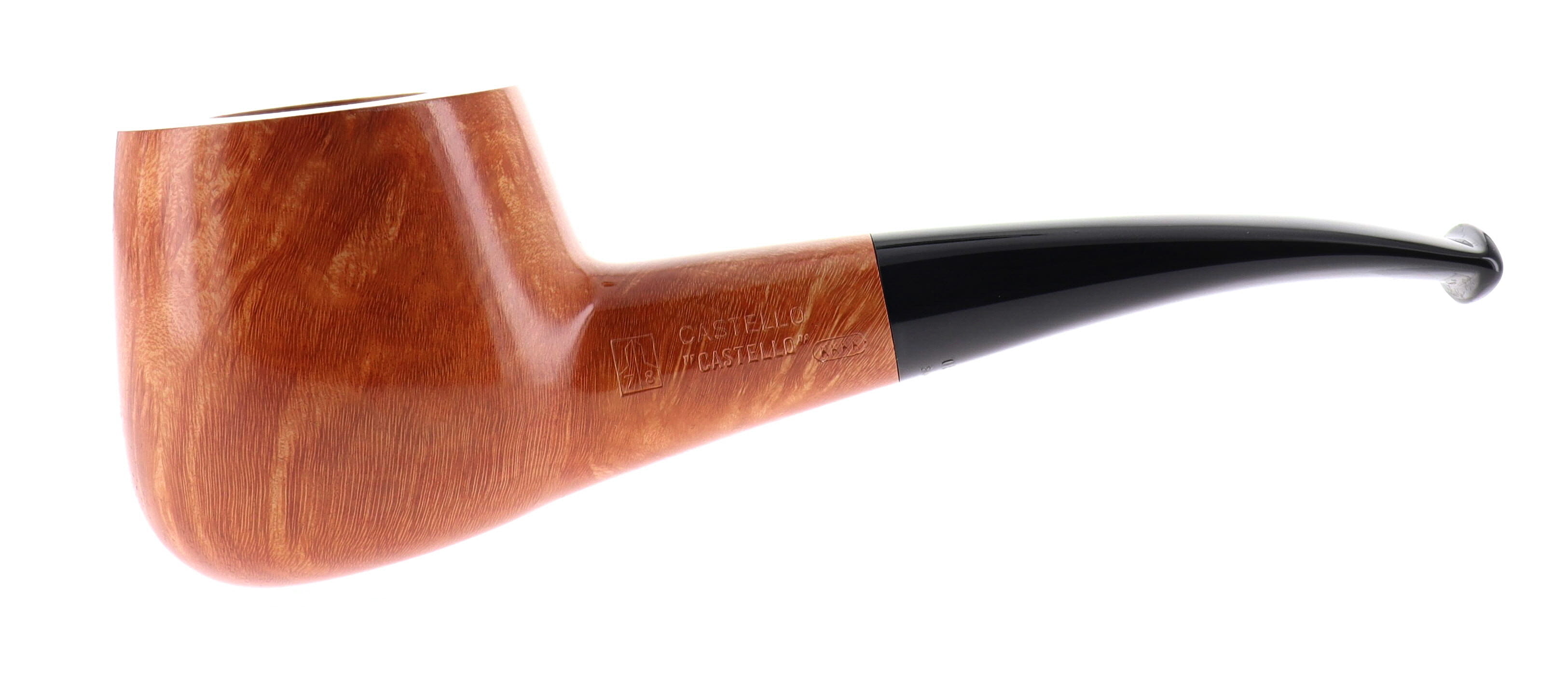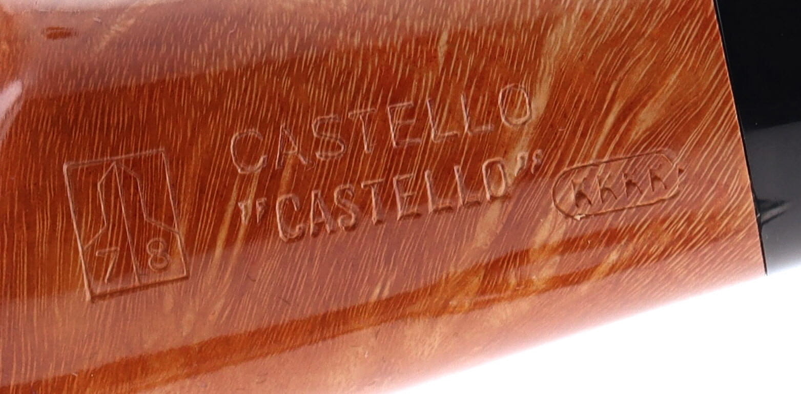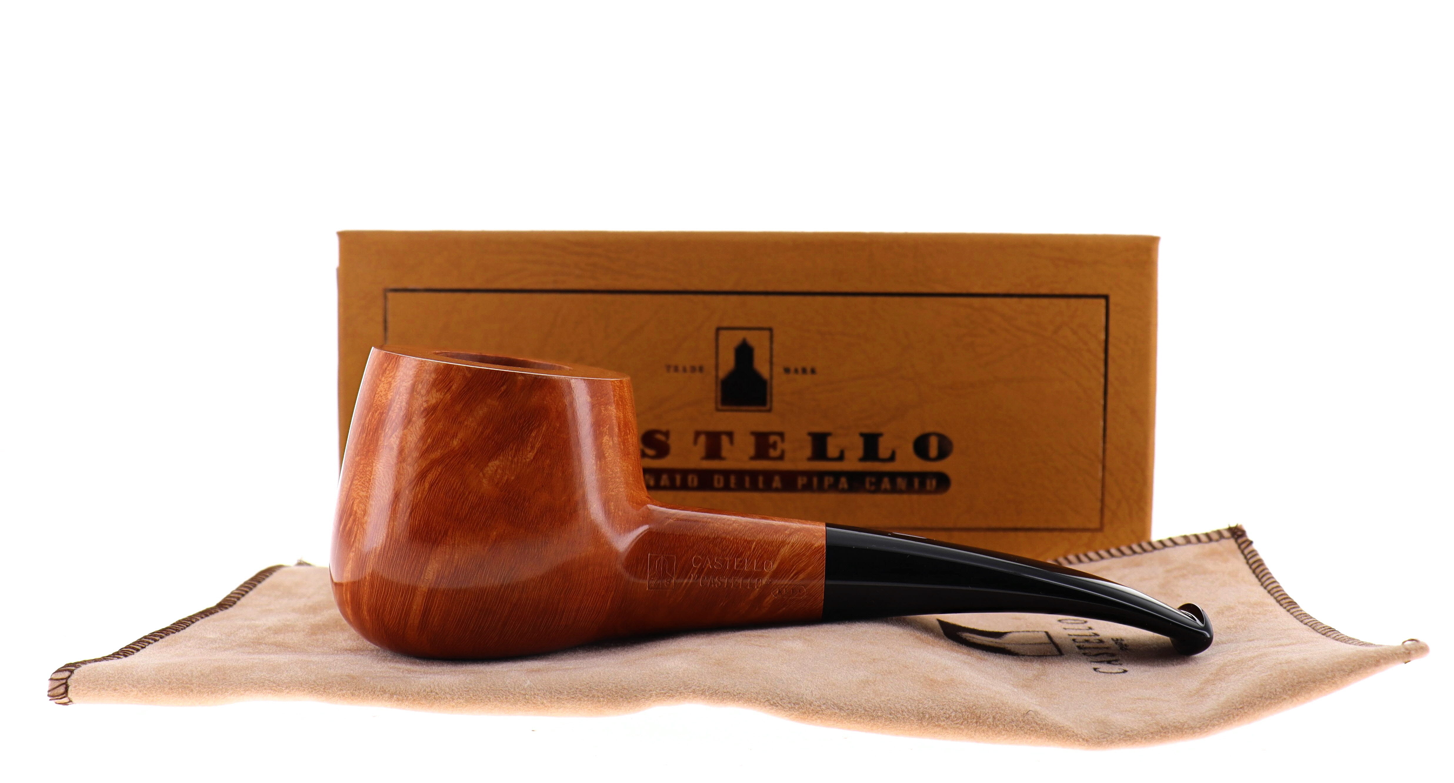 Pipa CASTELLO 0920 "CASTELLO" KKKK, finissaggio liscio chiaro, shape 55 chubby squat pot semicurva, bocchino in metacrilato. In Scatola Originale con sacchetto di panno. Perfetta, nuova, mai fumata. Realizzata nel 2025. Hand Made dal 1947.