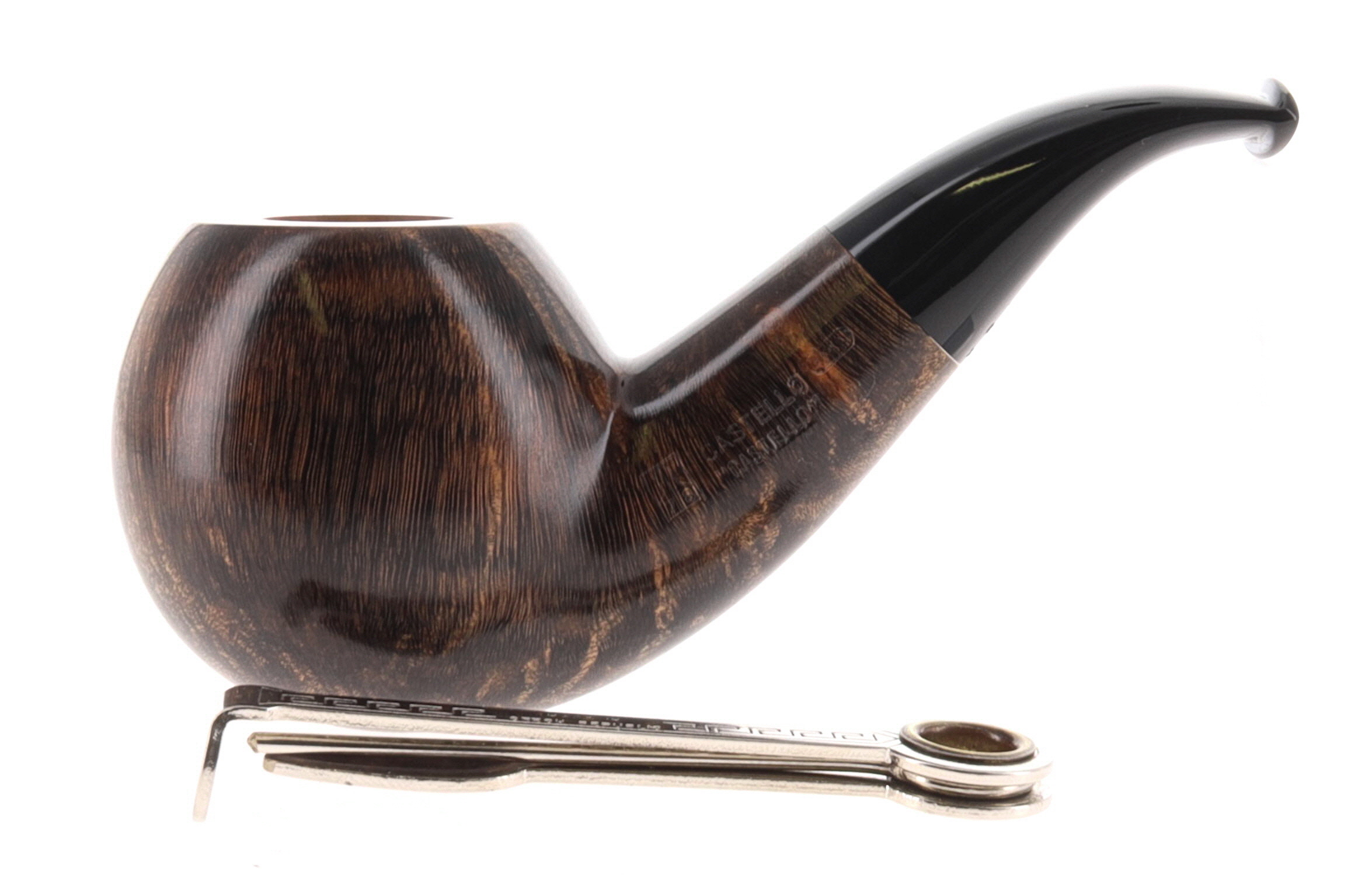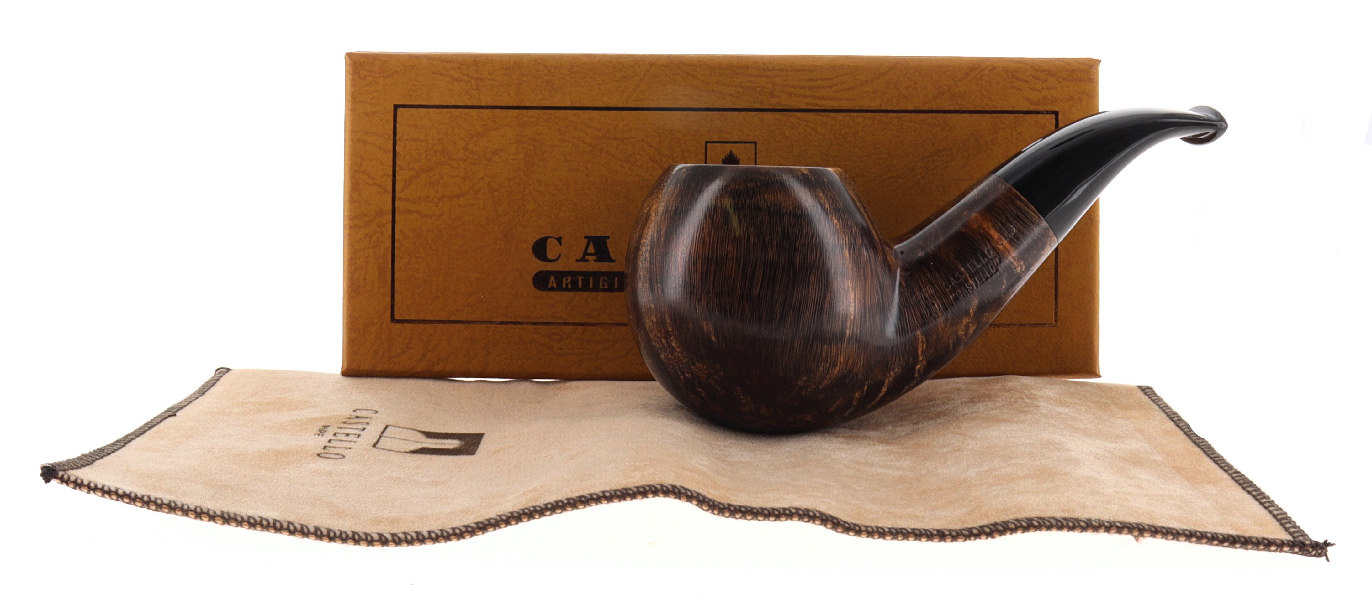 Pipa CASTELLO 0901 "CASTELLO" KKKK, finissaggio liscio marrone, shape chubby half bent apple, bocchino in metacrilato. In Scatola Originale con sacchetto di panno. Perfetta, nuova, mai fumata. Realizzato nel 2025. Hand Made dal 1947.