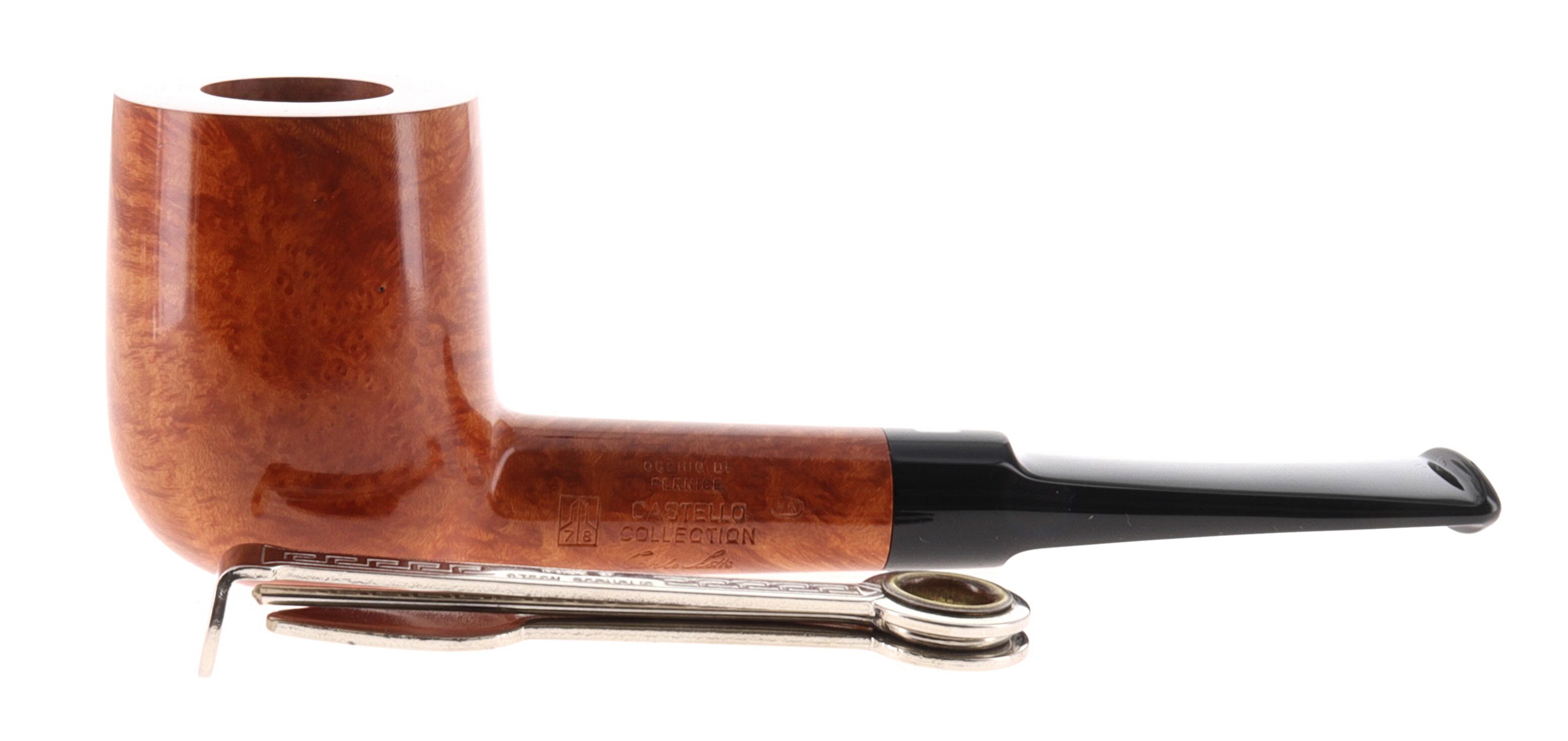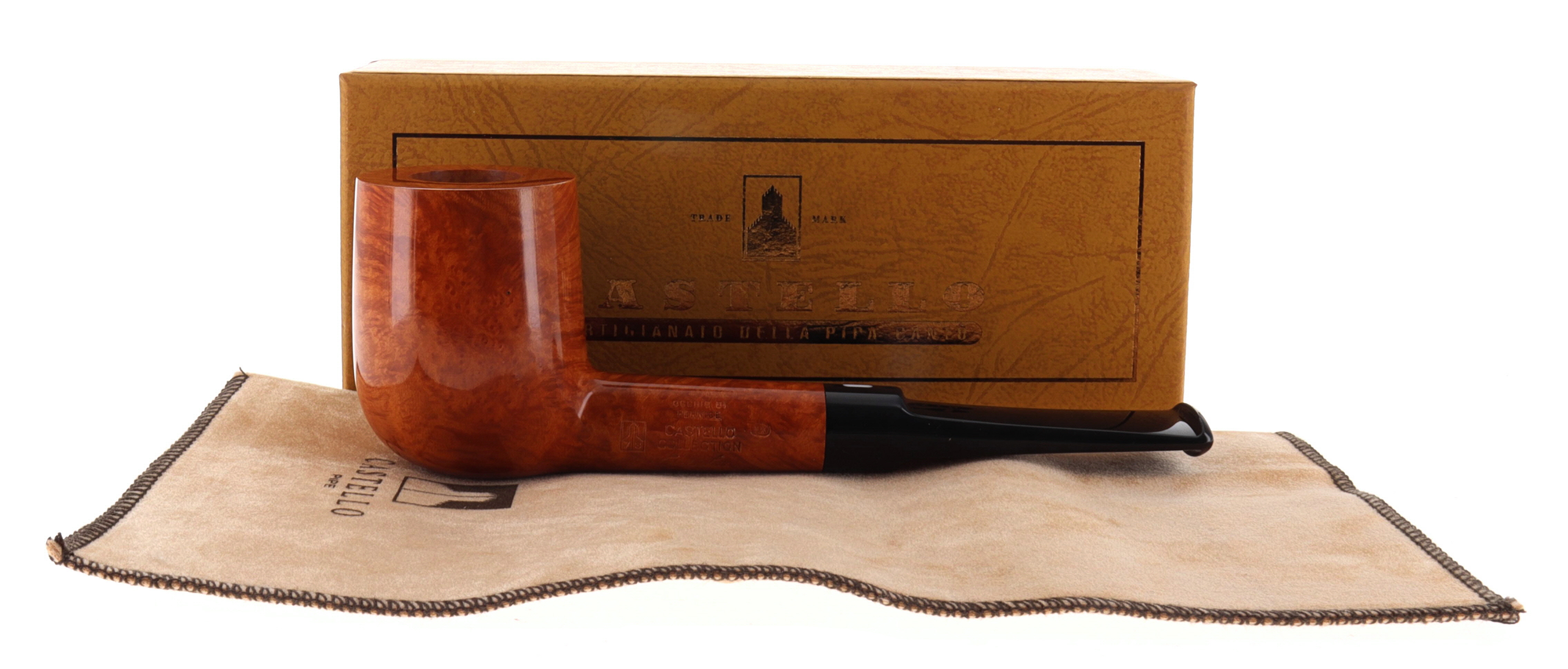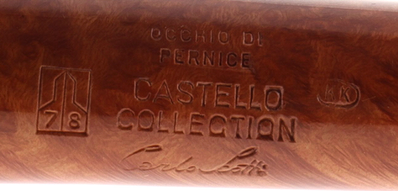 Pipa CASTELLO 0897 COLLECTION OCCHIO DI PERNICE KK, finissaggio liscio chiaro, shape stand up billiard, bocchino in metacrilato. In Scatola Originale con sacchetto di panno. Perfetta, nuova, mai fumata. Realizzata nel 2025. Hand Made dal 1947.