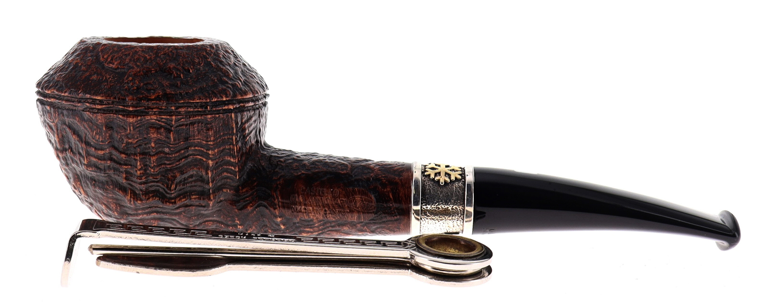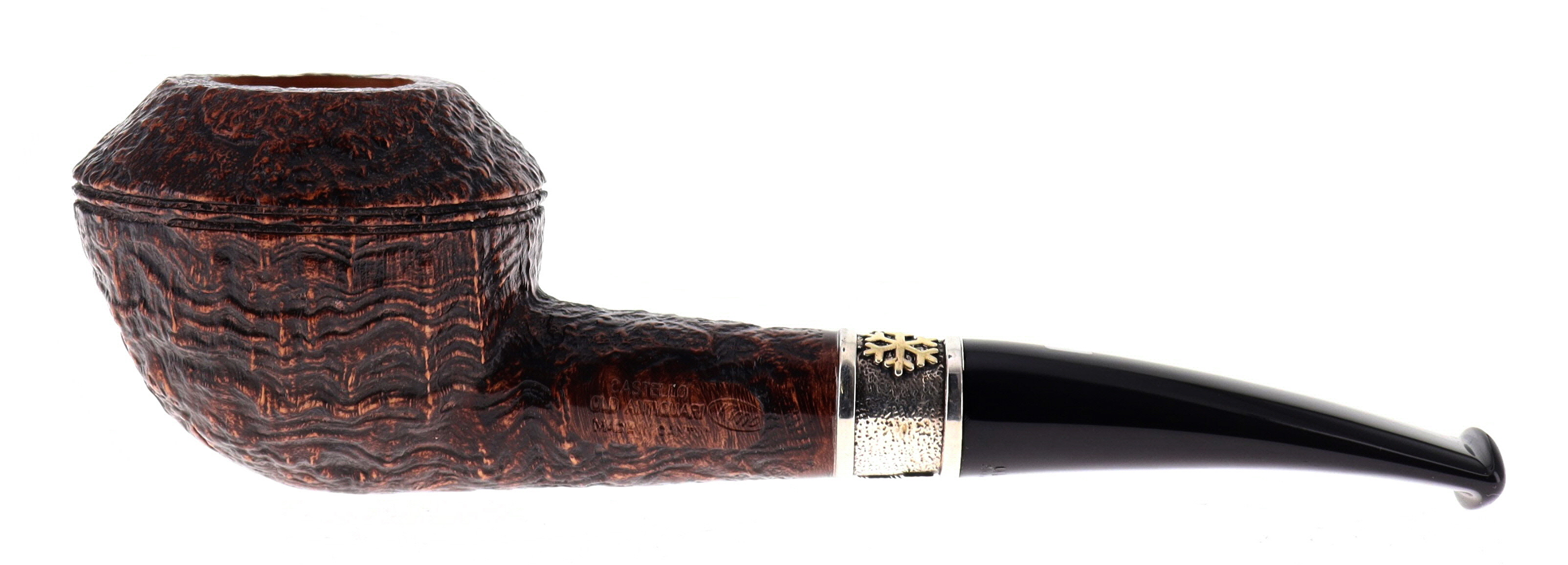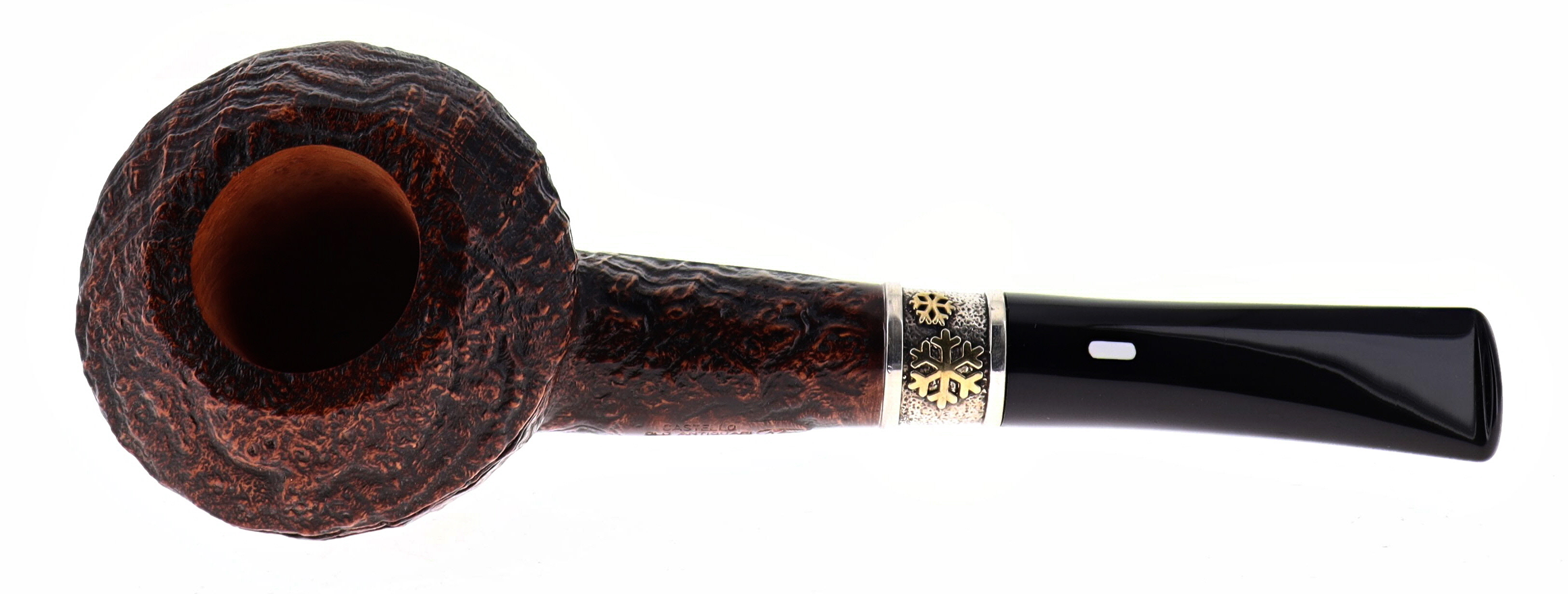 Questa pipa appartiene alla collezione MILANO CORTINA prodotta nel 2025 in edizione limitata a 120 esemplari creata per celebrare i giochi olimpici invernali ed uscita come collezione natalizia. Caratterizzata da un'artistica ghiera in argento finemente lavorata e impreziosita da due fiocchi di neve dorati. Ogni fiocco di neve è unico, fragile come un respiro irripetibile. Un frammento d'inverno che nessuno potrà mai imitare. Così come ogni pipa realizzata a mano presenta dettagli unici. Questa serie limitata viene creata in tutti i finissaggi classici "Castello".