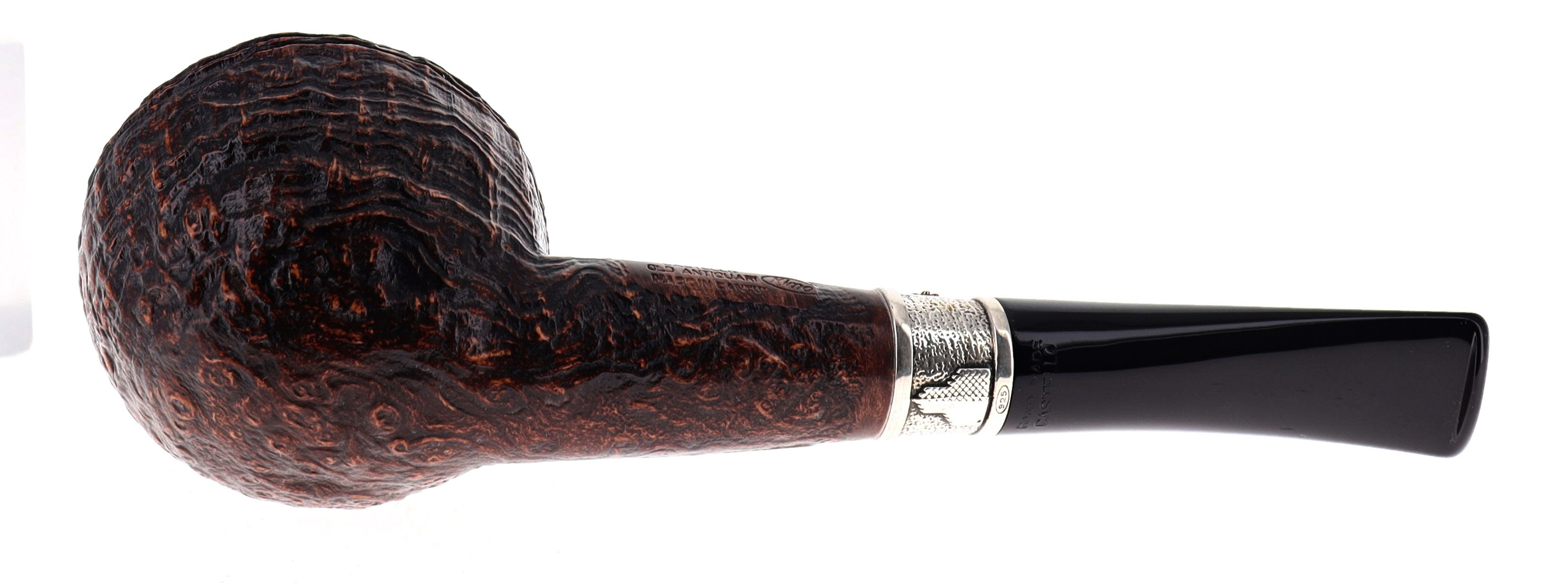Pipa CASTELLO 015 MILANO CORTINA OLD ANTIQUARI 29.120, finissaggio sabbiato marrone, shape rhodesian semicurva con vera in argento, bocchino in metacrilato. In Scatola Originale con sacchetto di panno. Perfetta, nuova, mai fumata. Realizzata nel 2025, N° 29 di 120 pipe prodotte. Hand Made dal 1947.