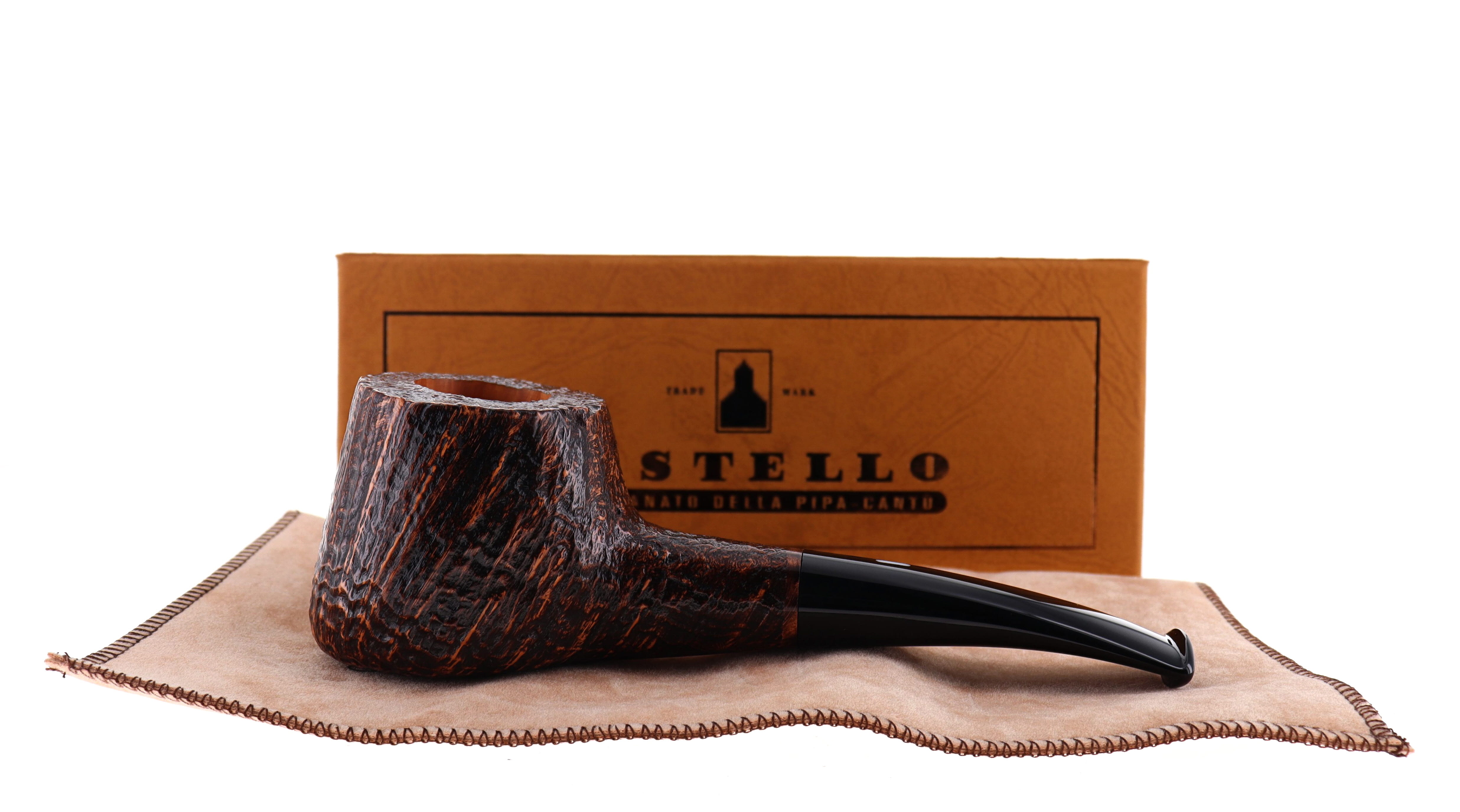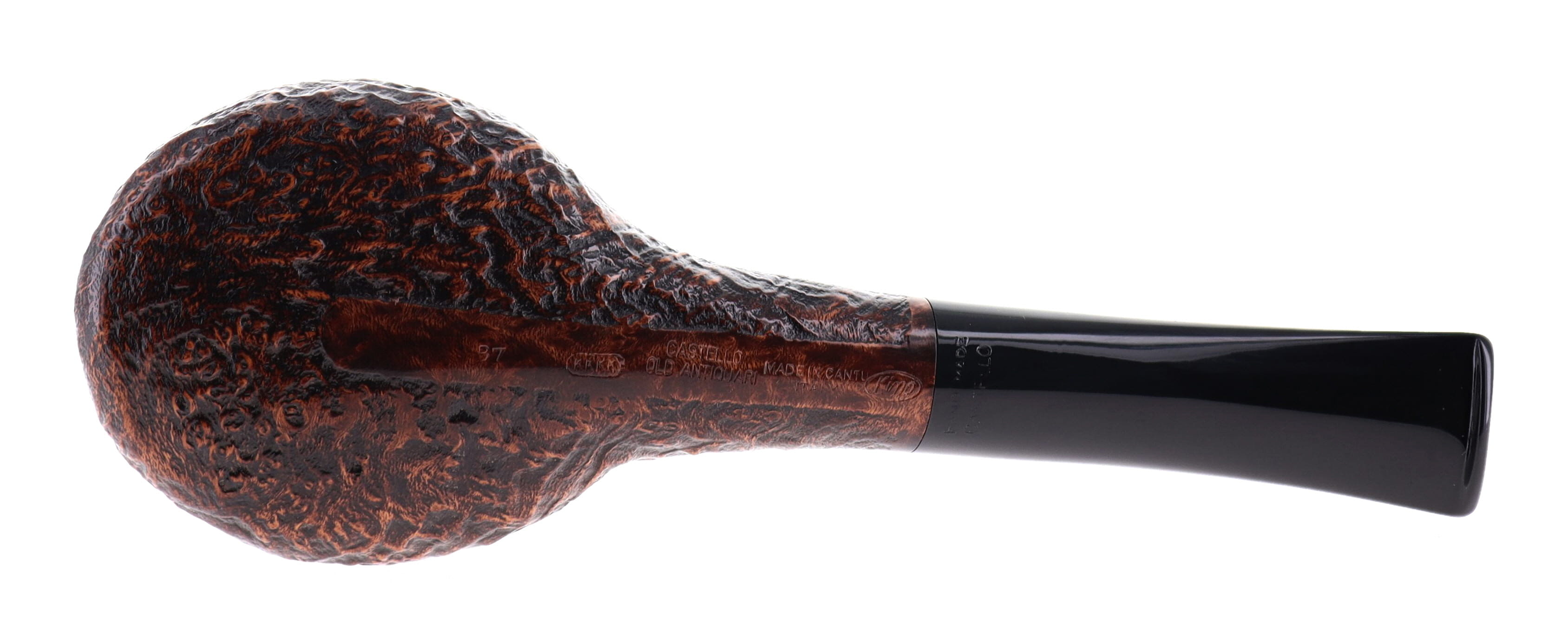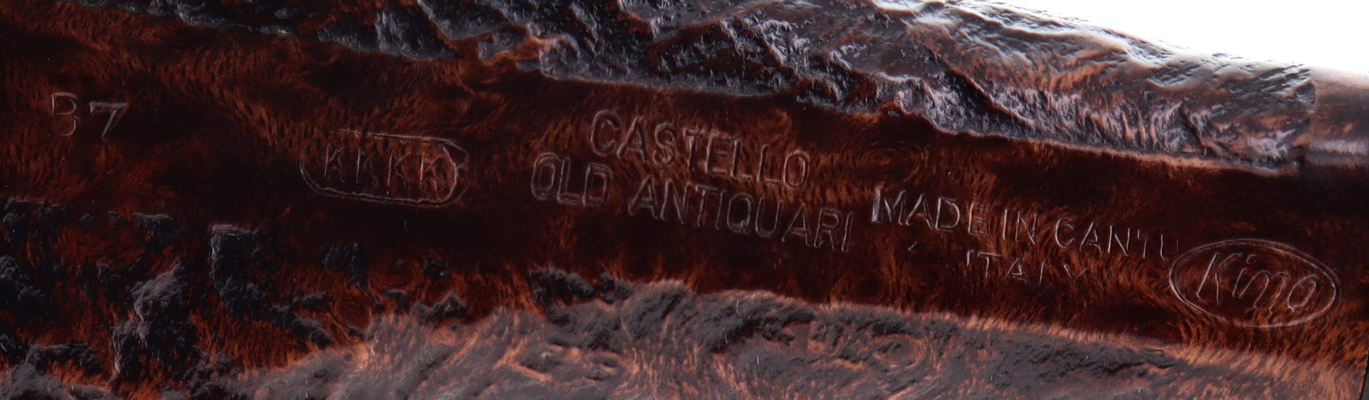 Pipa CASTELLO 921 OLD ANTIQUARI KKKK, finissaggio sabbiato marrone, shape 55 chubby squat pot, bocchino in metacrilato. In Scatola Originale con sacchetto di panno. Perfetta, nuova, mai fumata. Hand Made dal 1947.