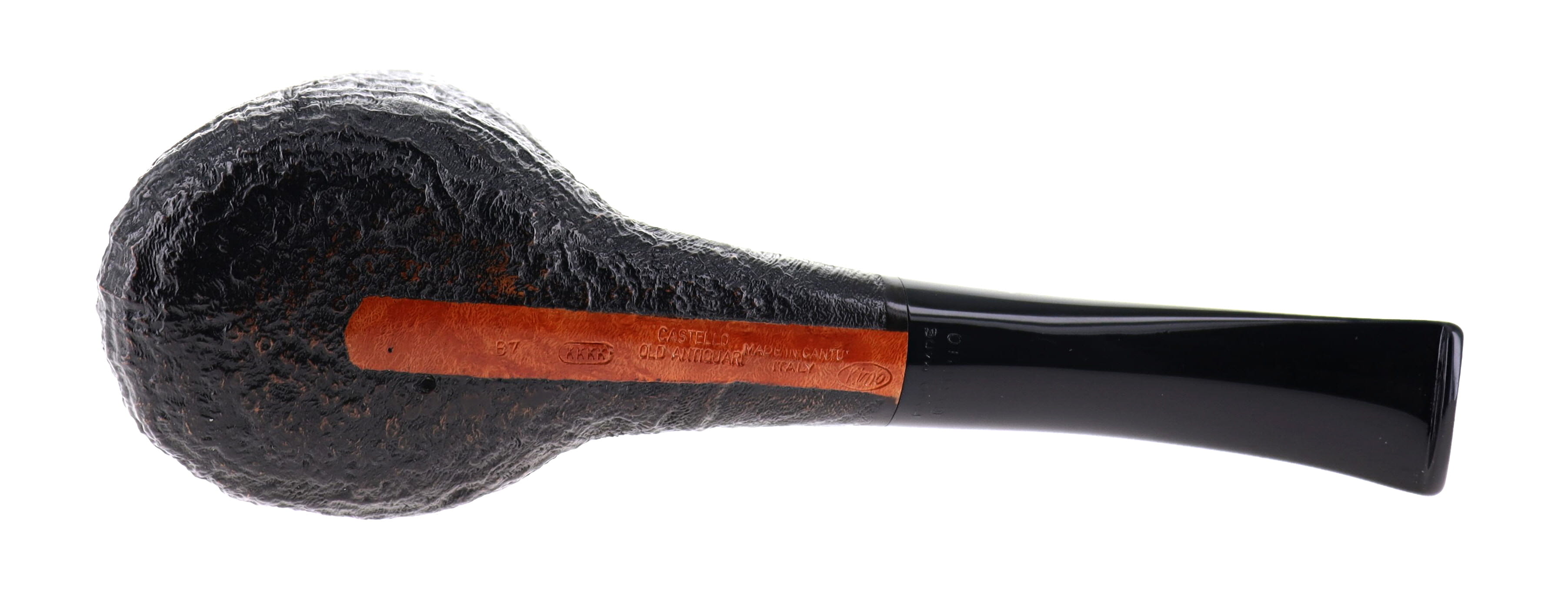 Pipa CASTELLO 917 OLD ANTIQUARI KKKK, finissaggio sabbiato scuro, shape 55 chubby squat pot barktop, bocchino in metacrilato. In Scatola Originale con sacchetto di panno. Perfetta, nuova, mai fumata. Hand Made dal 1947.
