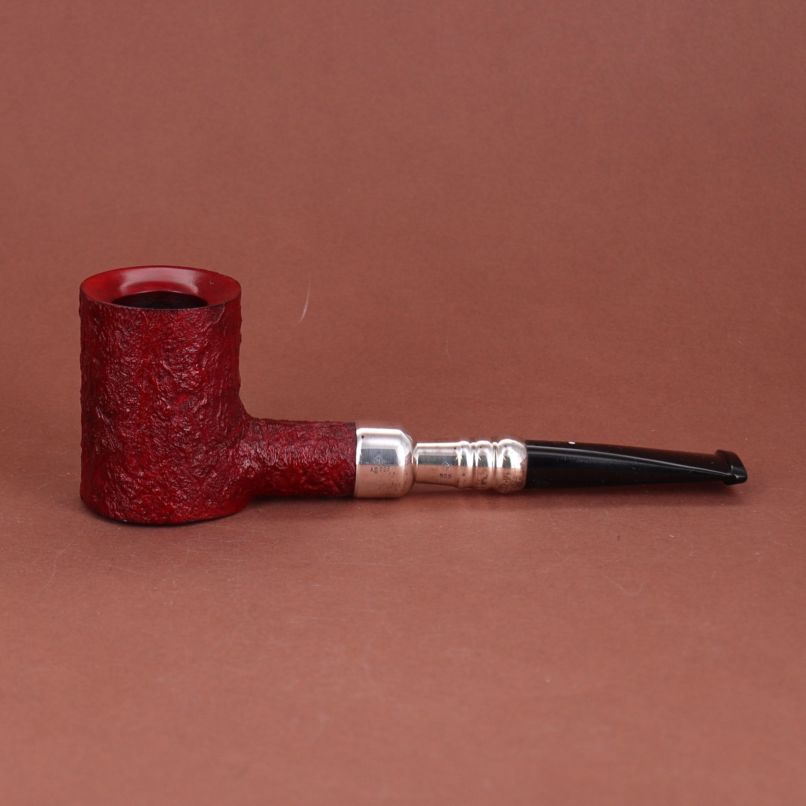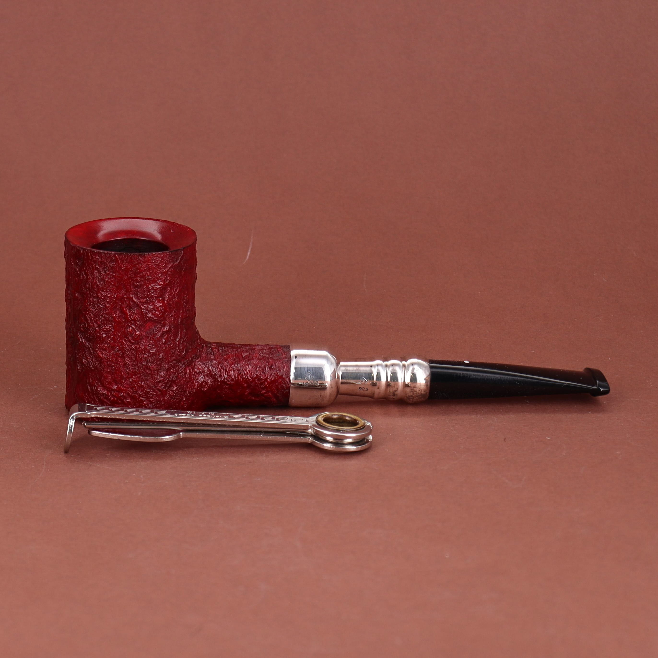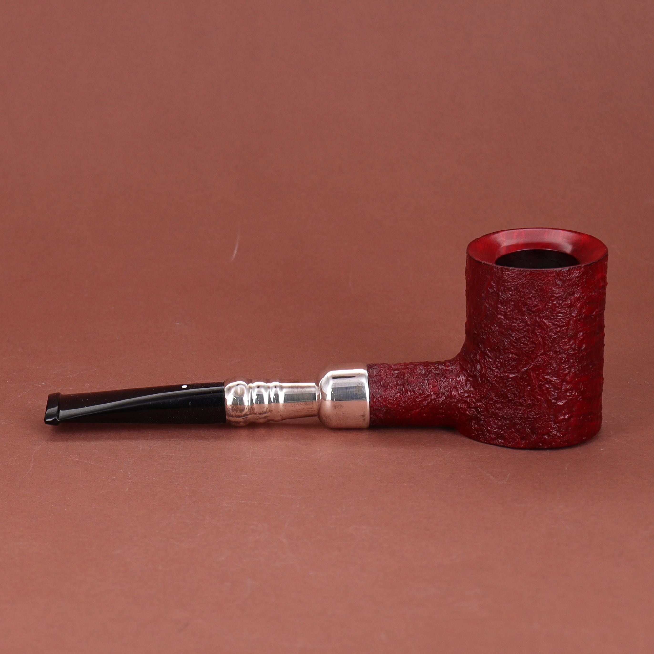 Pipa Dunhill 319 RUBYBARK 5122, finissaggio sabbiato rosso, shape stand up poker con vera in argento, bocchino in ebanite spigot in argento. Made in England. Realizzata nel 2025. In Scatola Originale con sacchetto. Perfetta, nuova, mai fumata.